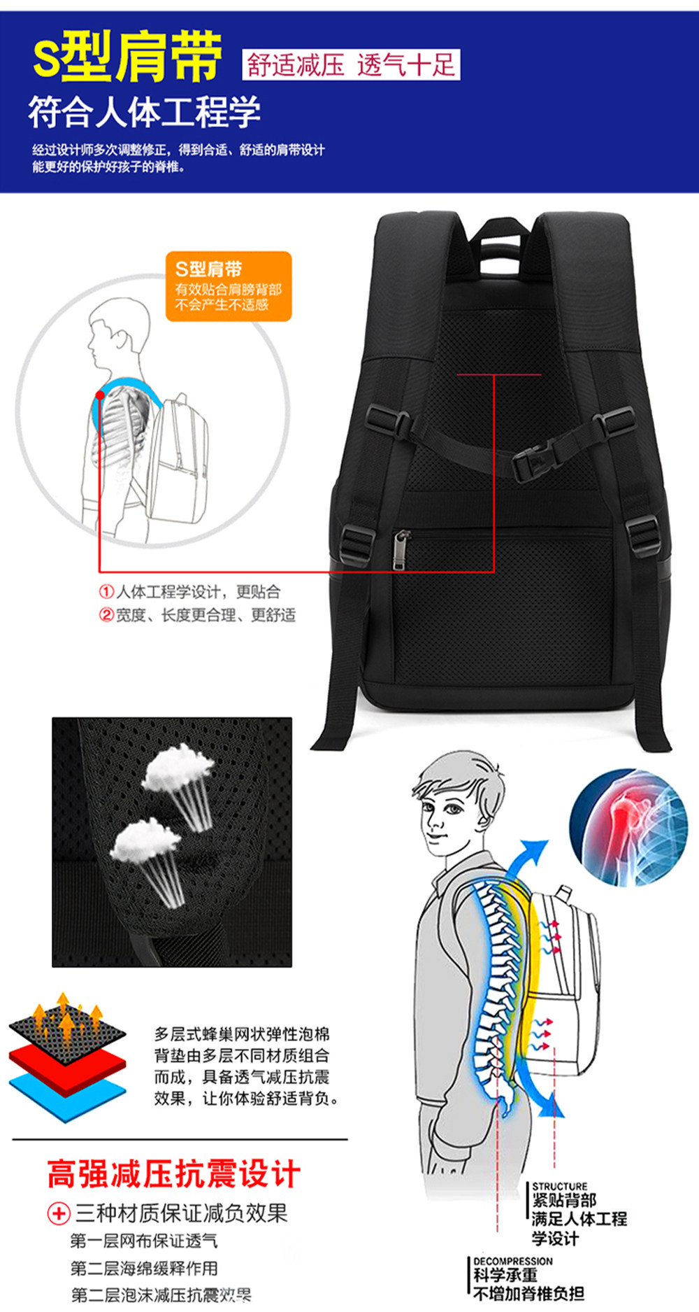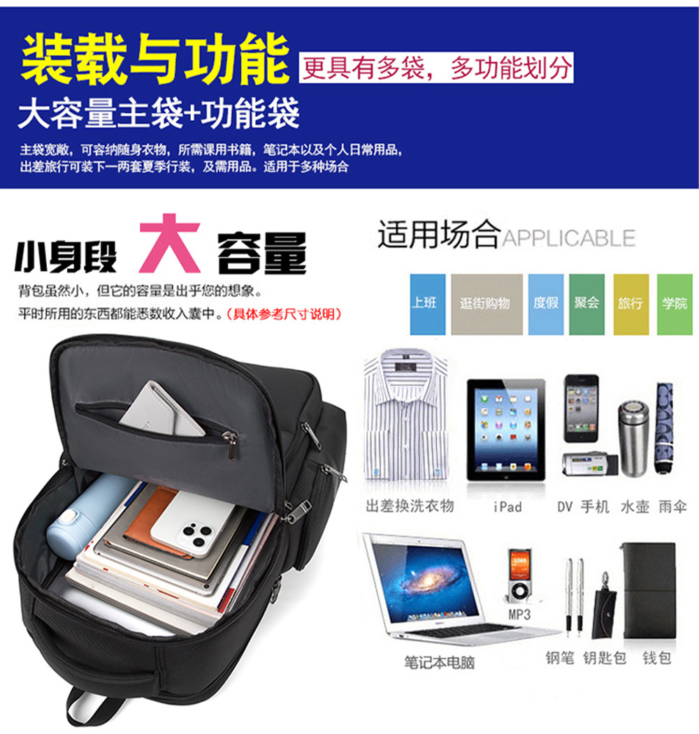 後後背包男士大容量出差旅行多層雙肩包學生書包商務休閒多功能電腦包