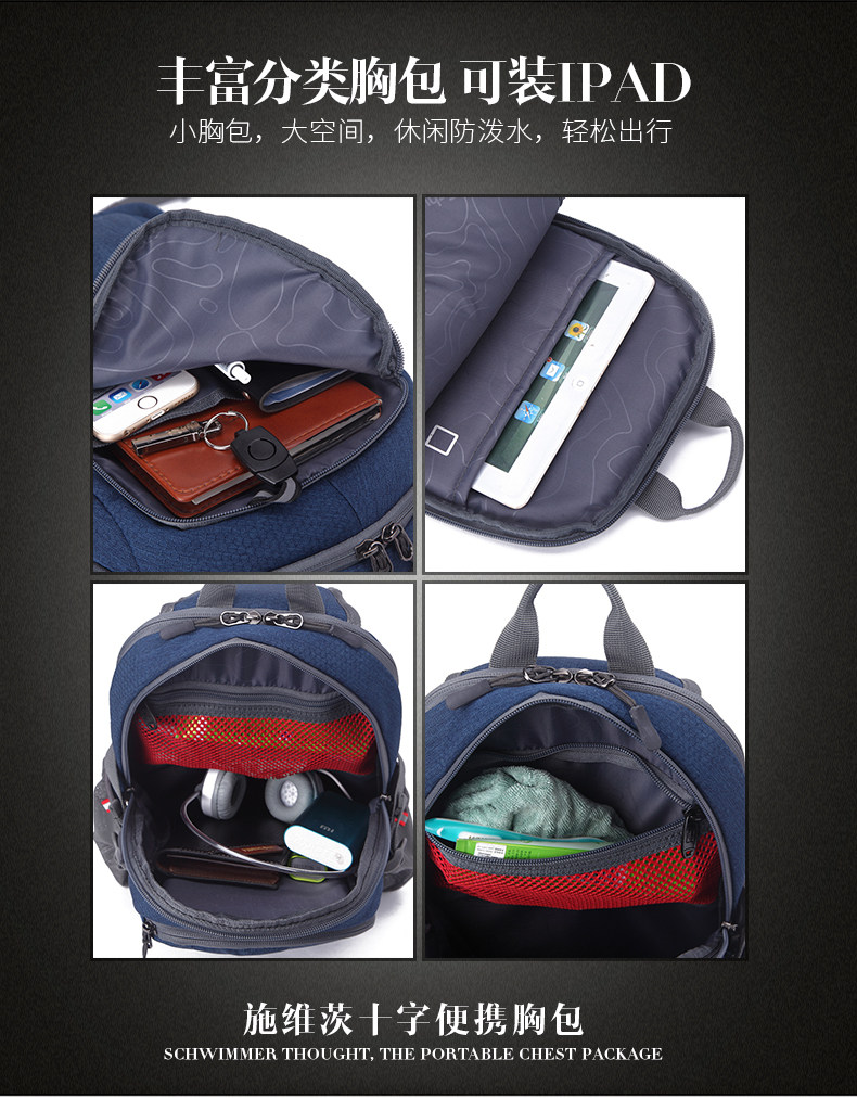 瑞士軍士刀胸包男2023新款男包時尚胸前斜後後背包大容量韓版潮牌後後背包