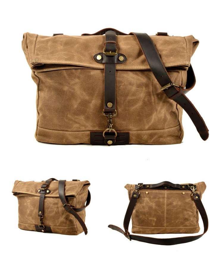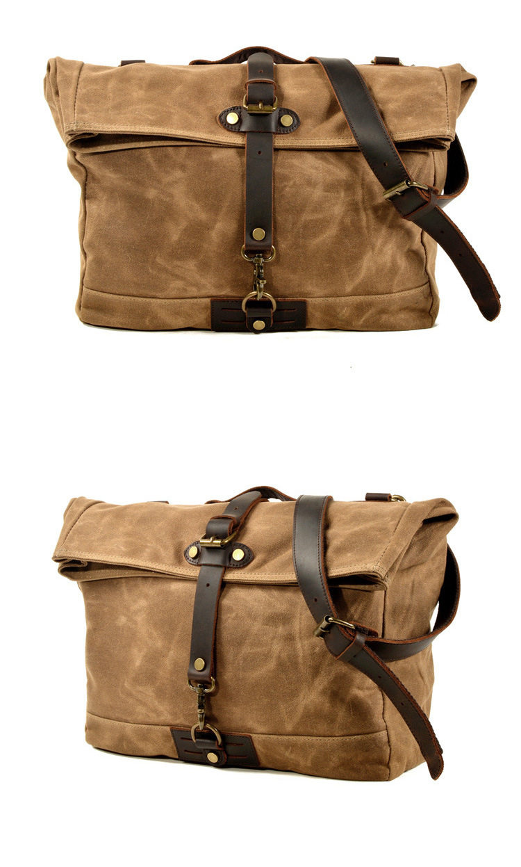 美式工裝死飛包復古機車騎行帆布單肩郵差包男戶外手提斜背軍後後背包