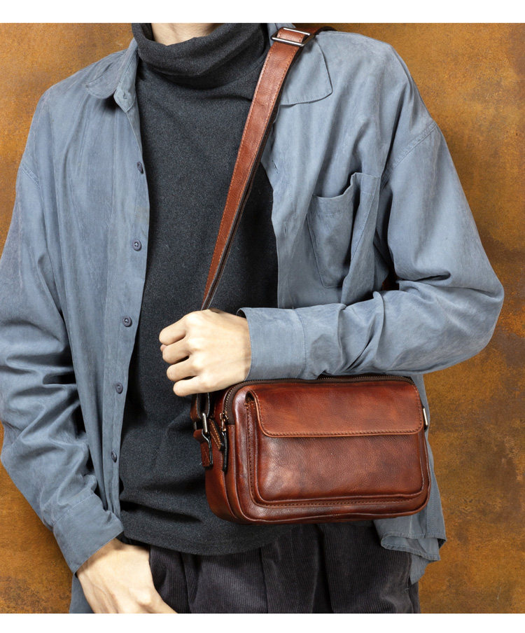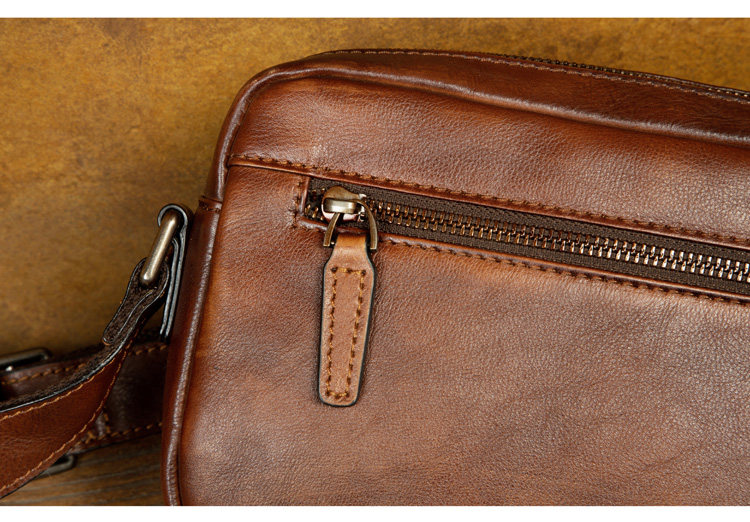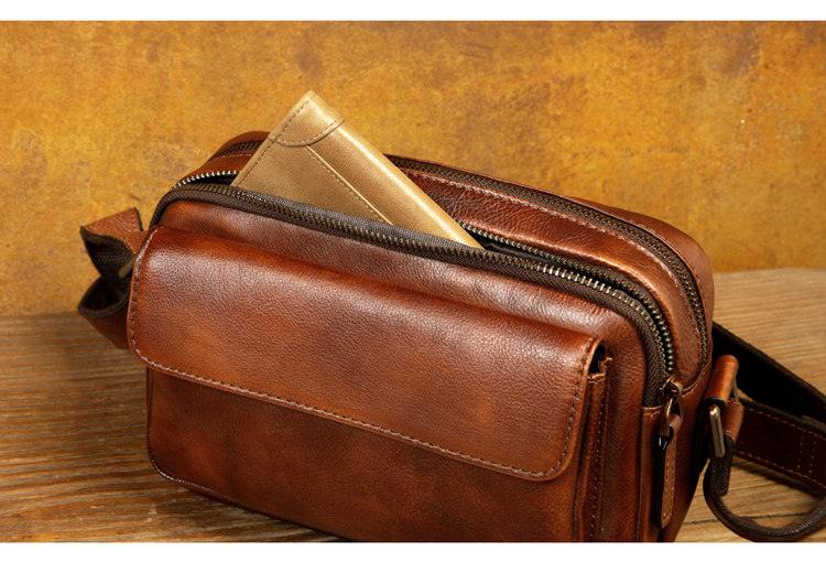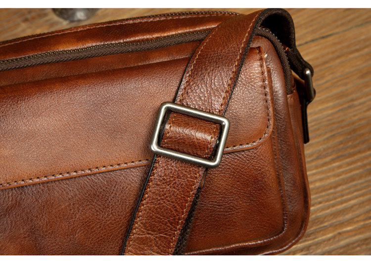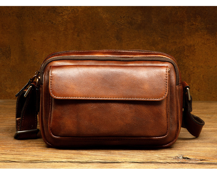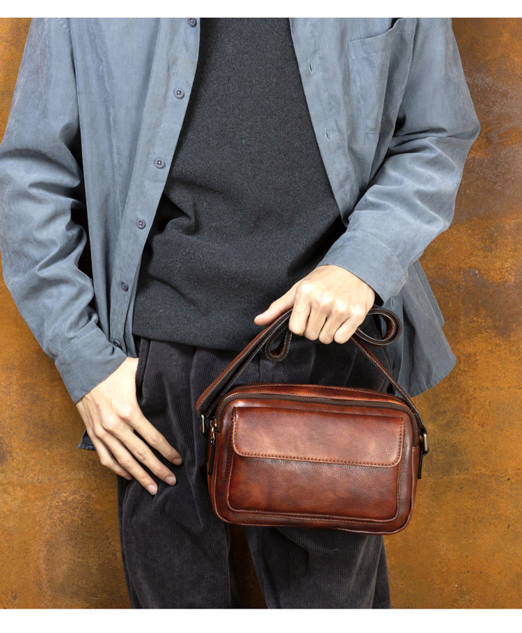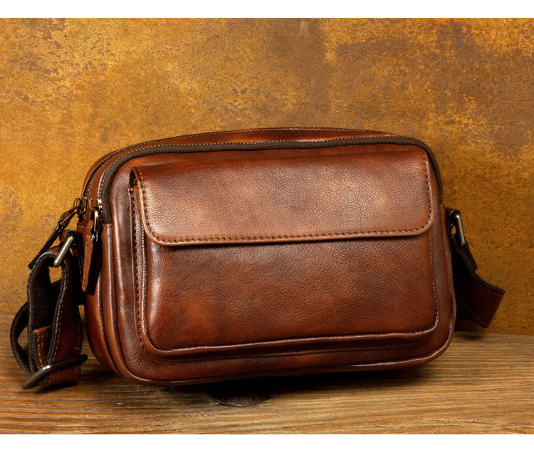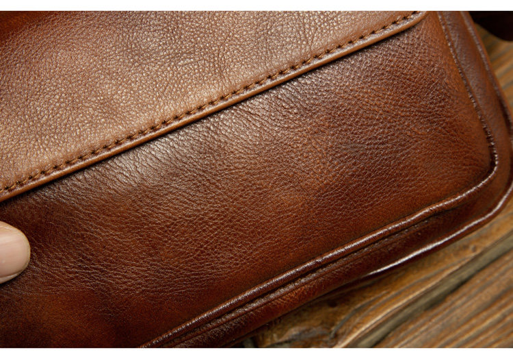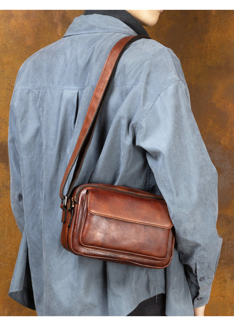 慢時光復古式手工擦色真皮斜背休閒男包頭層植鞣牛皮單肩包小方包