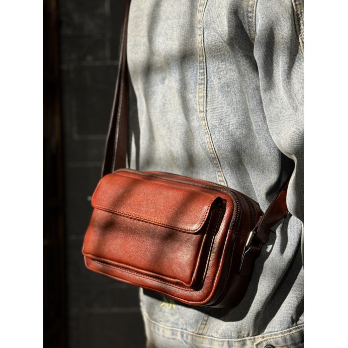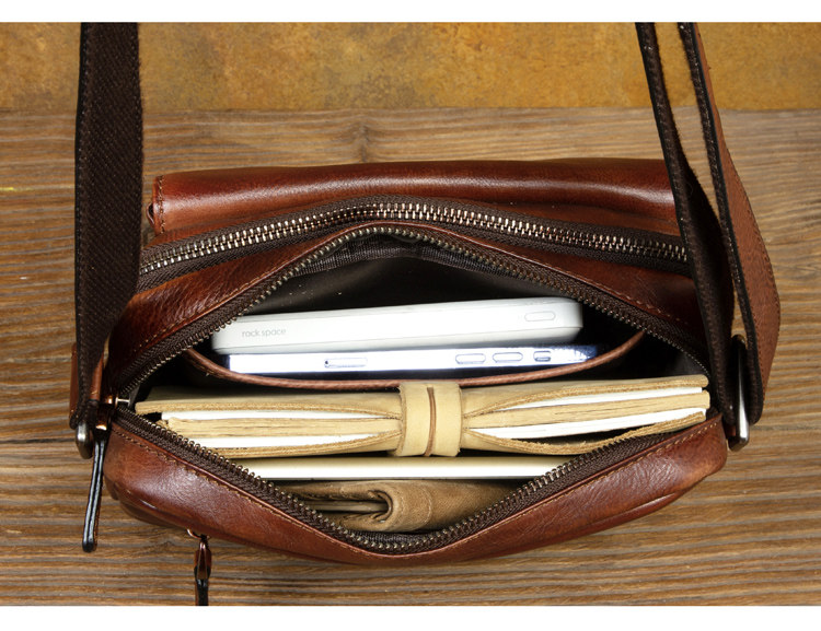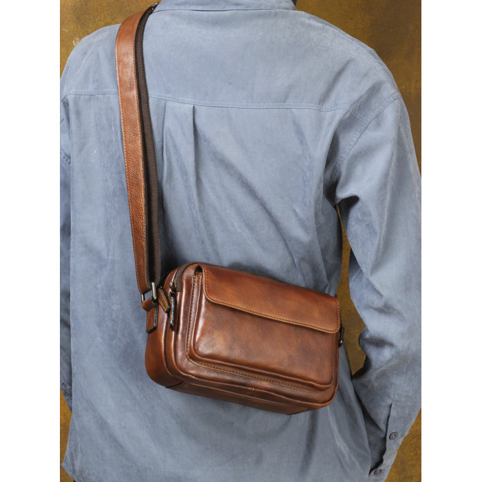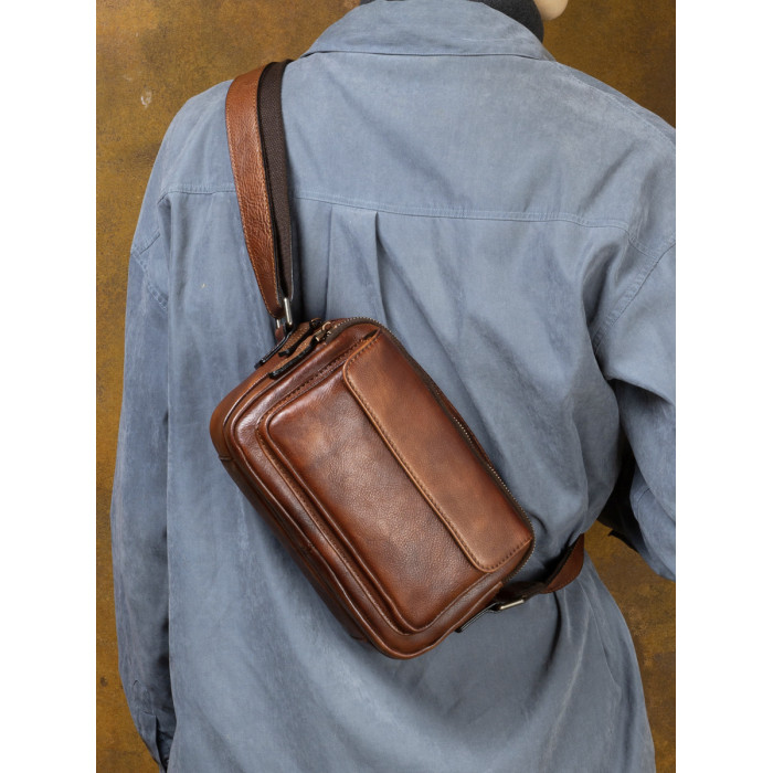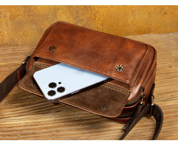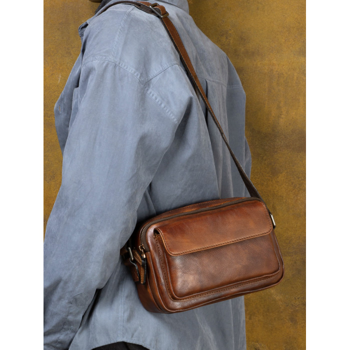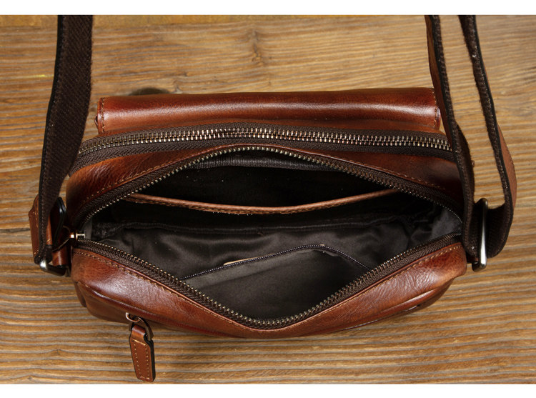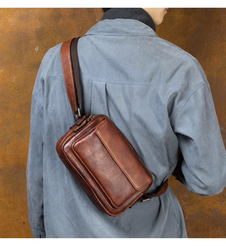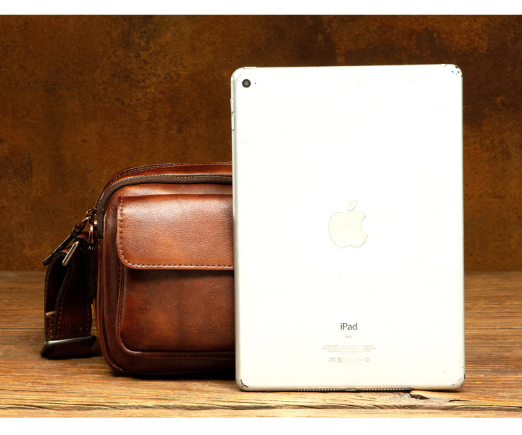 慢時光復古式手工擦色真皮斜背休閒男包頭層植鞣牛皮單肩包小方包