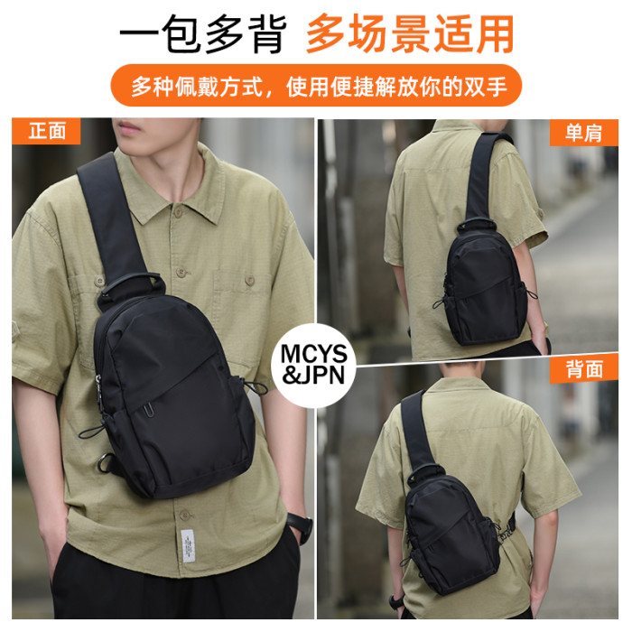 斜後後背包男休閒百搭單肩包男士輕便出行外出可攜式包挎包胸包小型後後背包