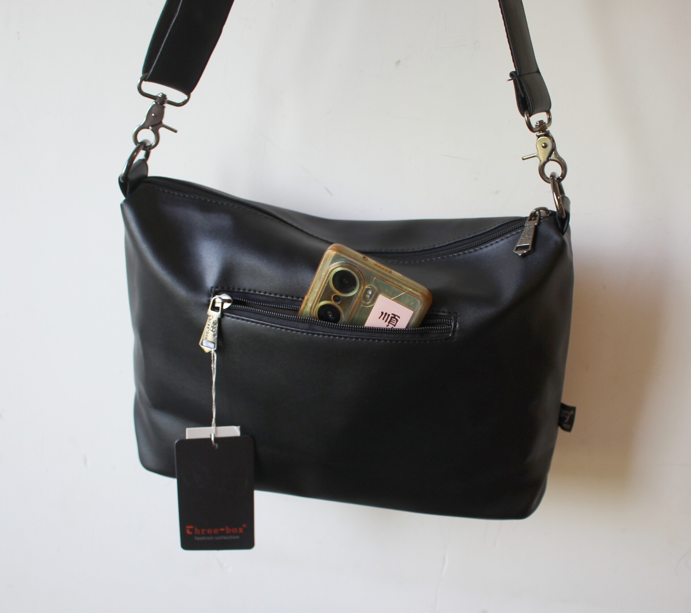 Threebox斜後後背包男士包包超火通勤軟皮大包2025新款潮流ipad單肩包