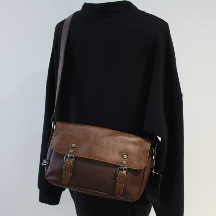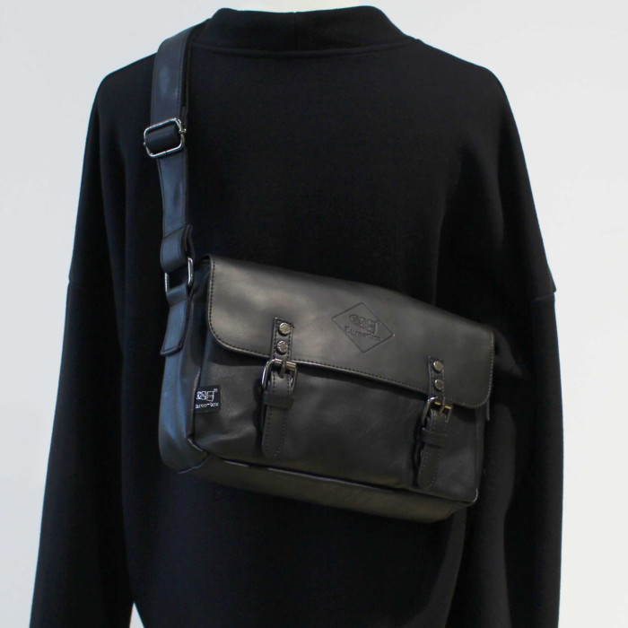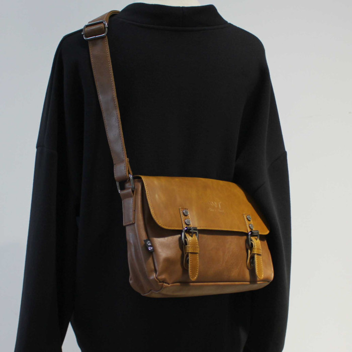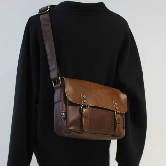青年日韓復古男士單肩包潮流休閒郵差包pu皮斜後後背包簡約男女小挎包