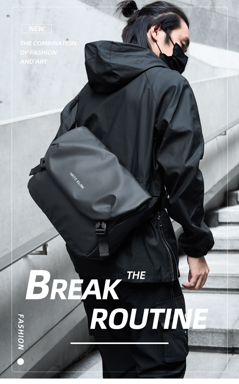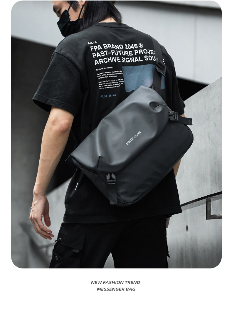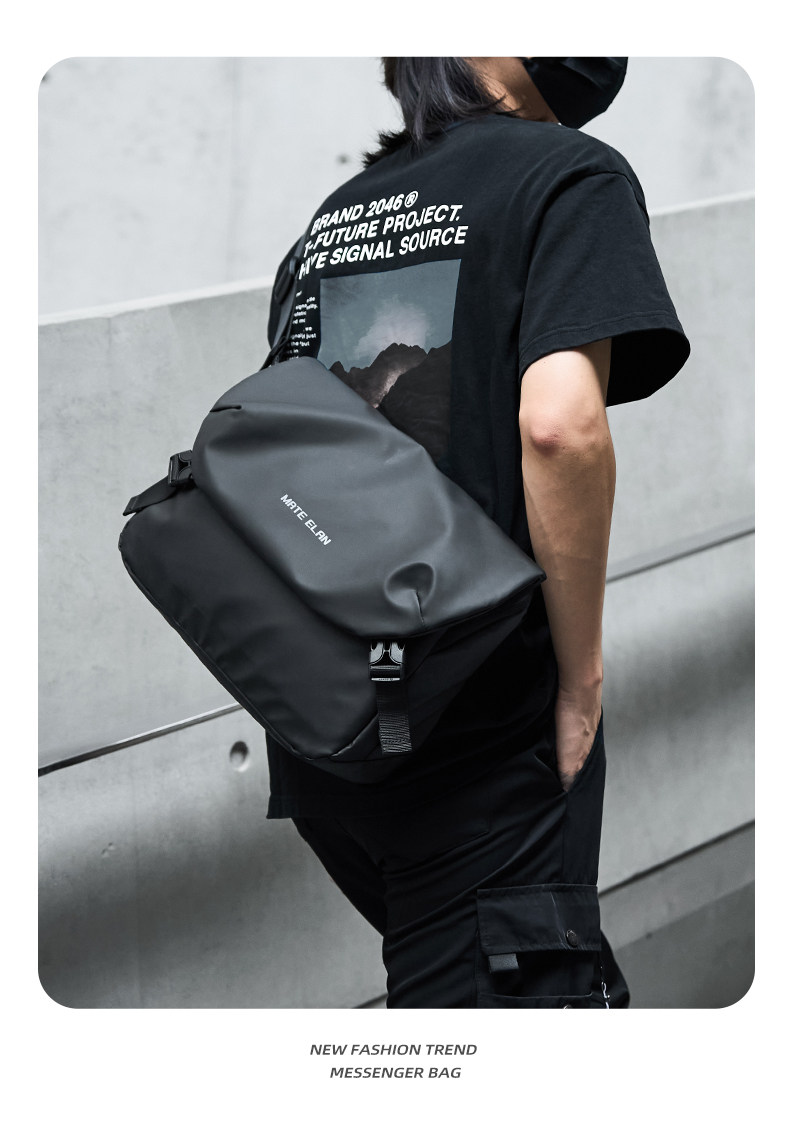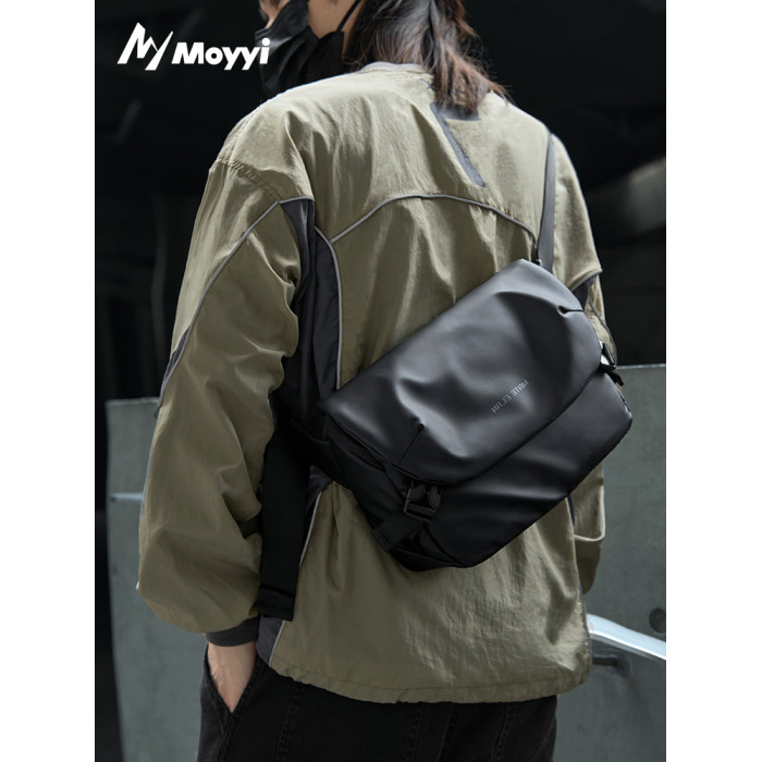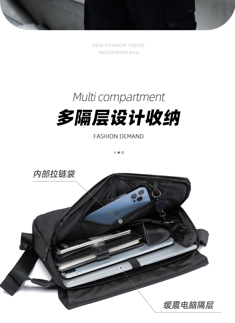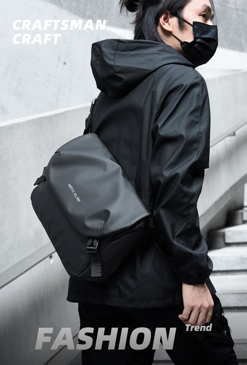 斜後後背包男士大容量外出可攜式皮質機能單肩包通勤騎行郵差包後後背包男款