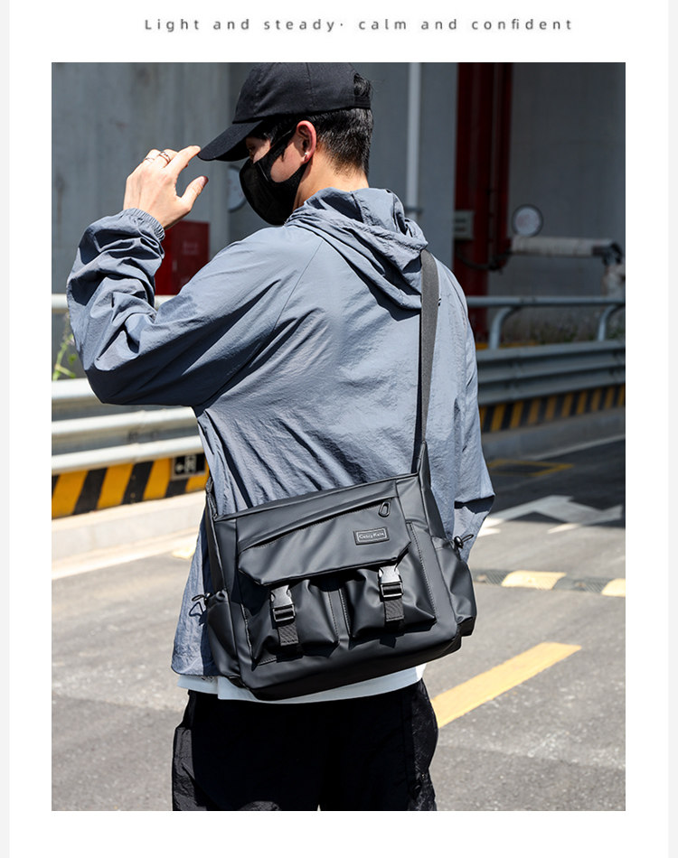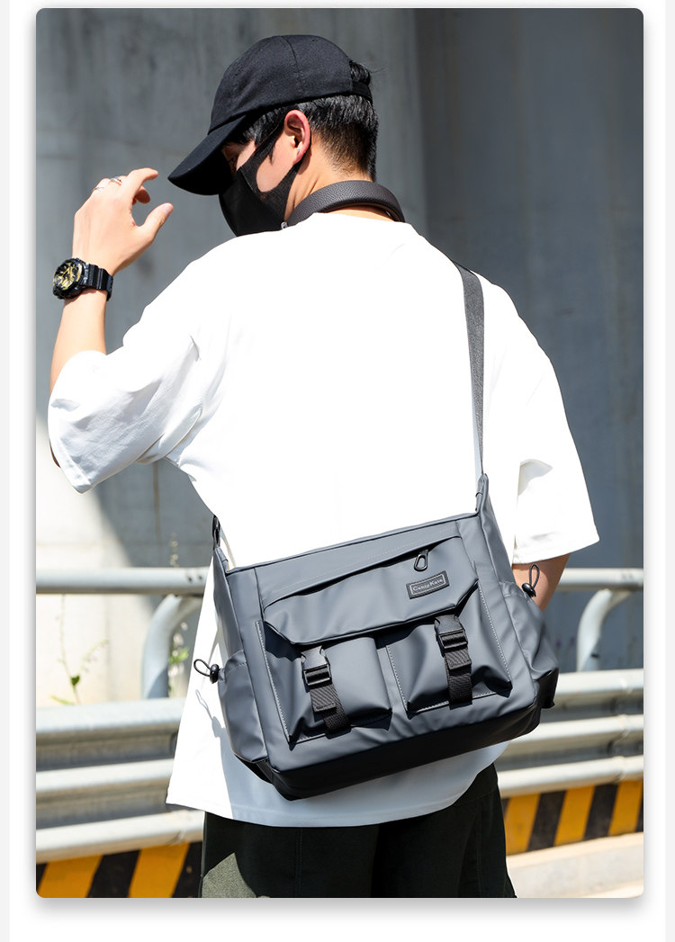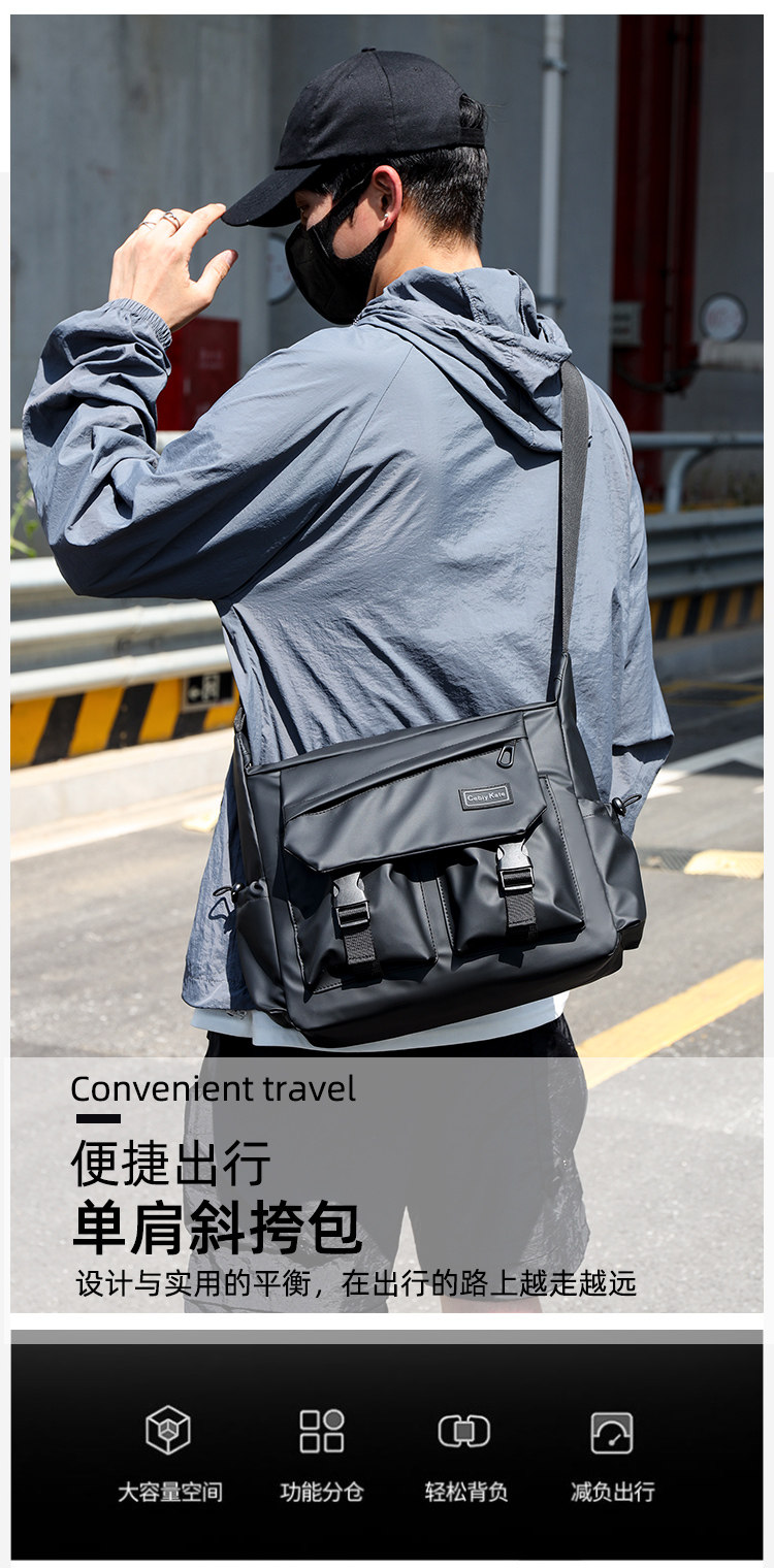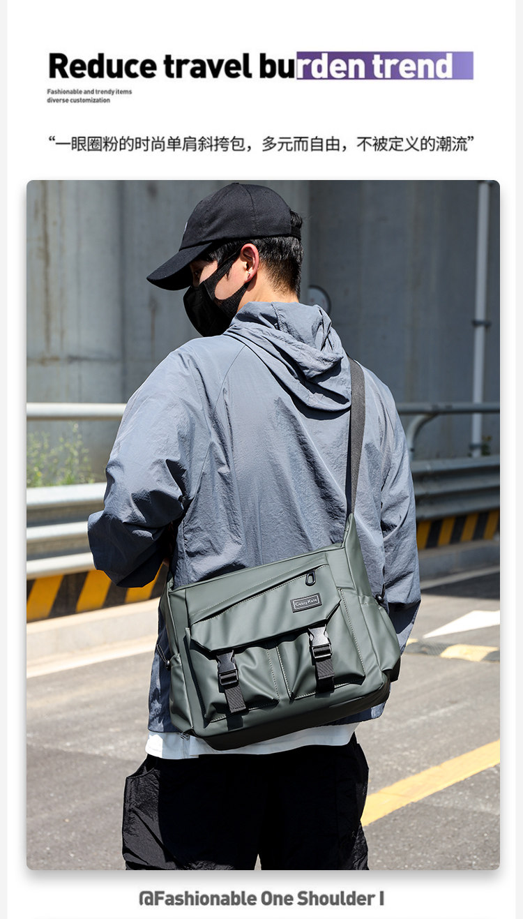斜後後背包男款大容量運動機能風女挎包登山工裝包自製街頭設計單肩包