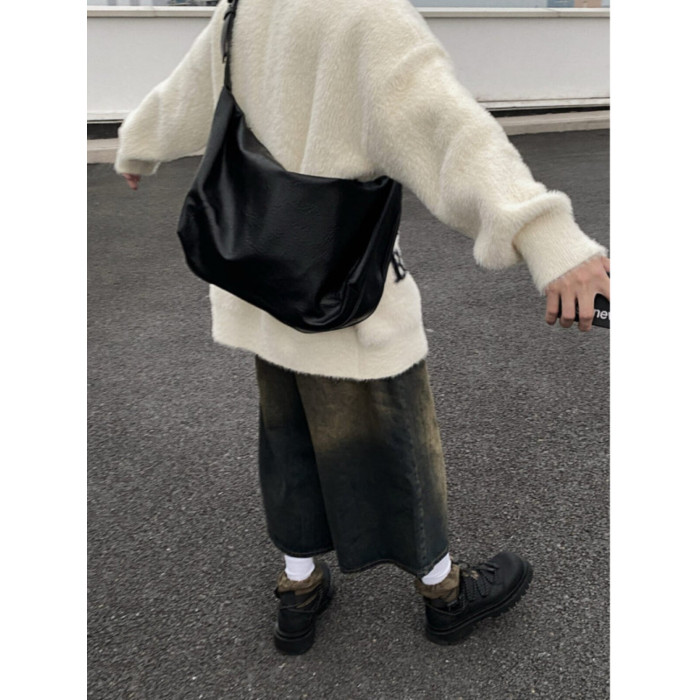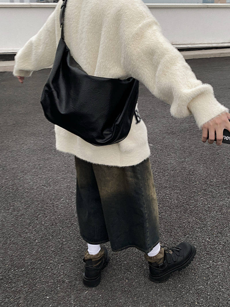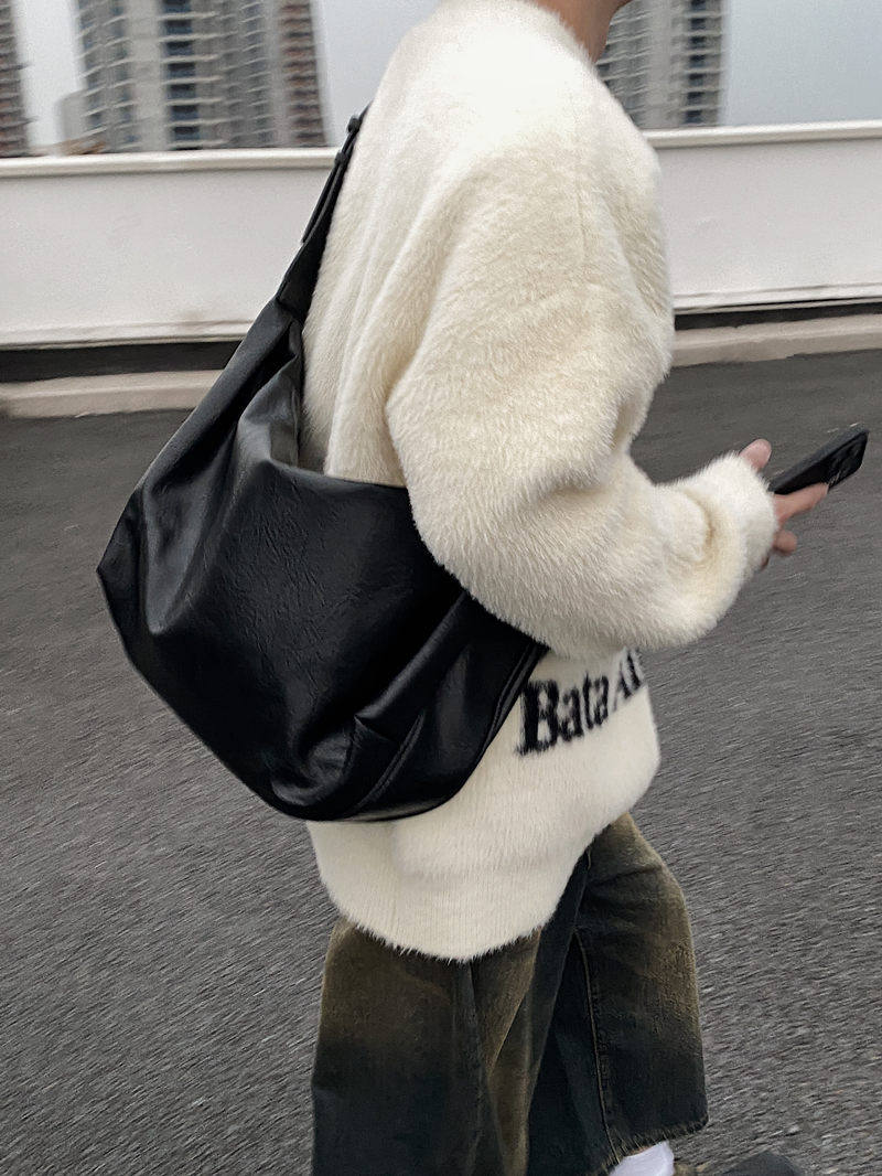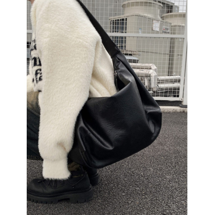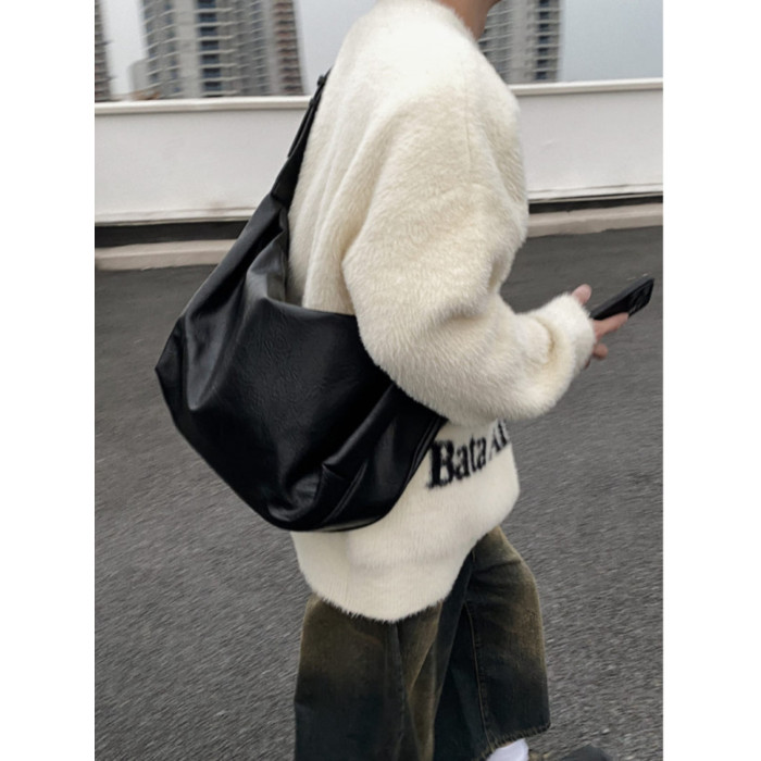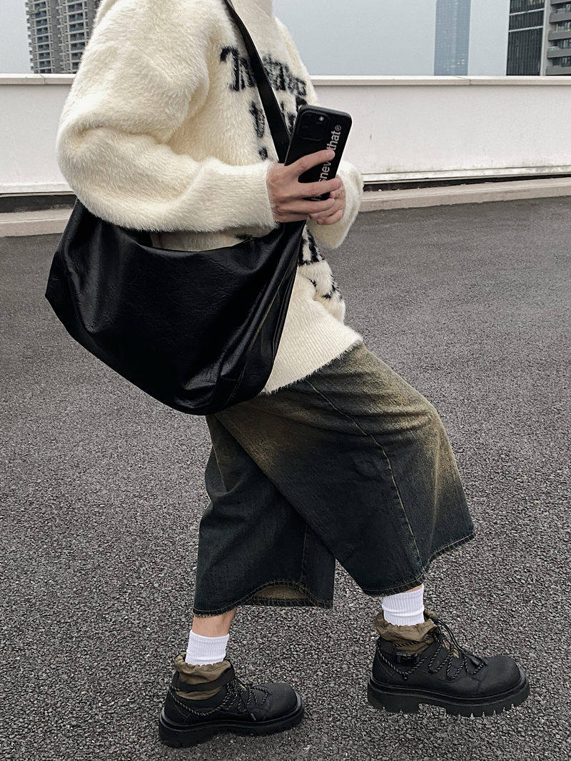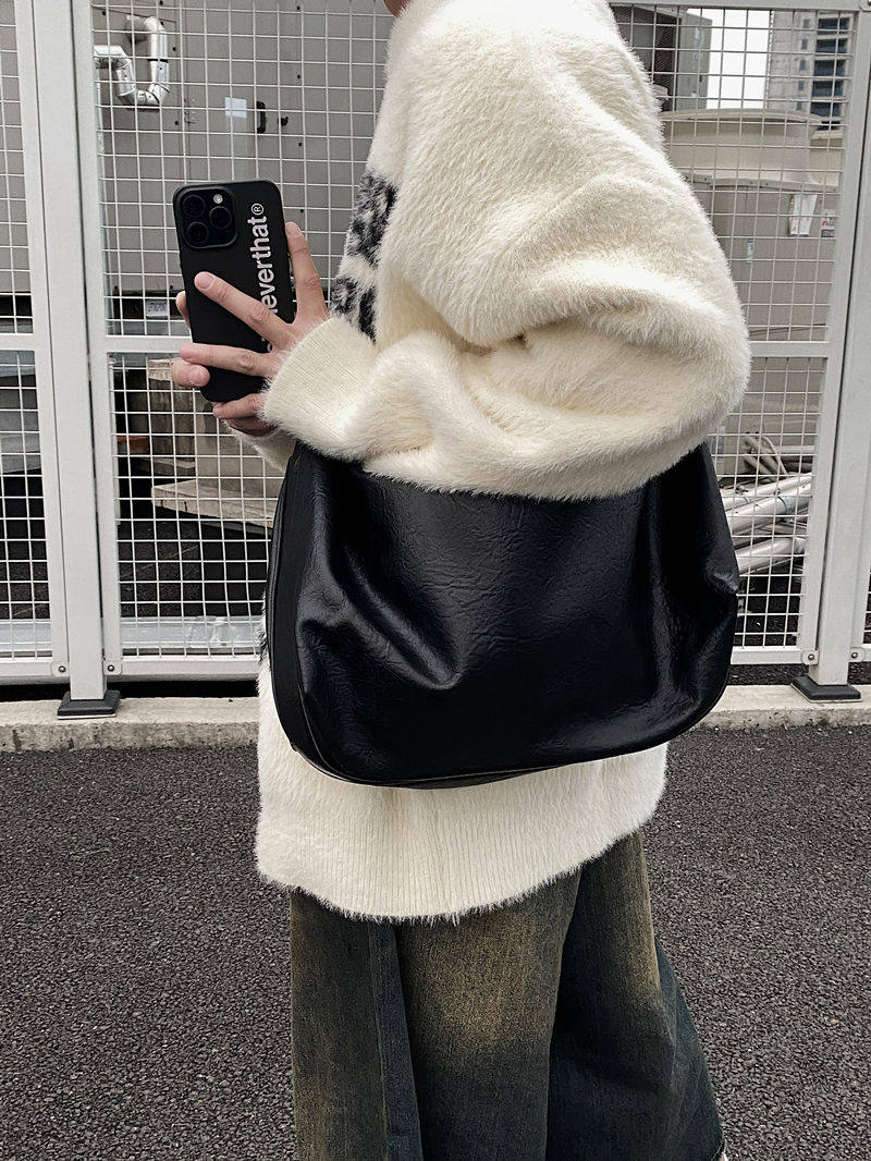 潮流簡約男生百搭通勤包皮質大容量托特包韓版軟皮斜後後背包大單肩包