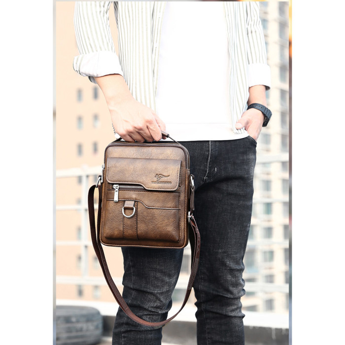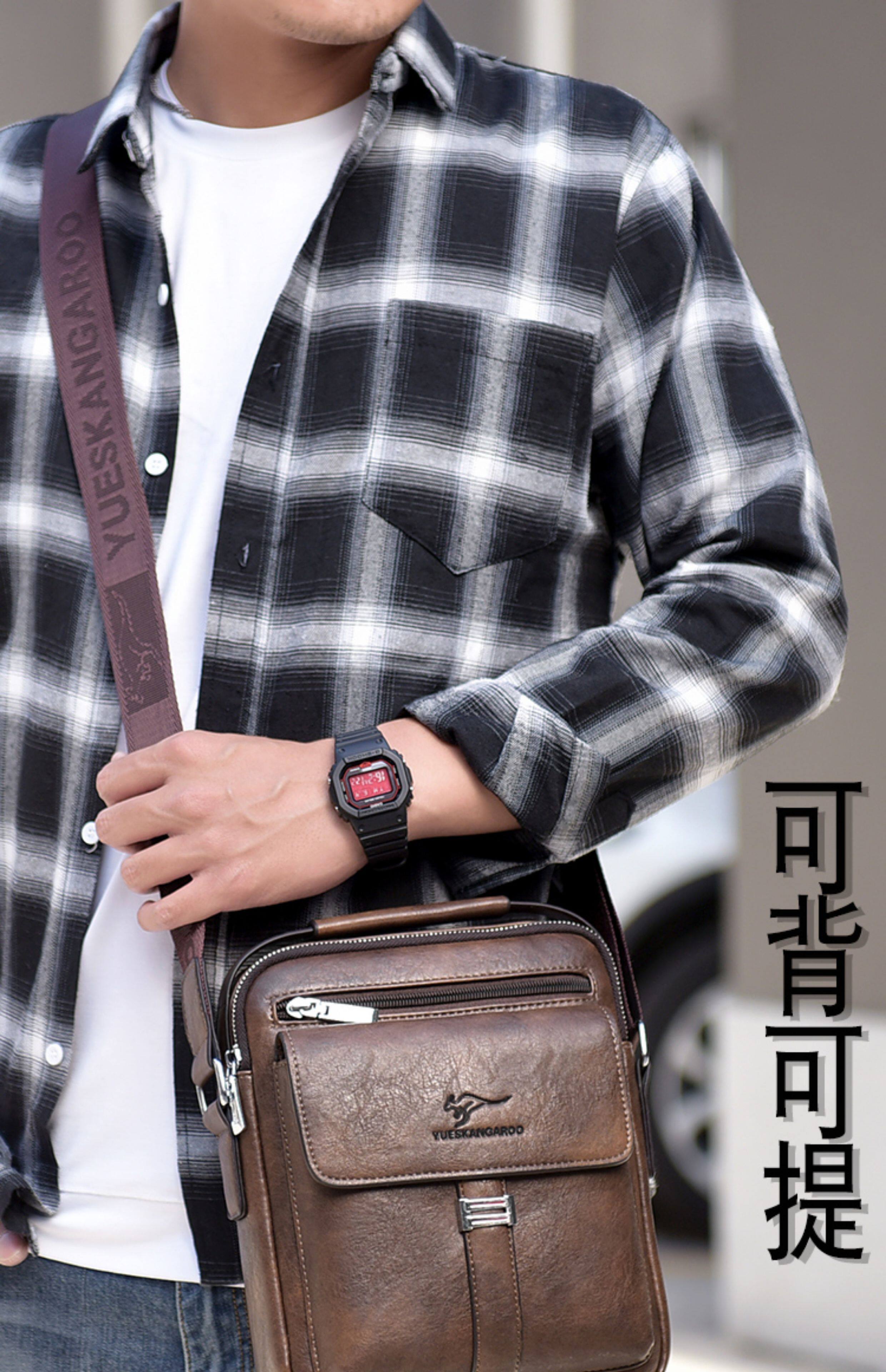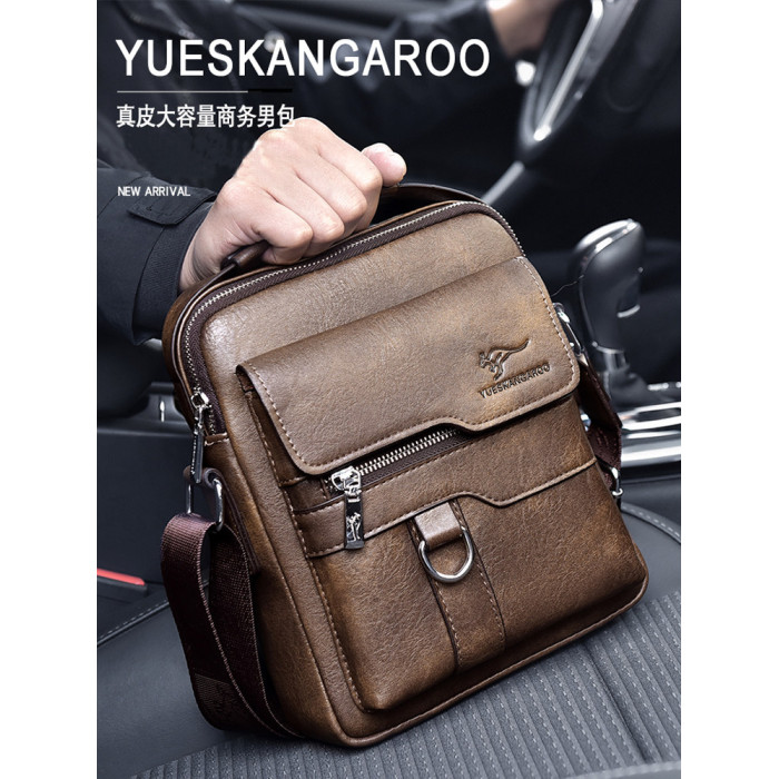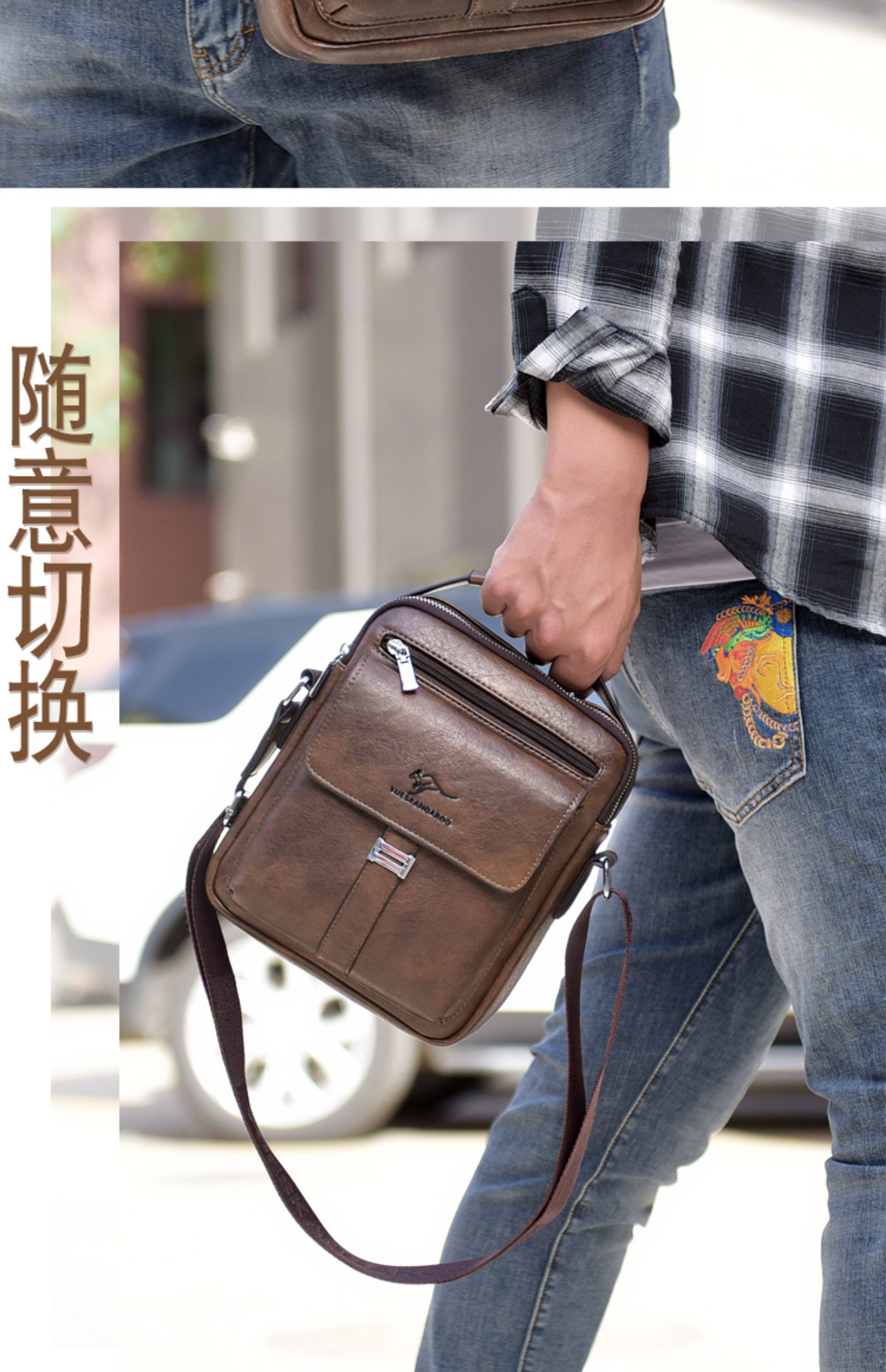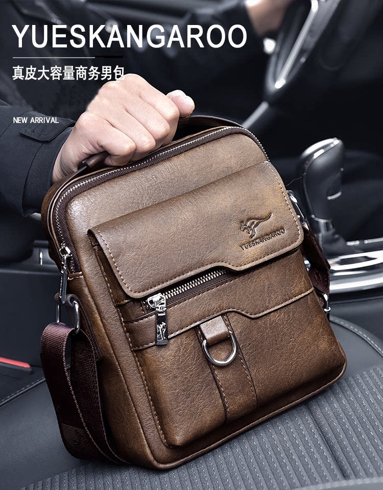 麥克袋鼠時尚男包真皮斜背單肩包牛皮商務手提包男士包包皮包竪款
