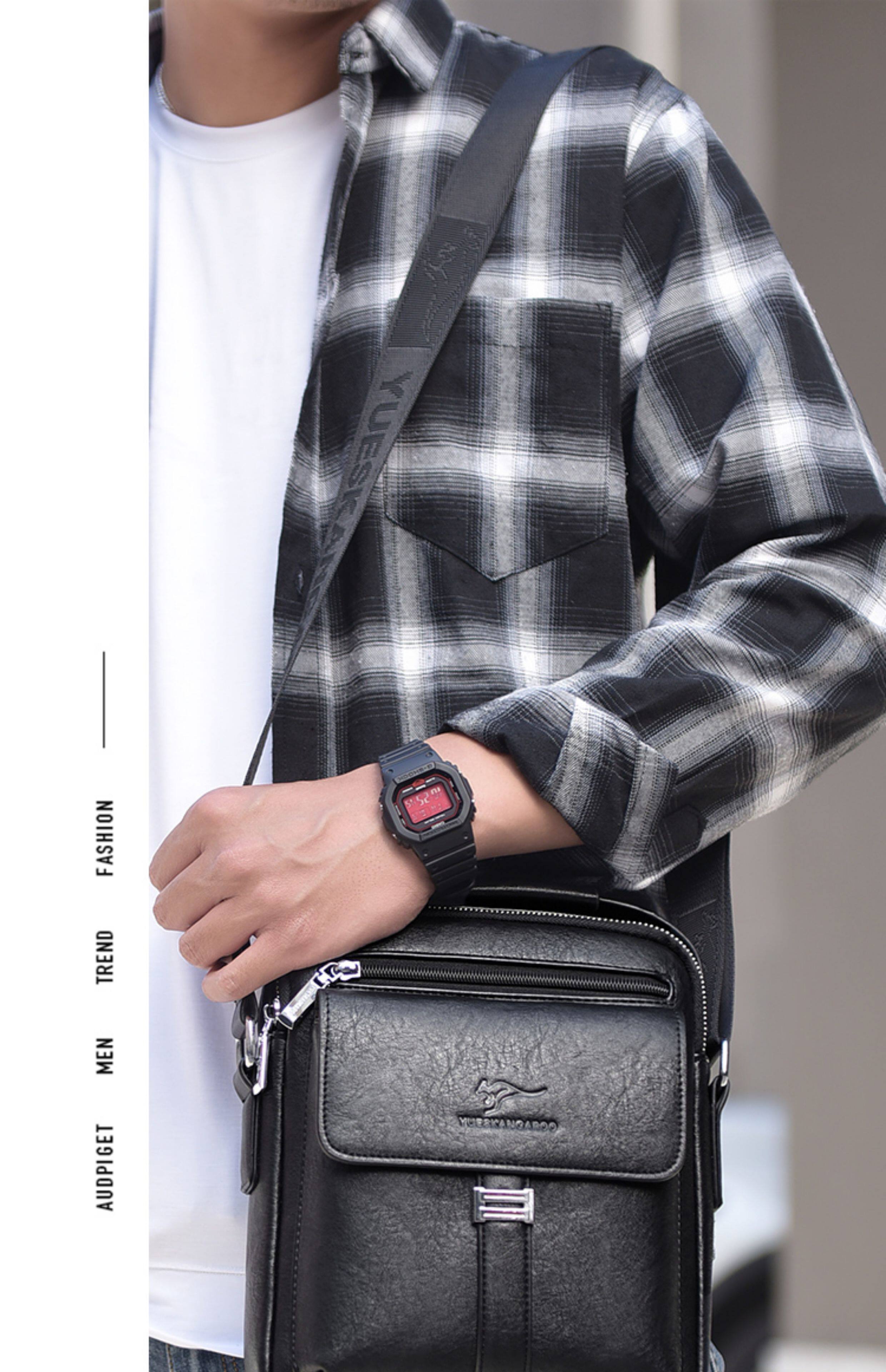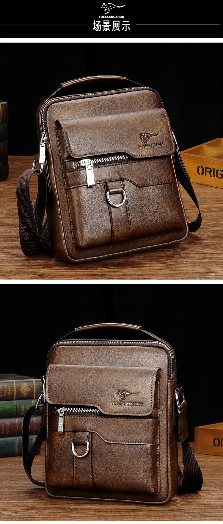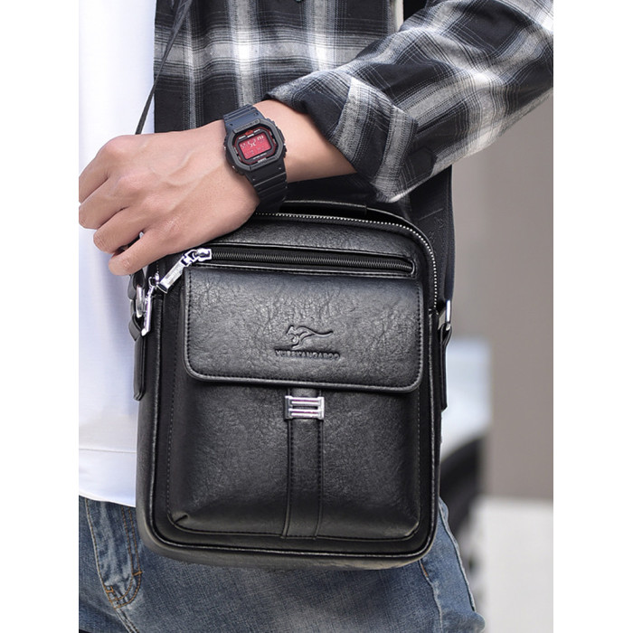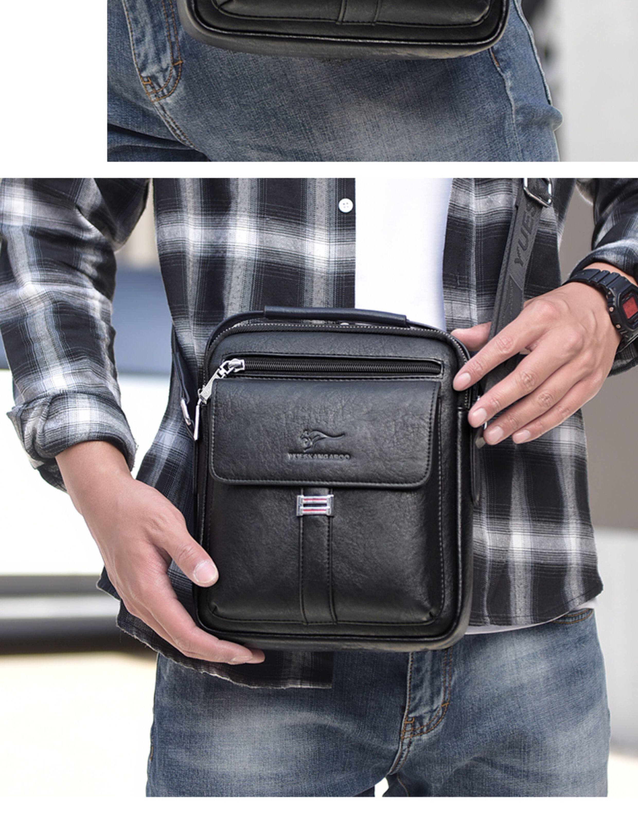 麥克袋鼠時尚男包真皮斜背單肩包牛皮商務手提包男士包包皮包竪款