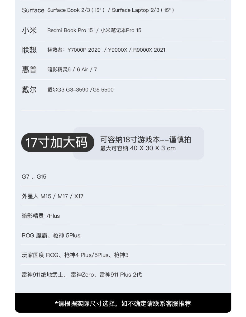 款式及尺寸: