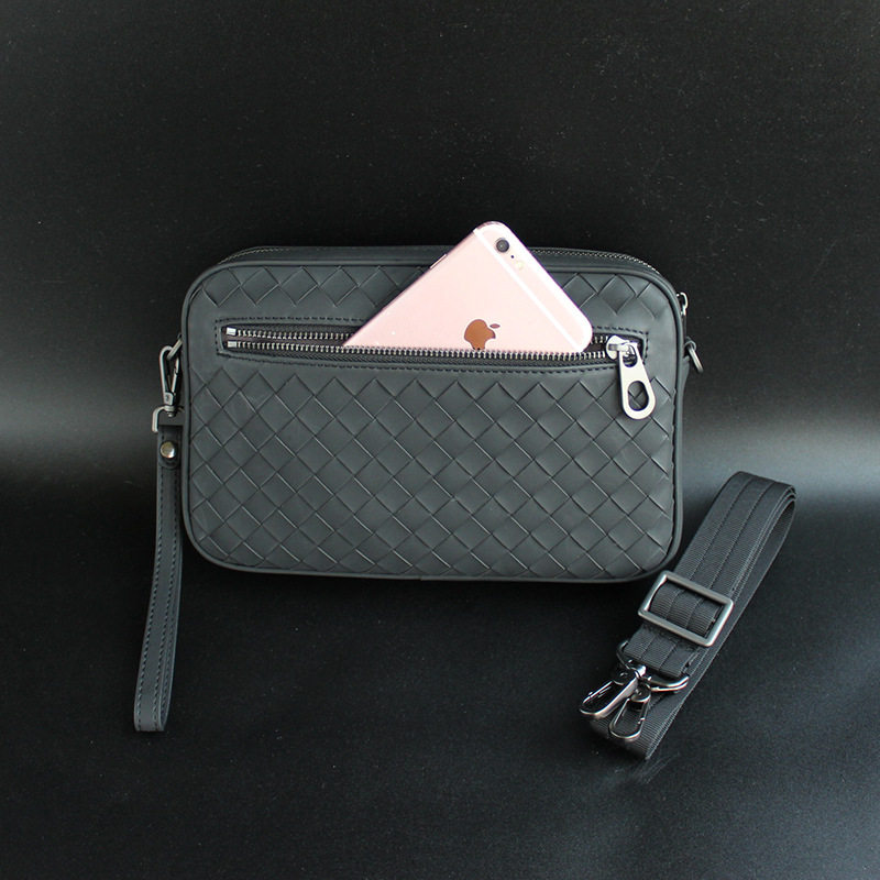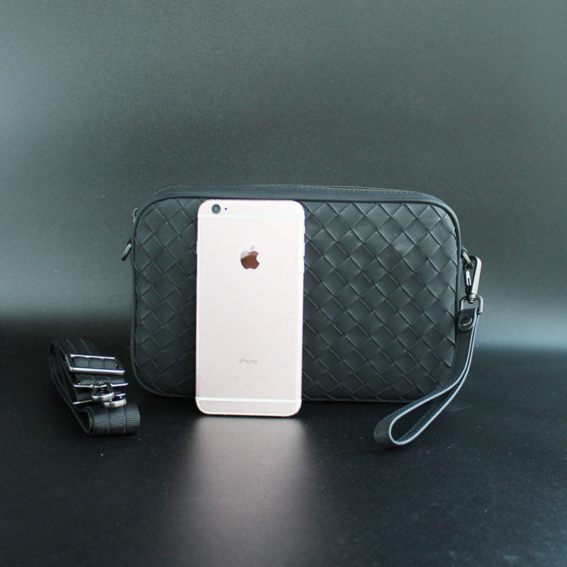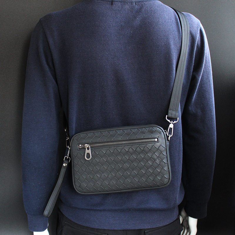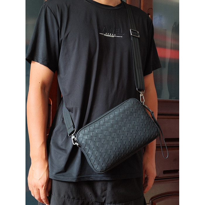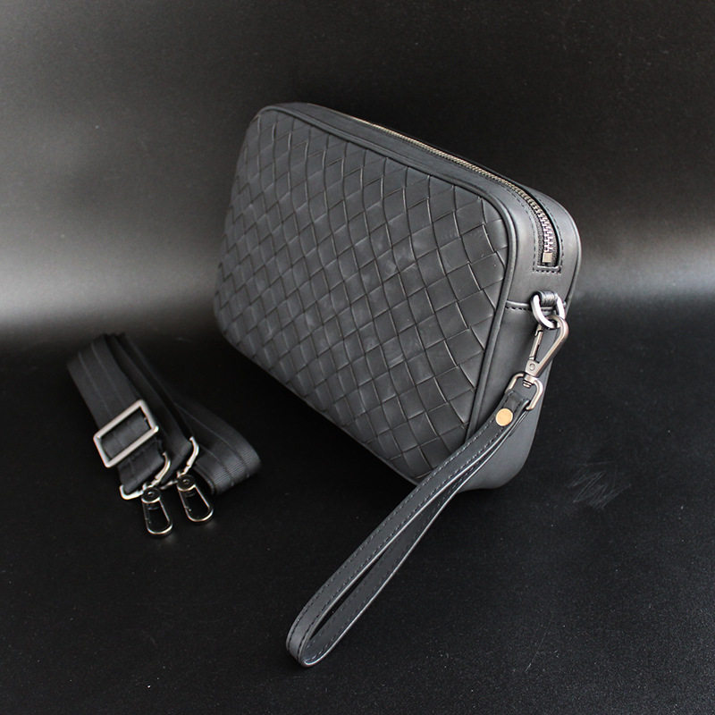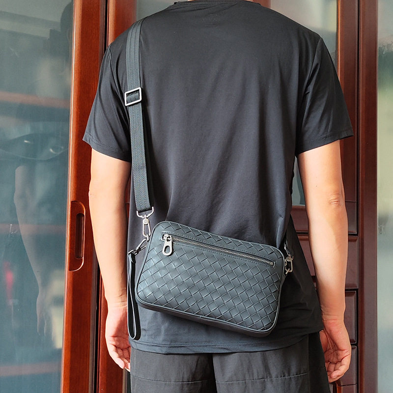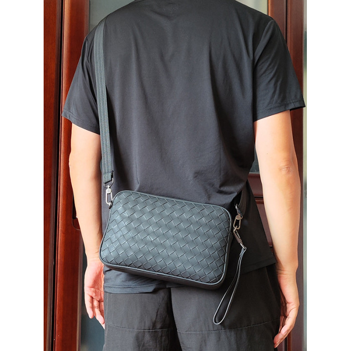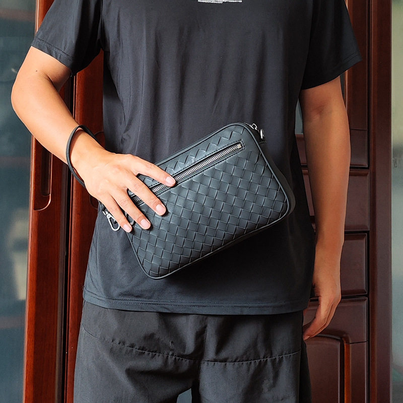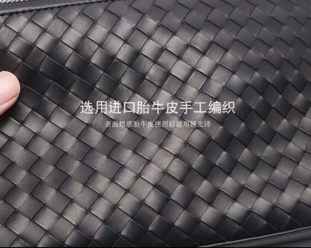 【胎牛皮】B家潮打蠟手工編織男士手拿單肩包時尚商務斜後後背包