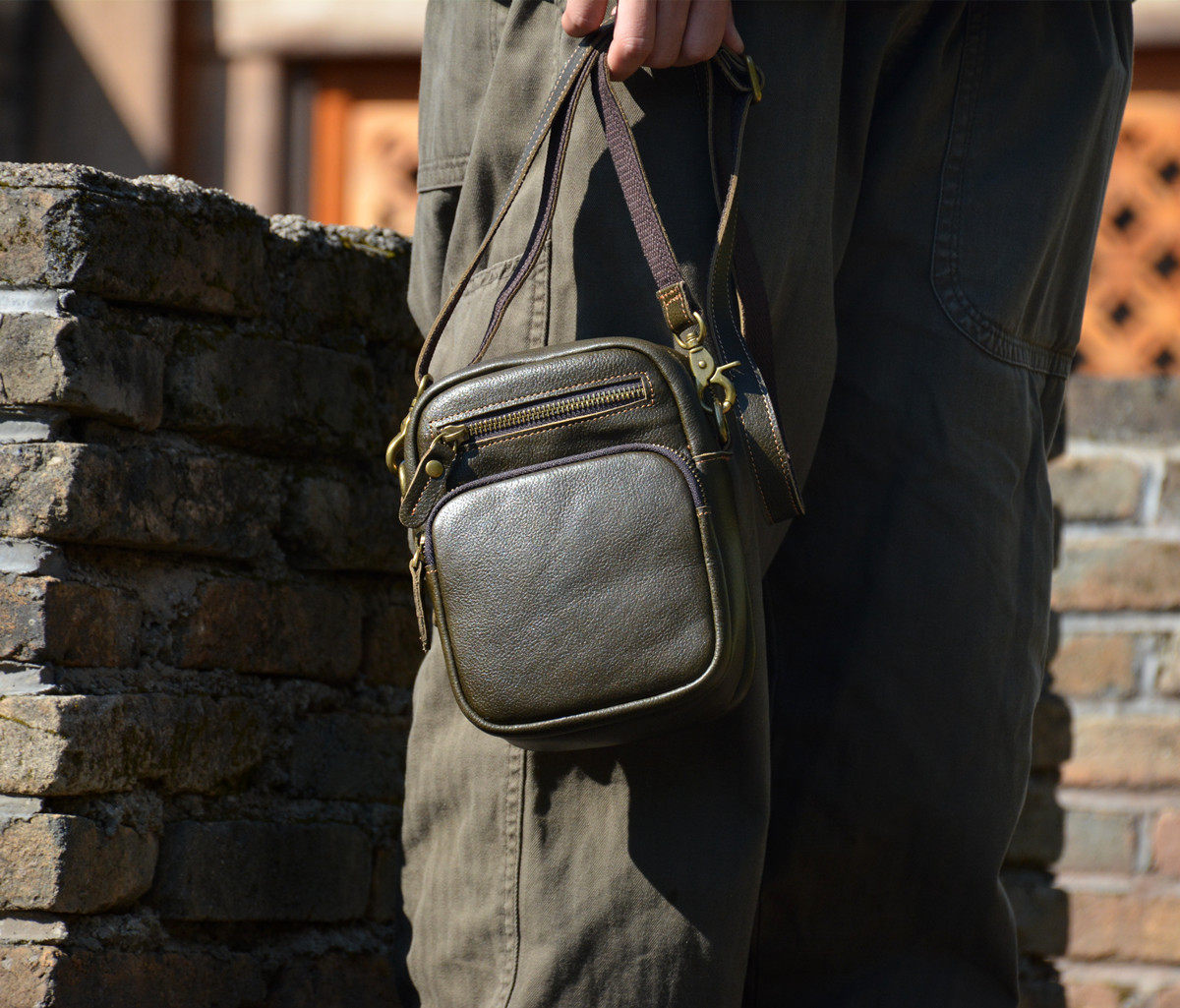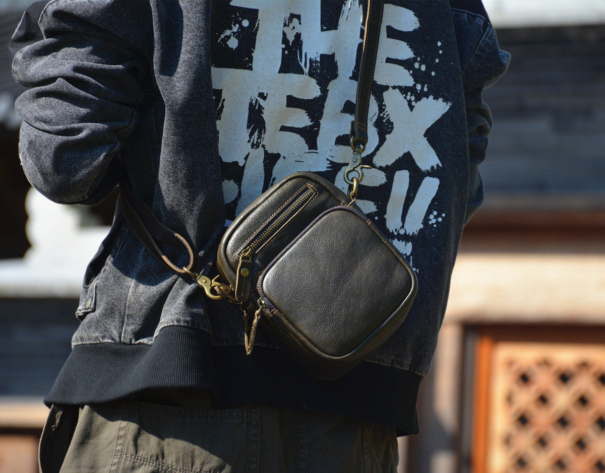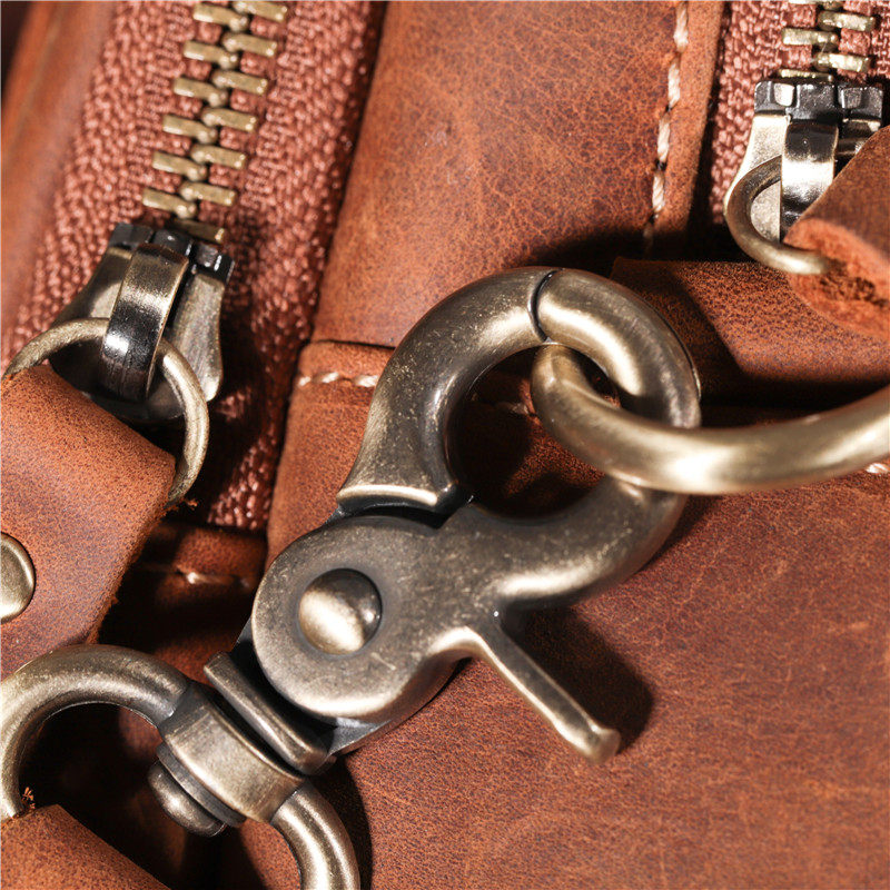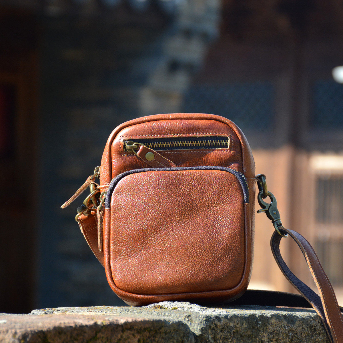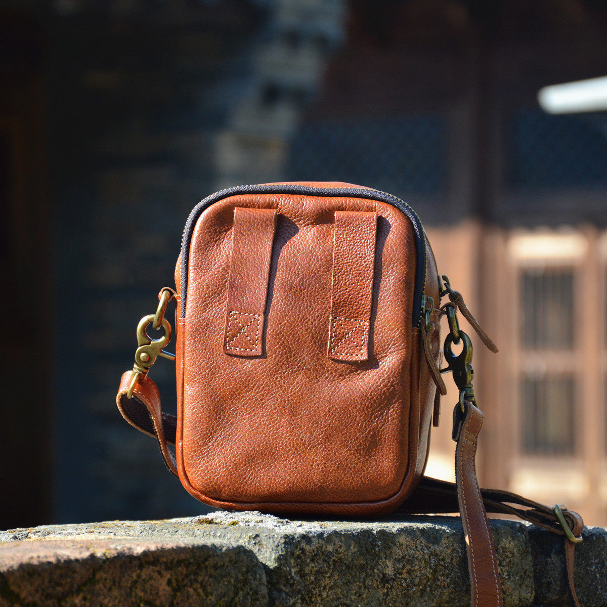原創新款瘋馬皮腰包男多隔層小包真皮復古斜後後背包牛皮手機包運動包