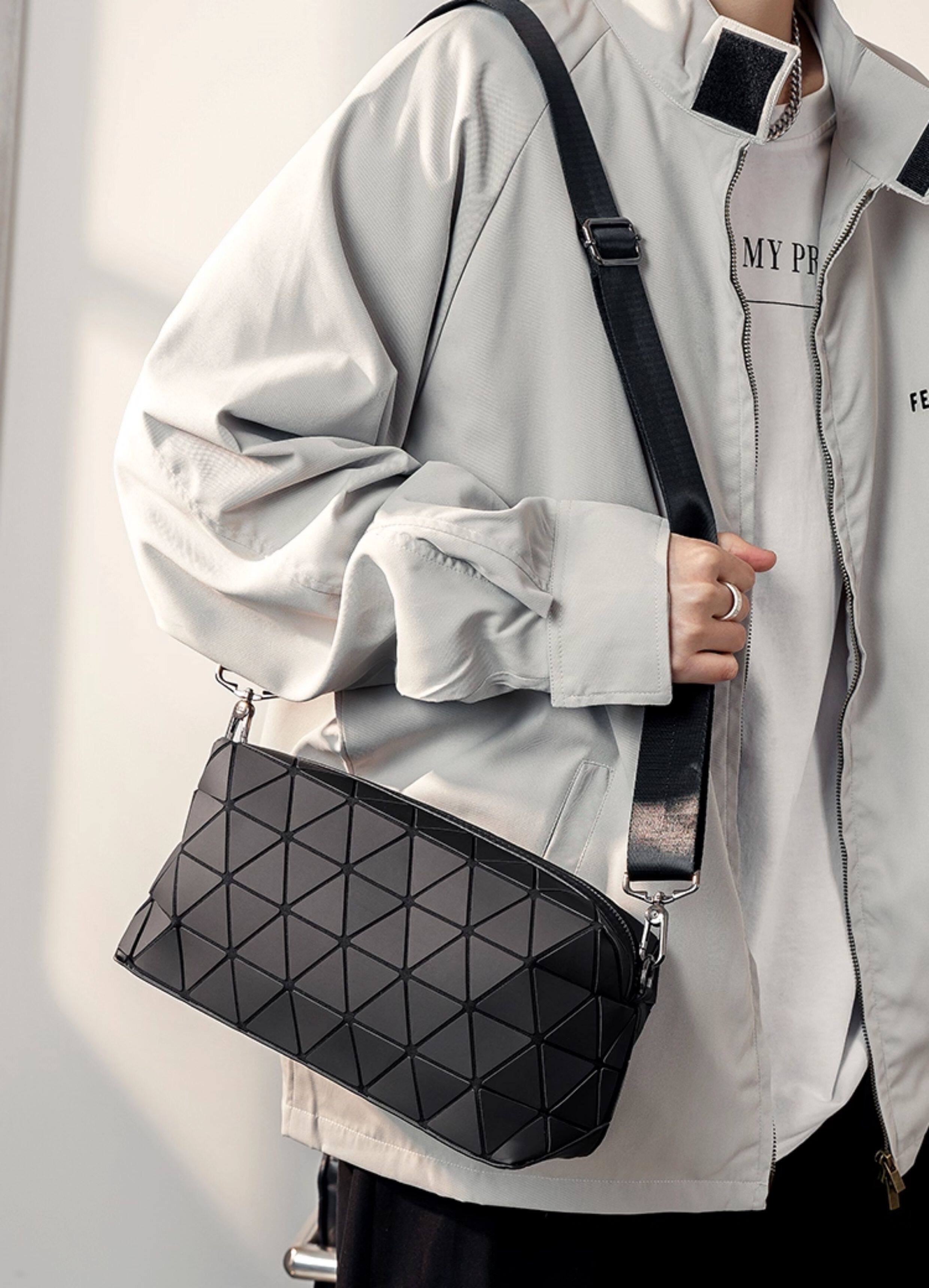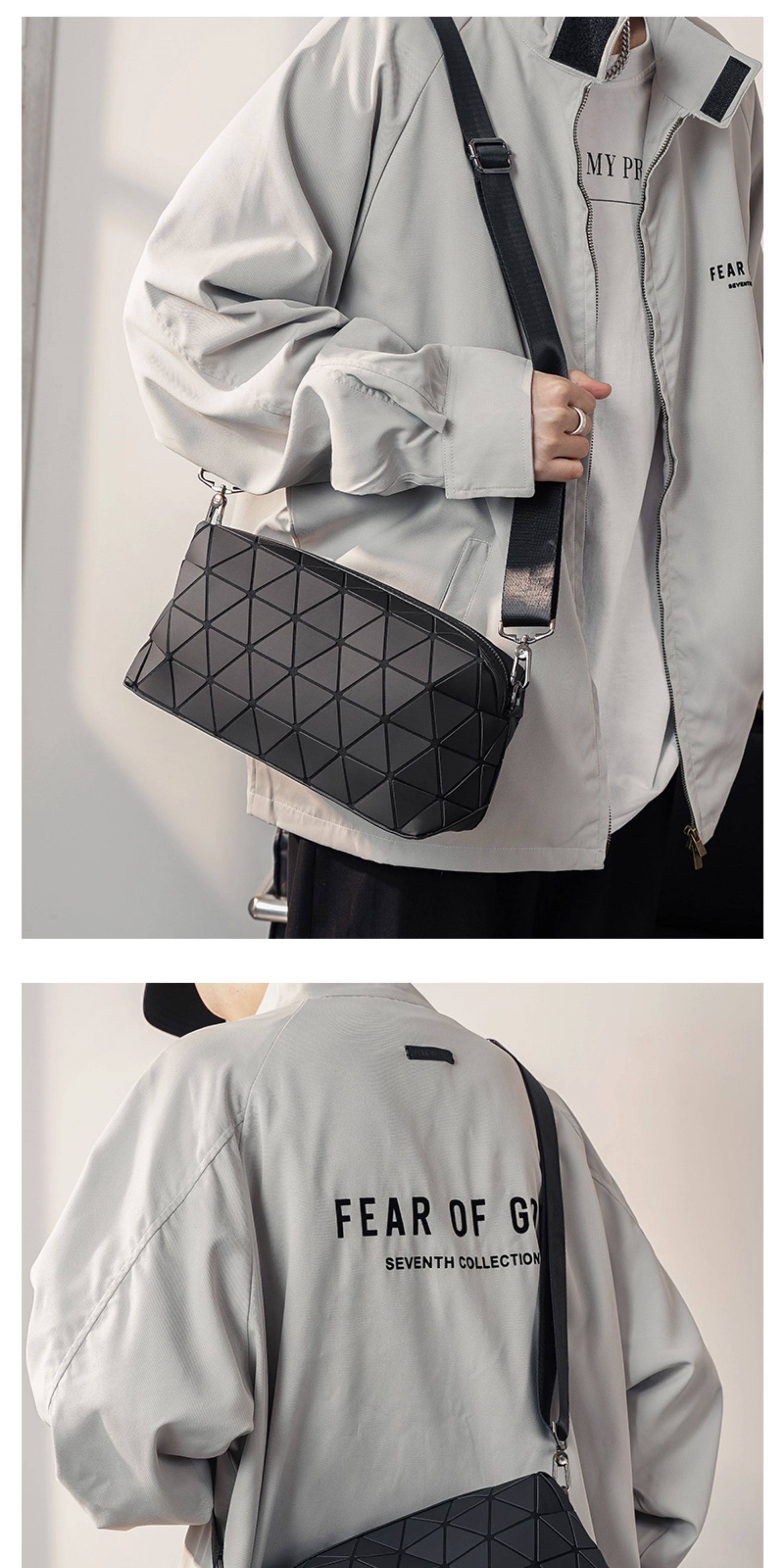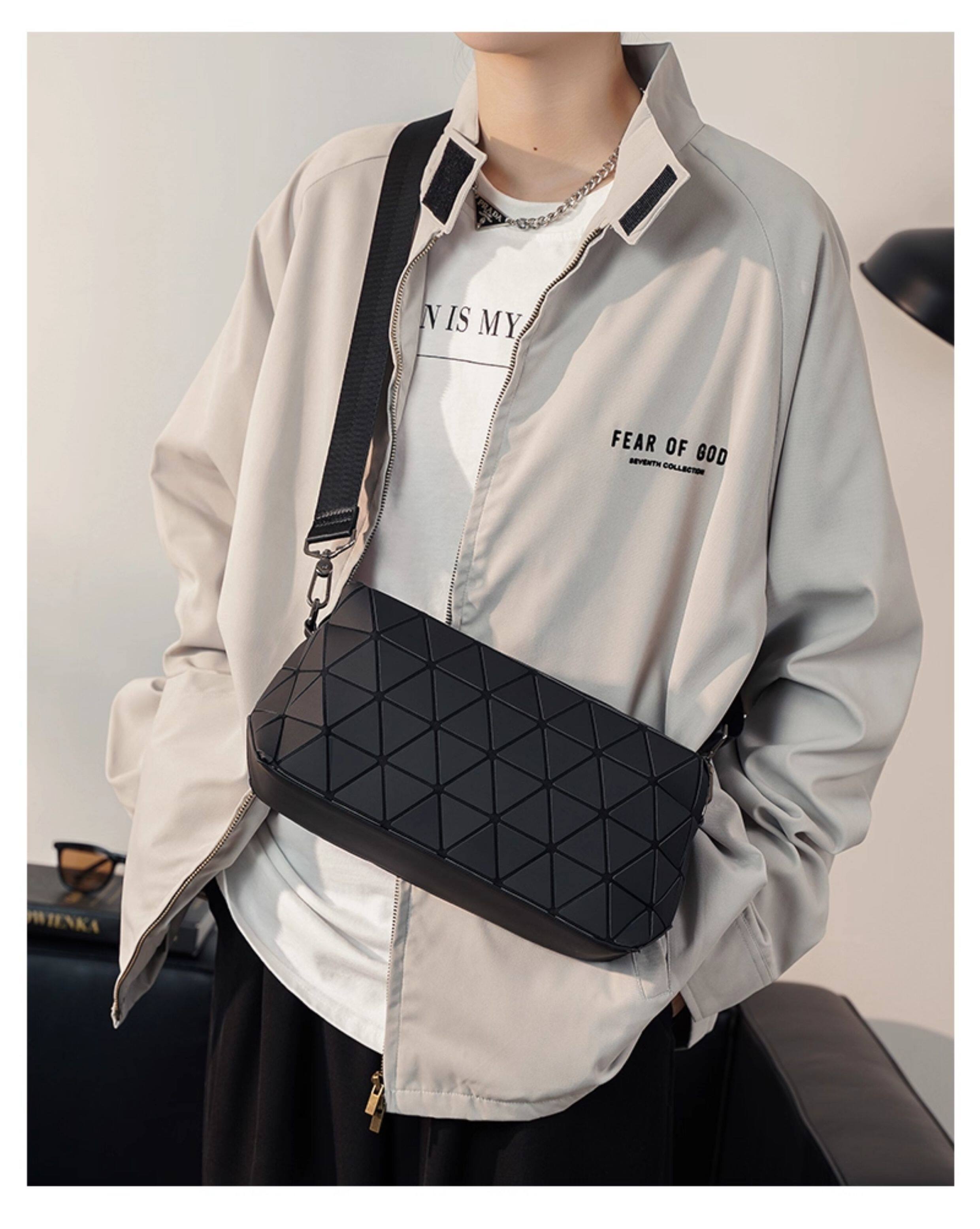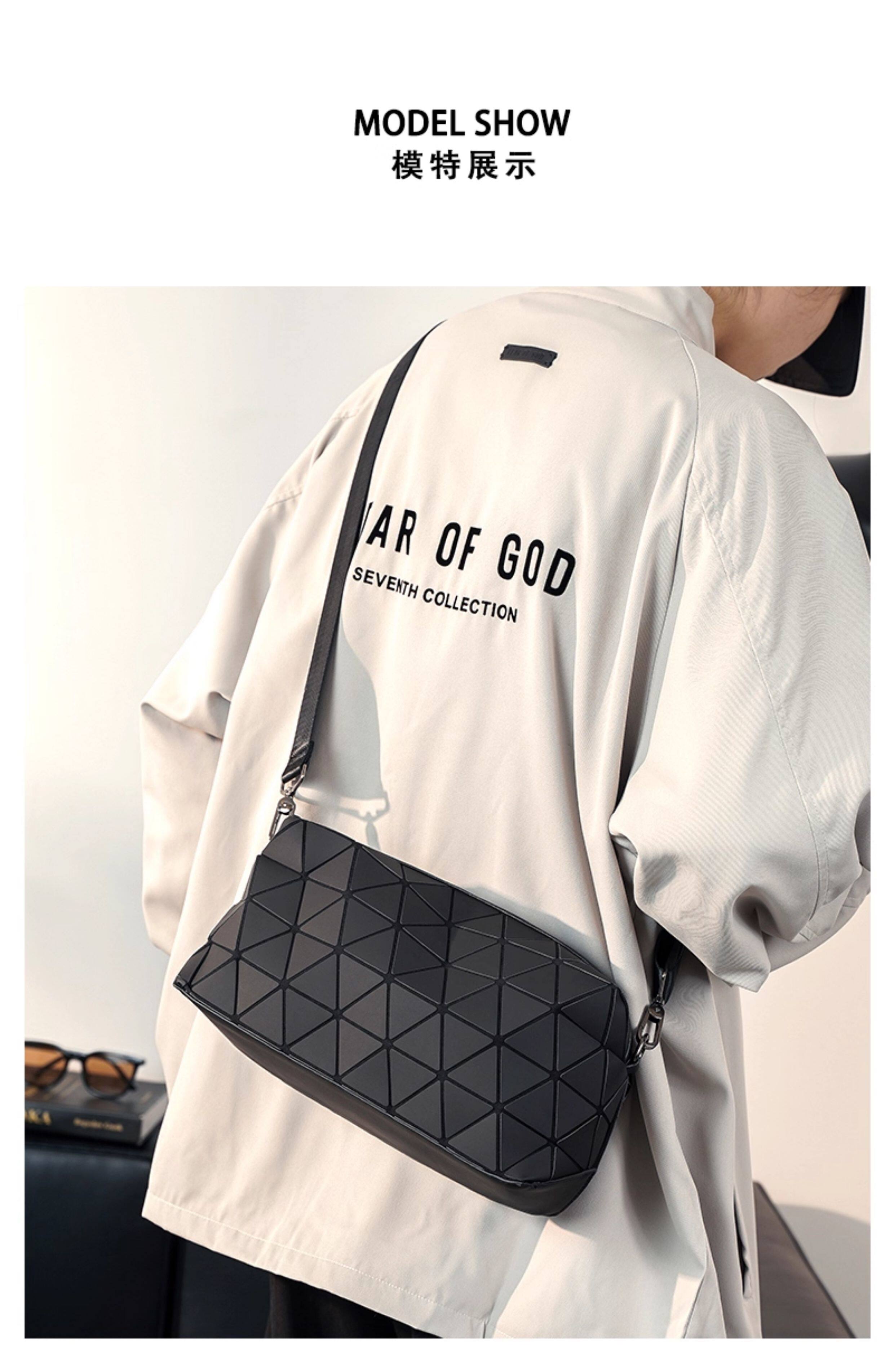 斜後後背包男款菱格圖案單肩包小方包 韓版男包休閒時尚百搭斜掛包
