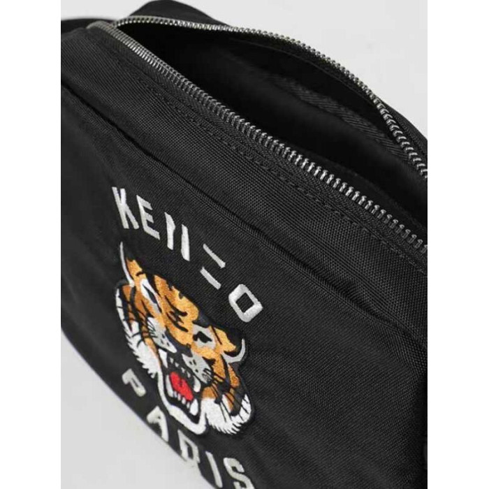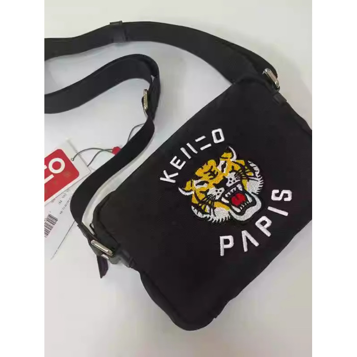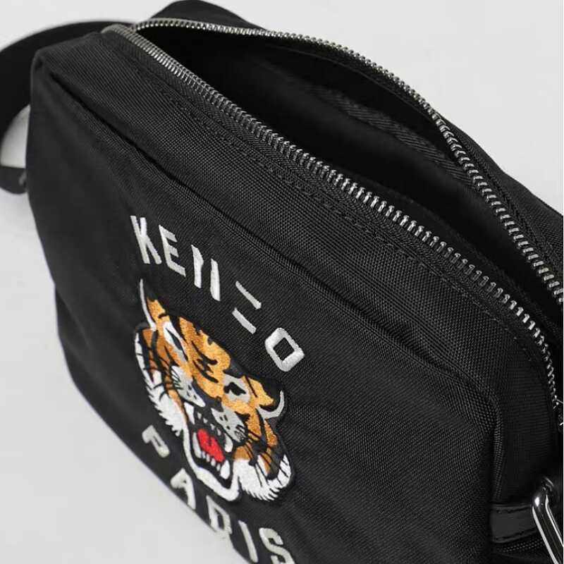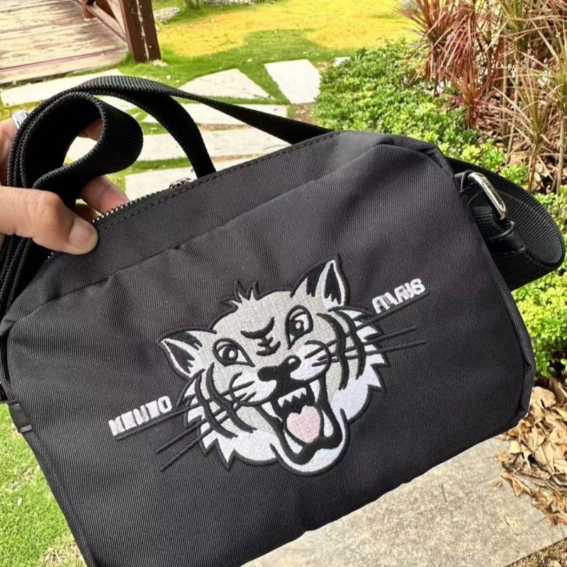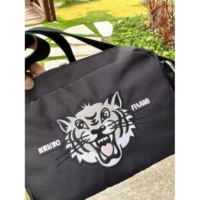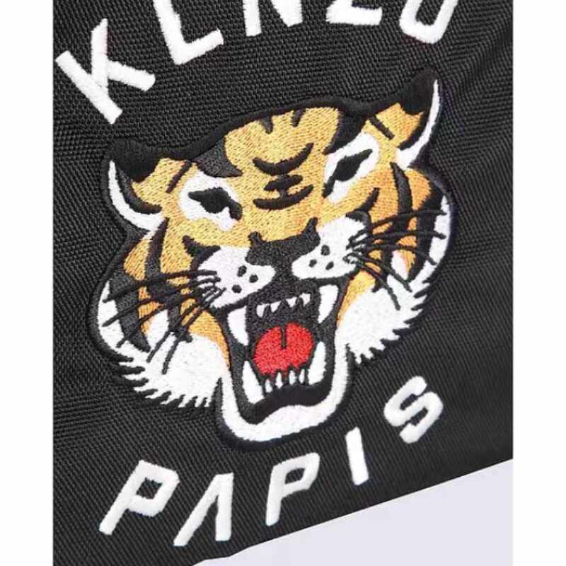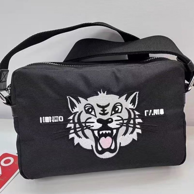 24新品休閒簡約大容量撞色男女同款微標老虎圖案字母單肩斜後後背包