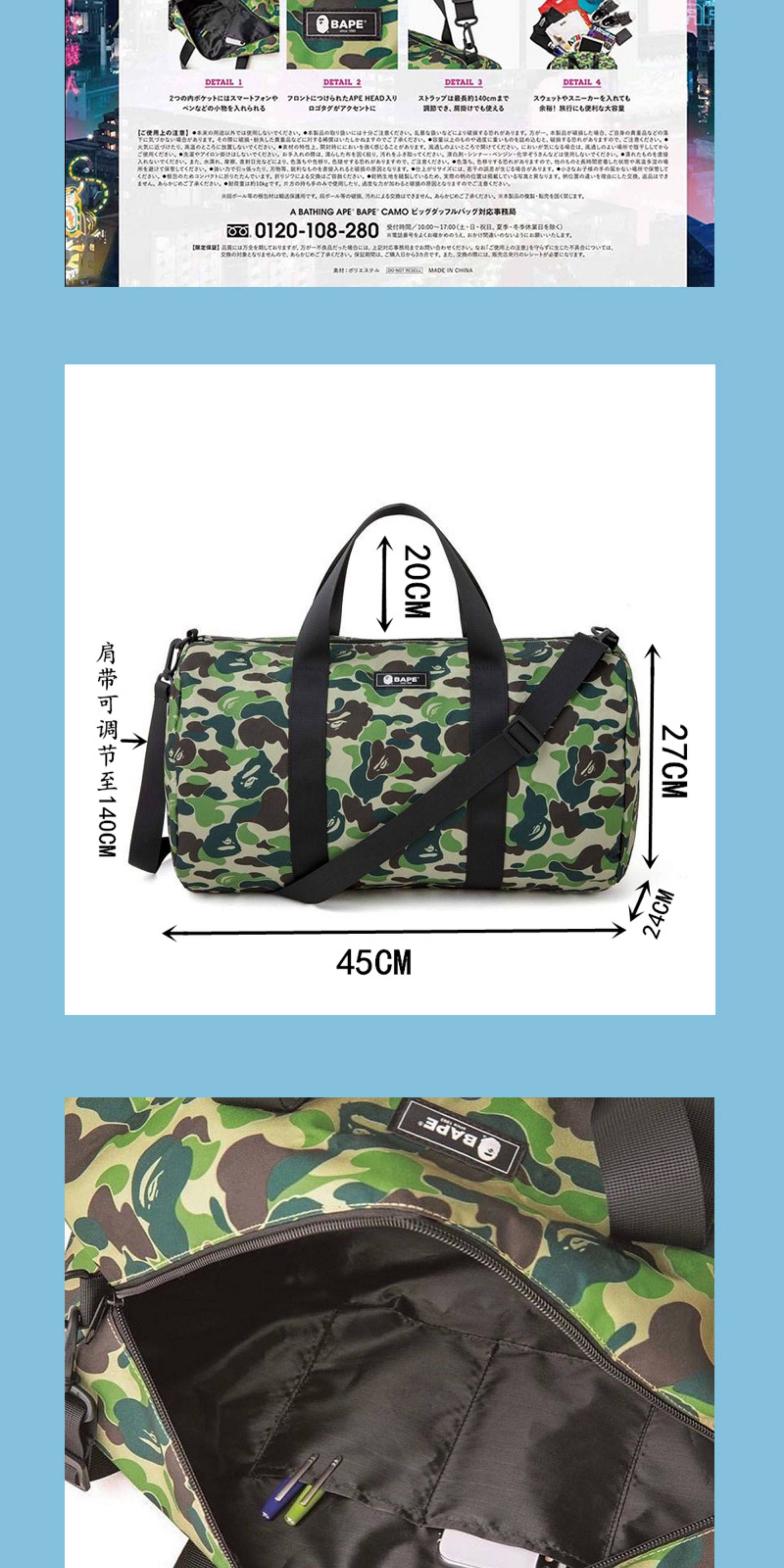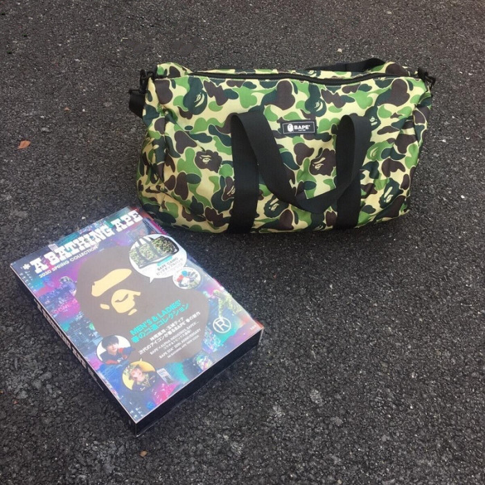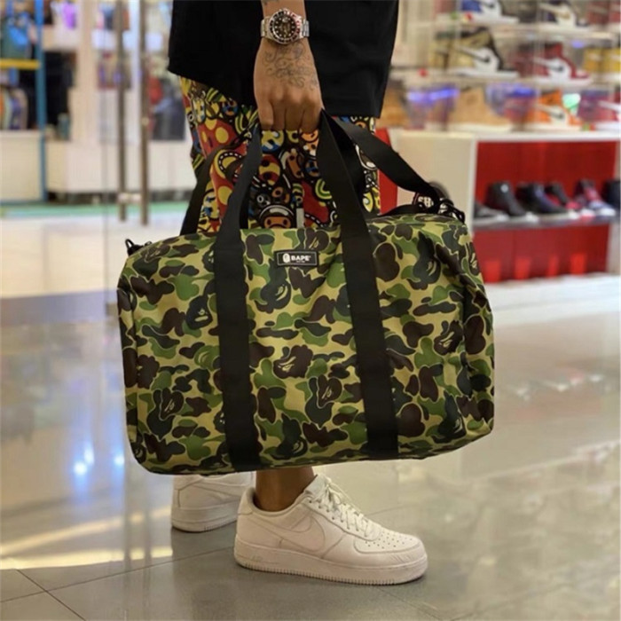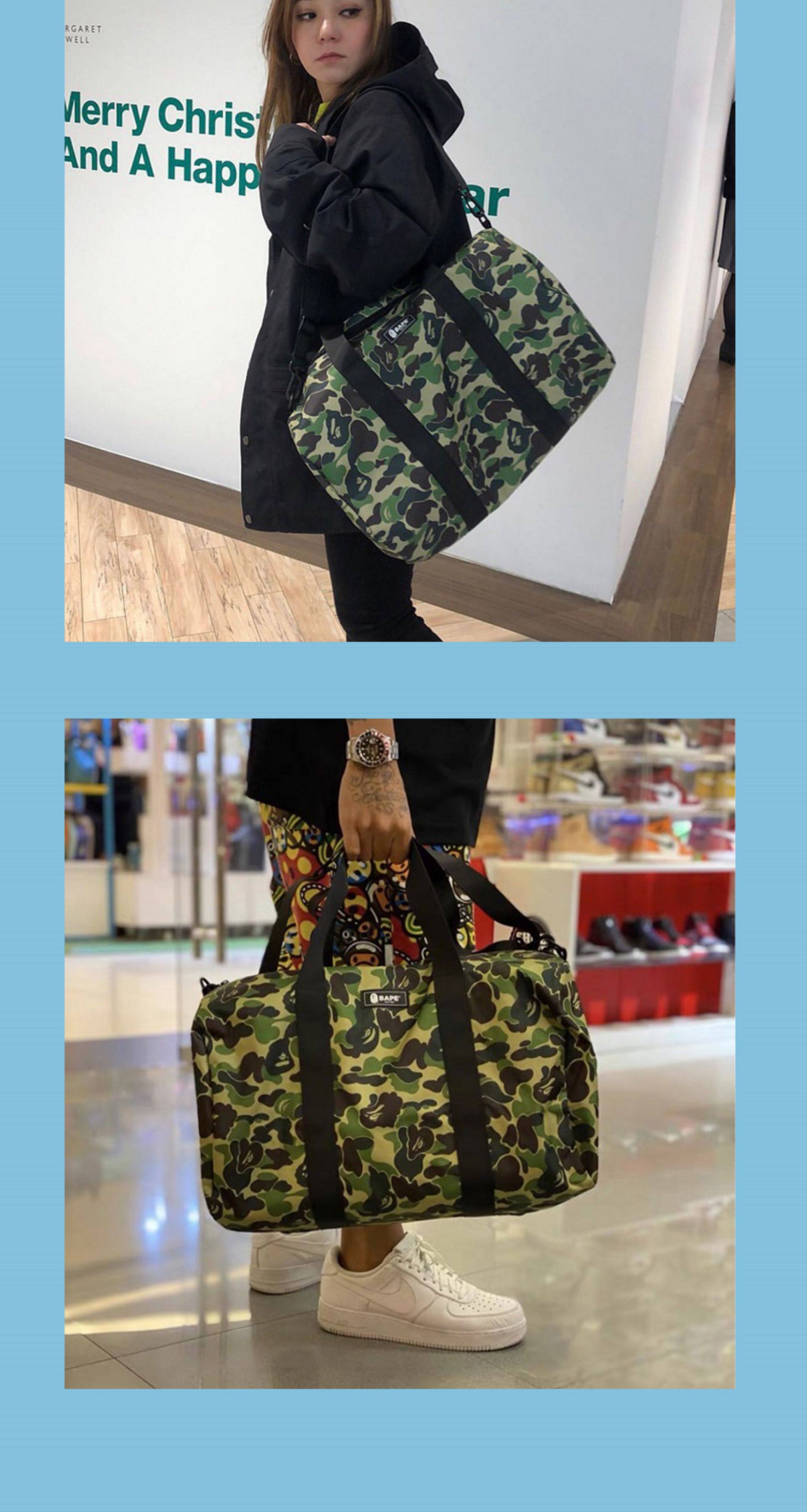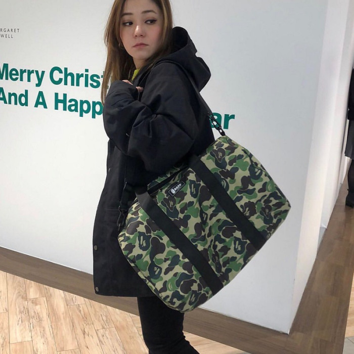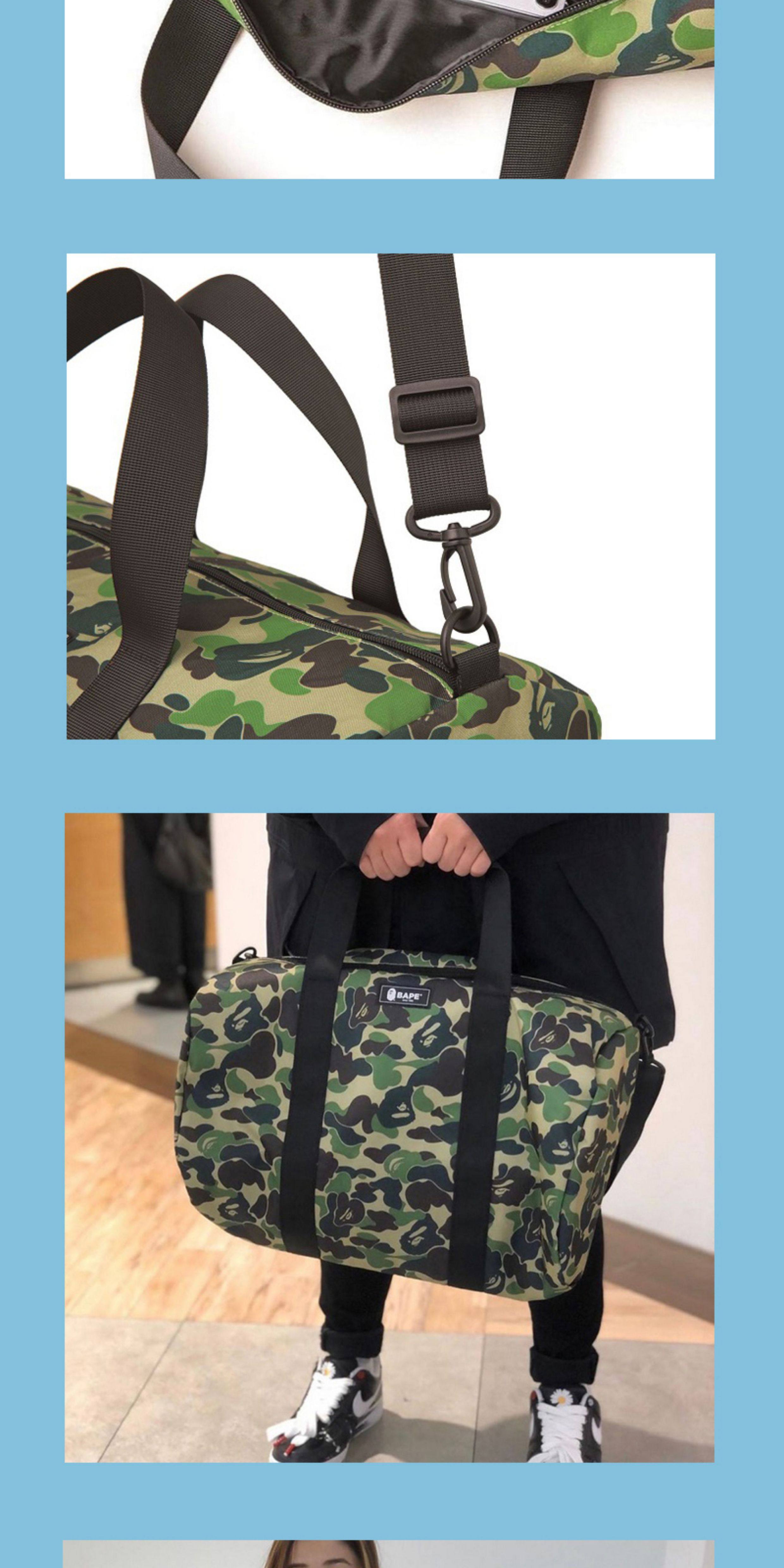 外星伴侶Bape迷彩猿人頭潮流單肩包手提斜後後背包旅行包運動桶包