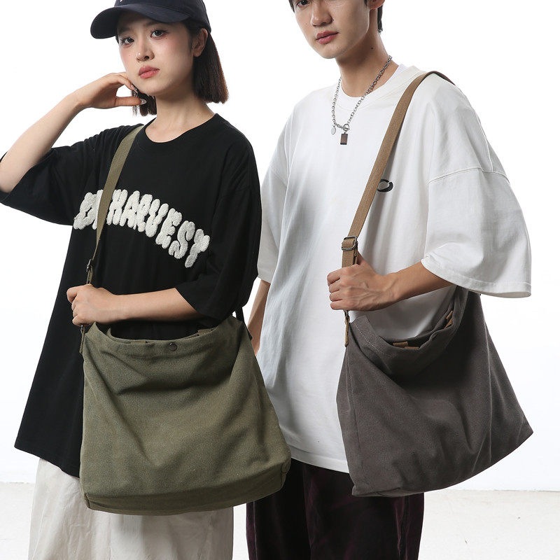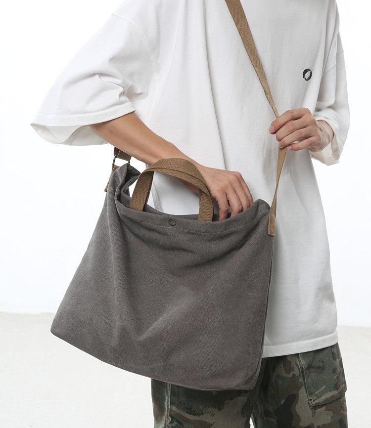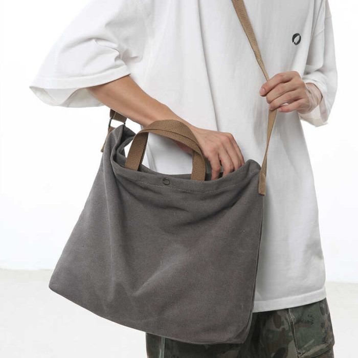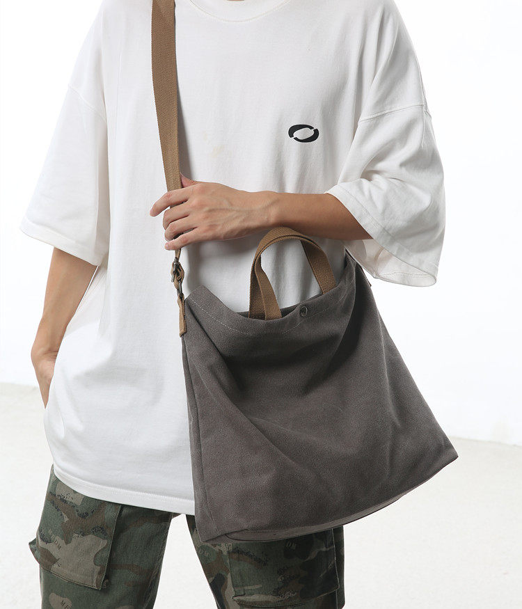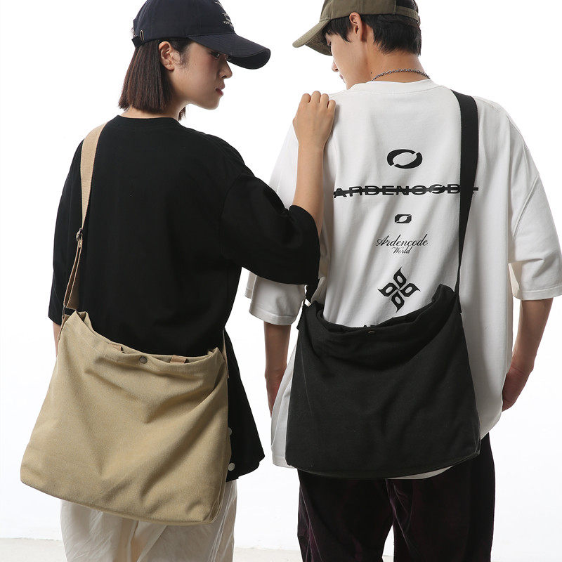帆布包男包單肩斜後後背包大容量休閒學生上課書包手提包日系單肩後後背包