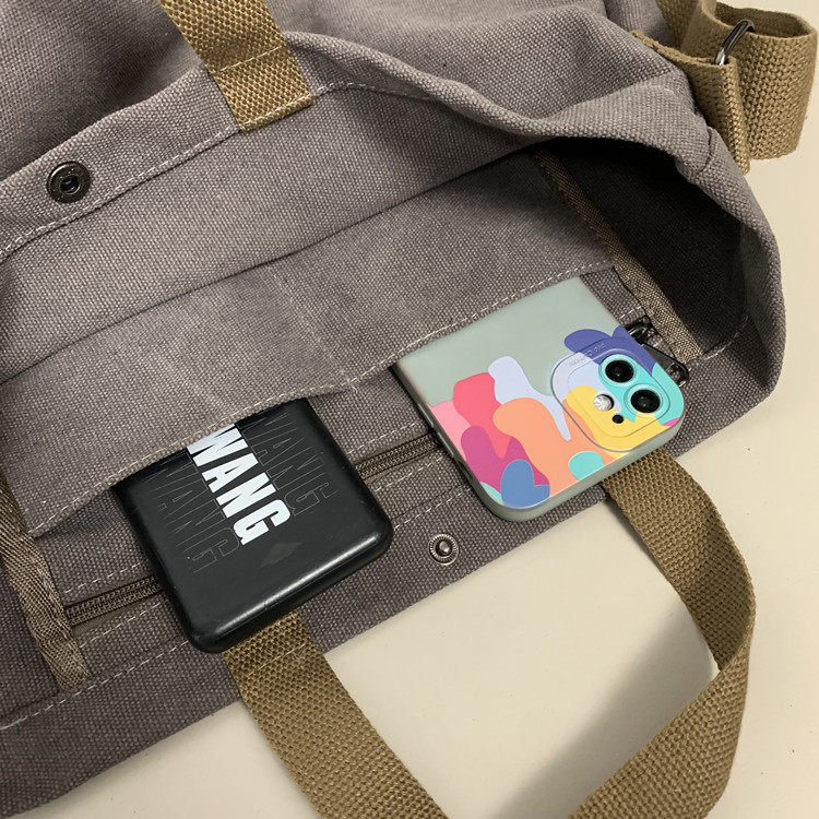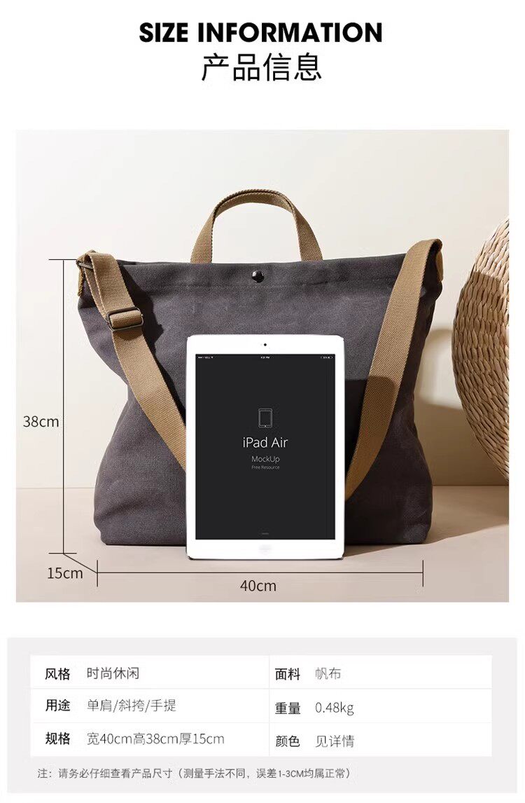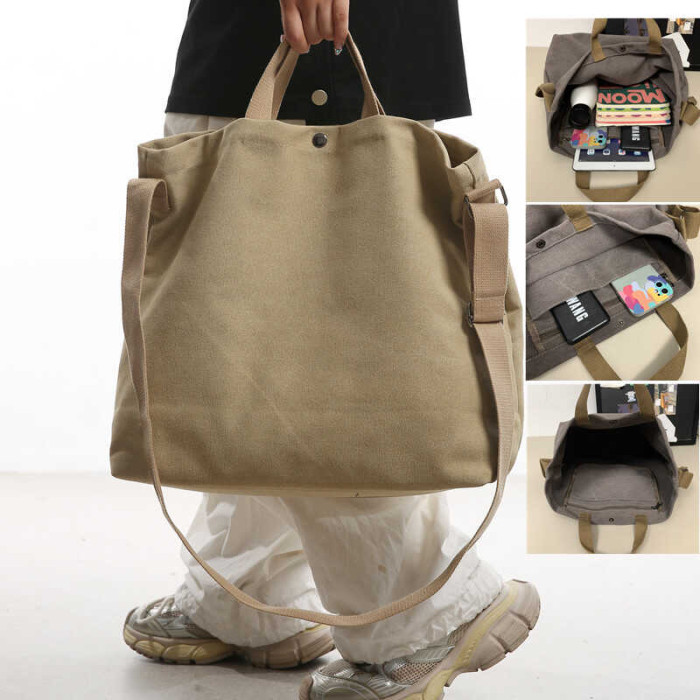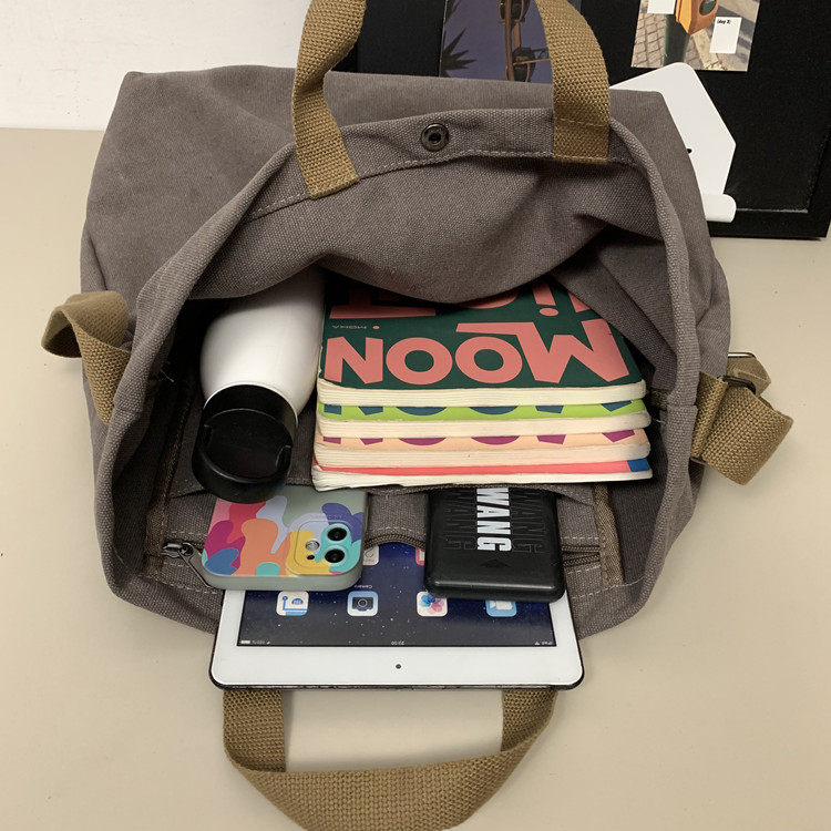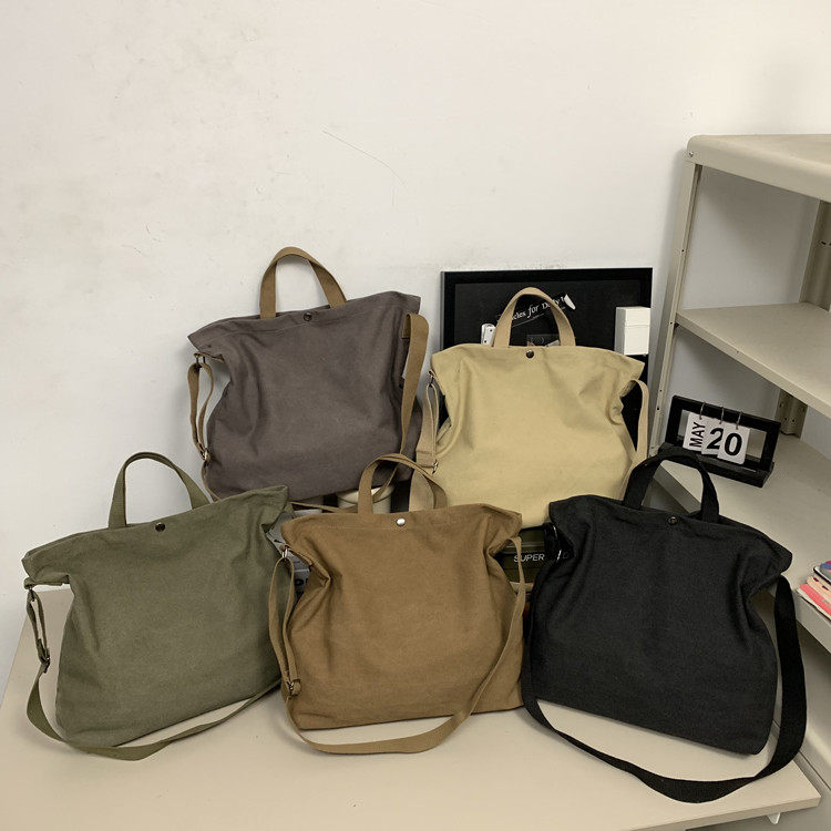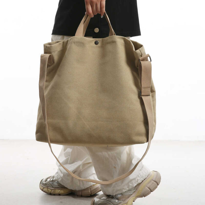 帆布包男包單肩斜後後背包大容量休閒學生上課書包手提包日系單肩後後背包