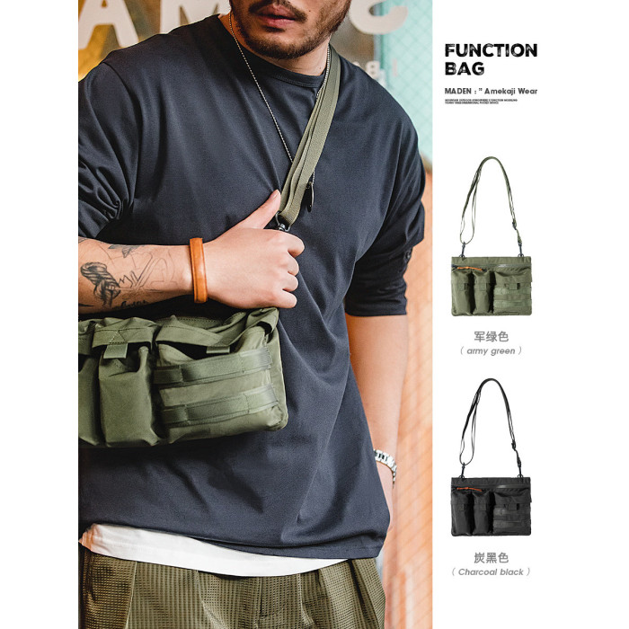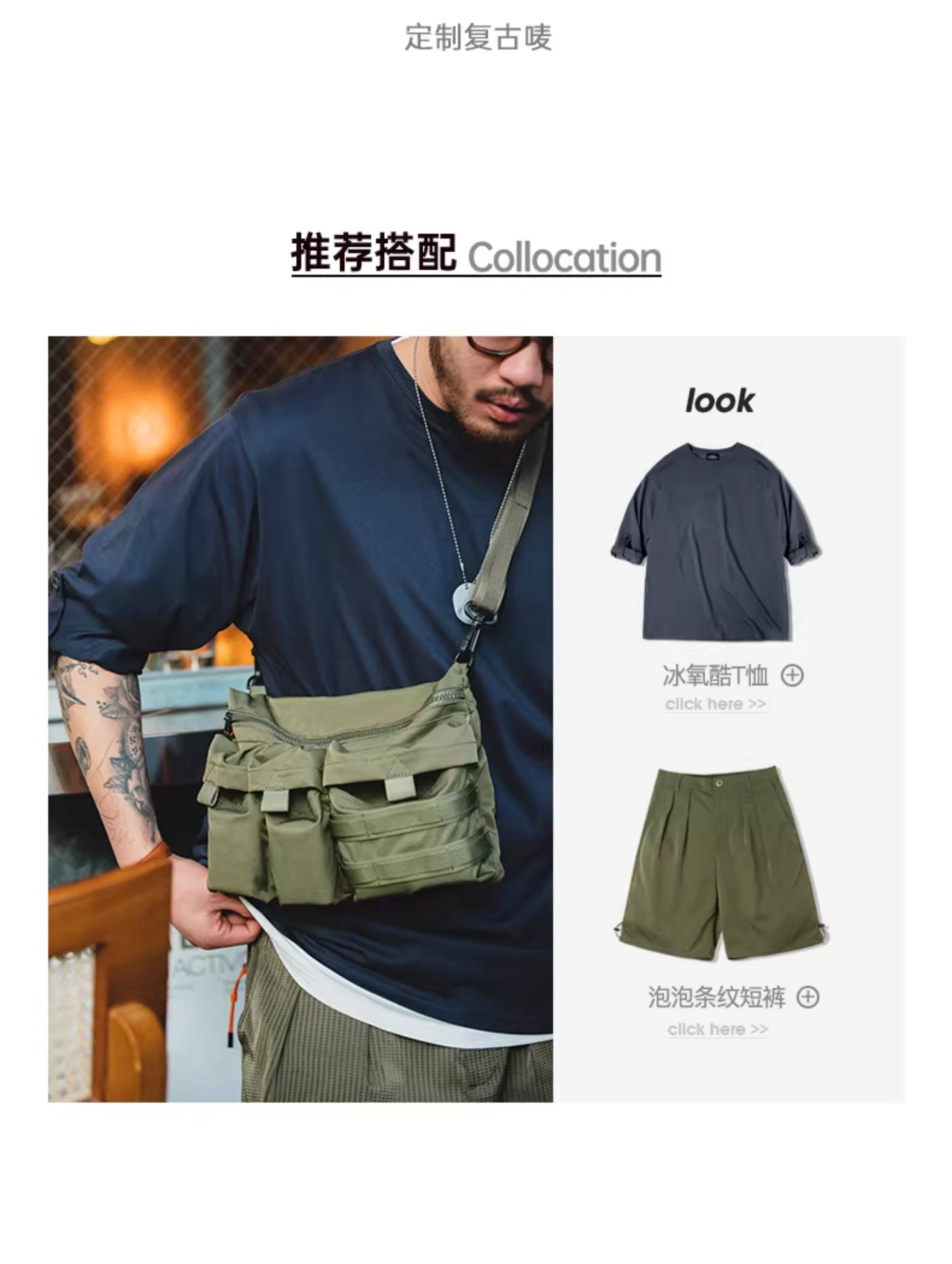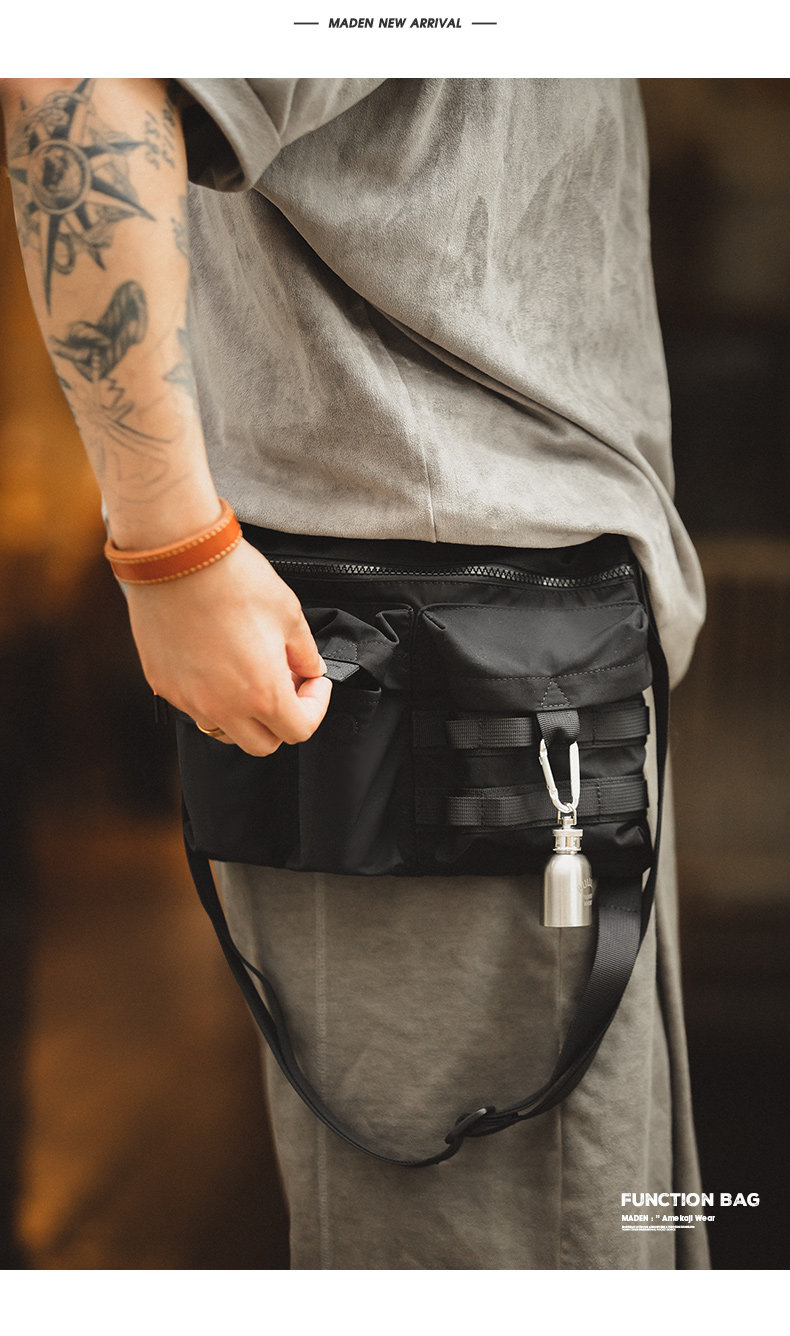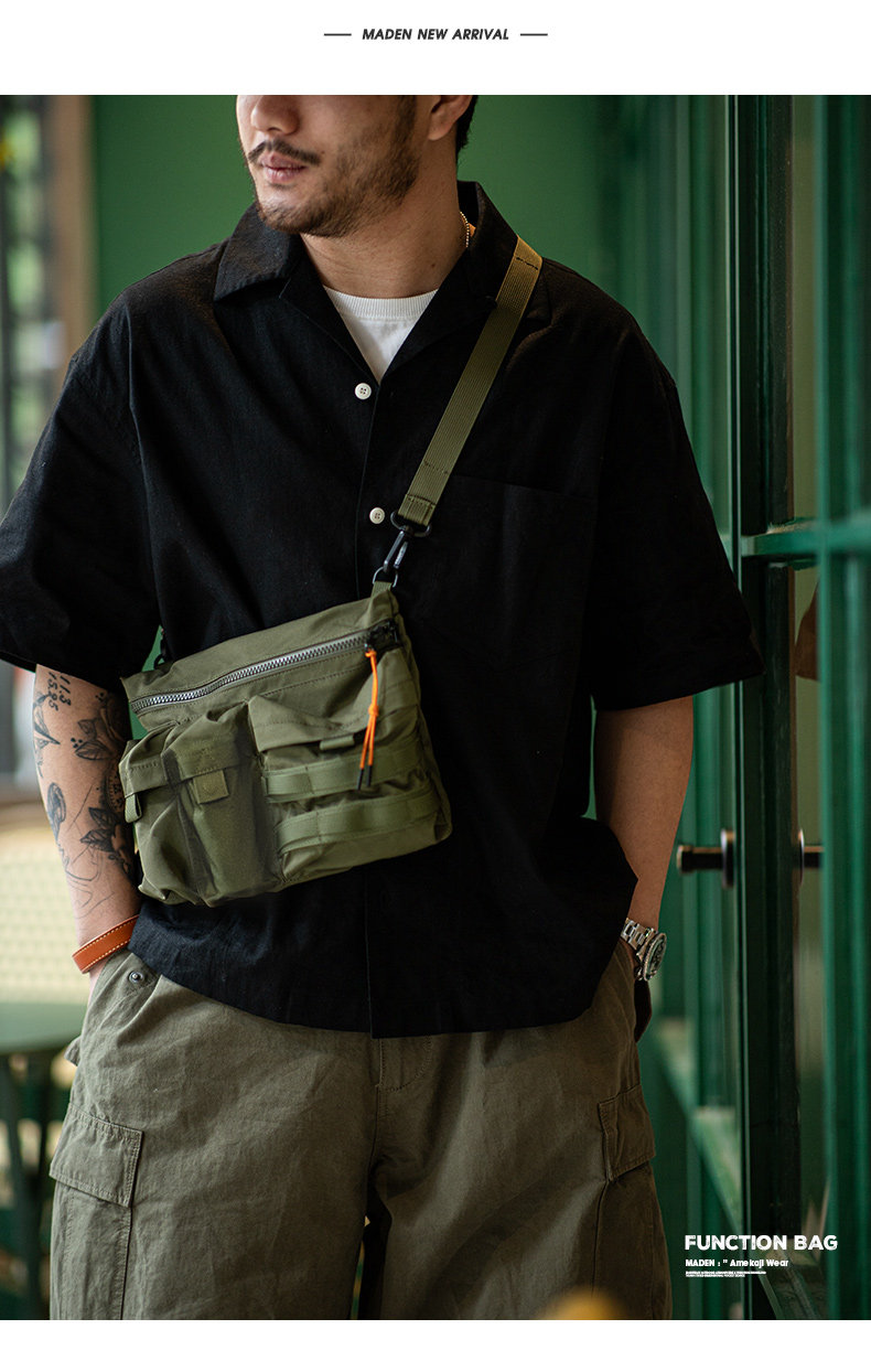 馬登工裝美式多口袋機能單肩郵差斜後後背包戶外山系腰包側肩男後後背包小