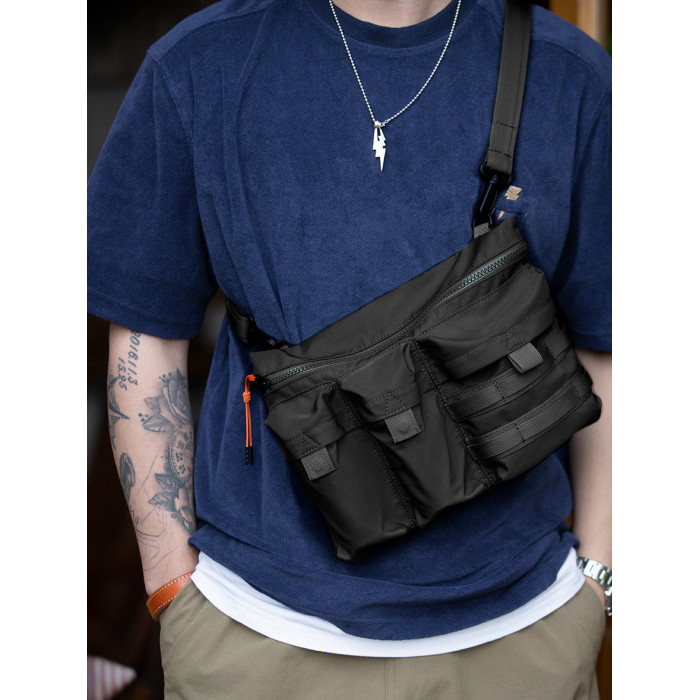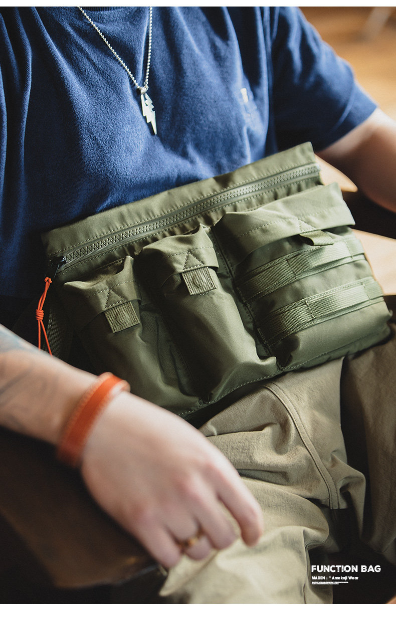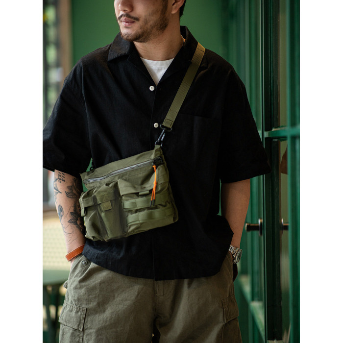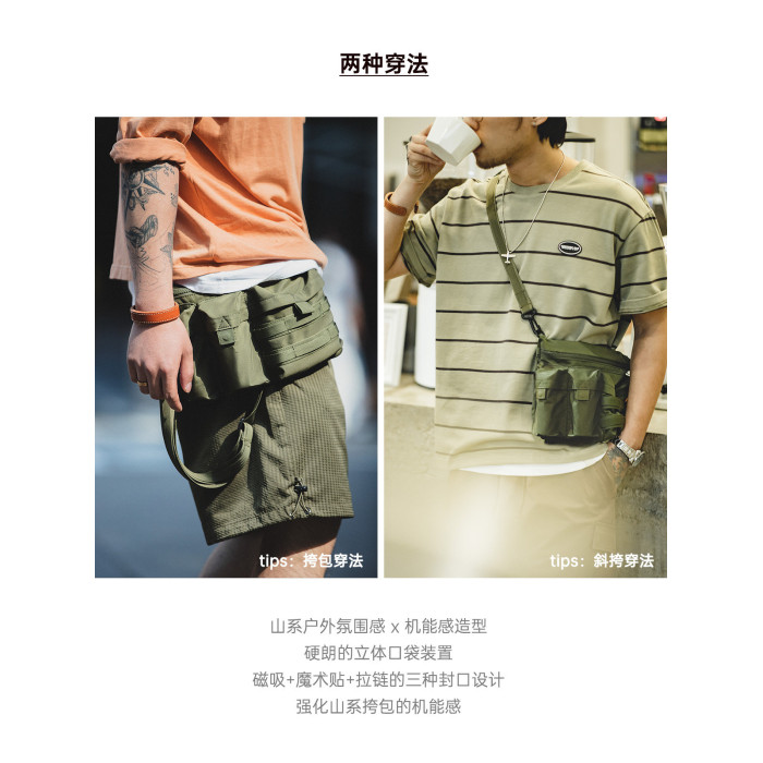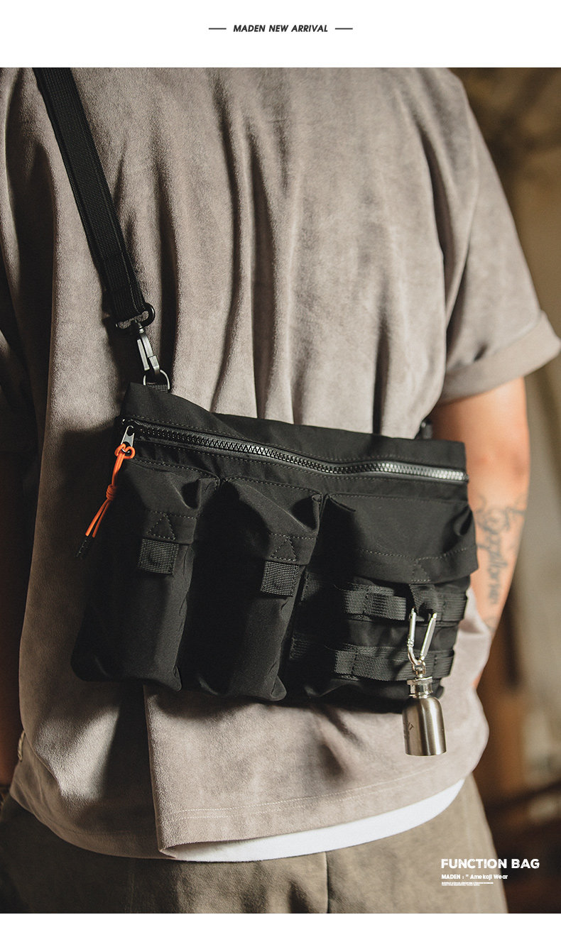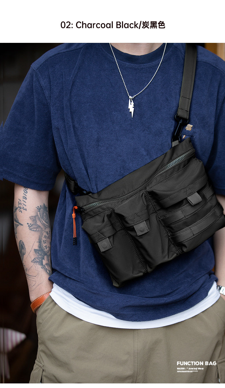 馬登工裝美式多口袋機能單肩郵差斜後後背包戶外山系腰包側肩男後後背包小