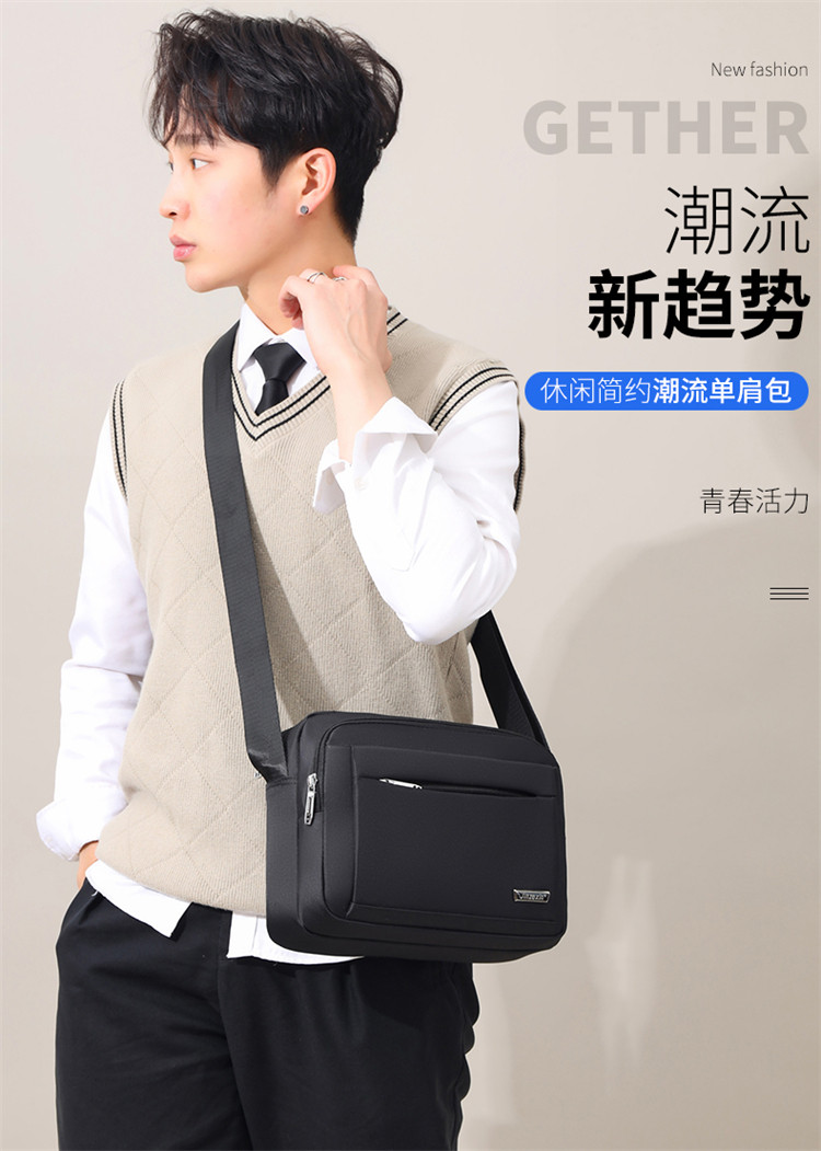 男包男士單肩包斜後後背包防水牛津布包橫款休閒布包做生意包收錢包