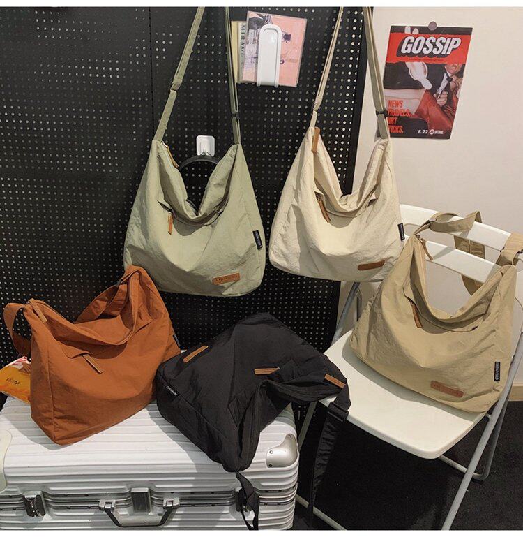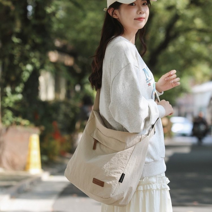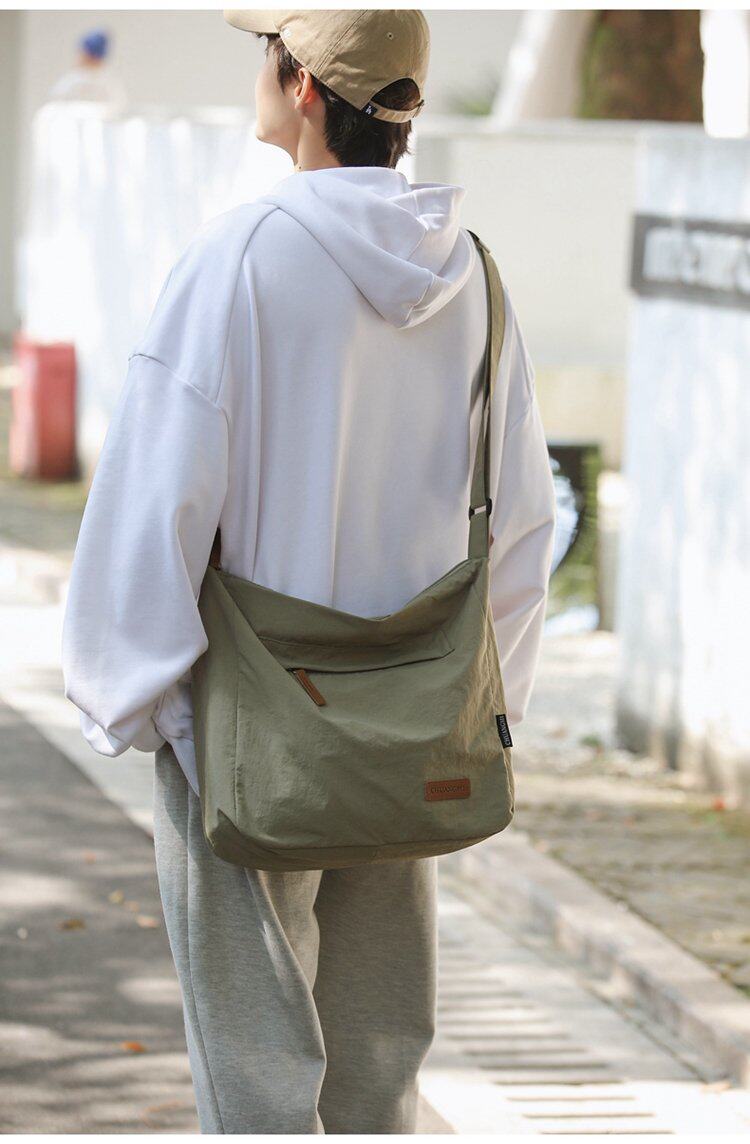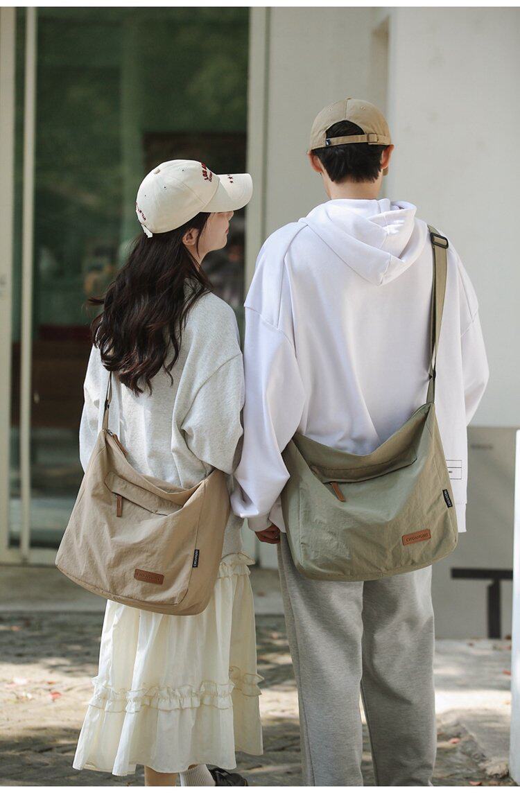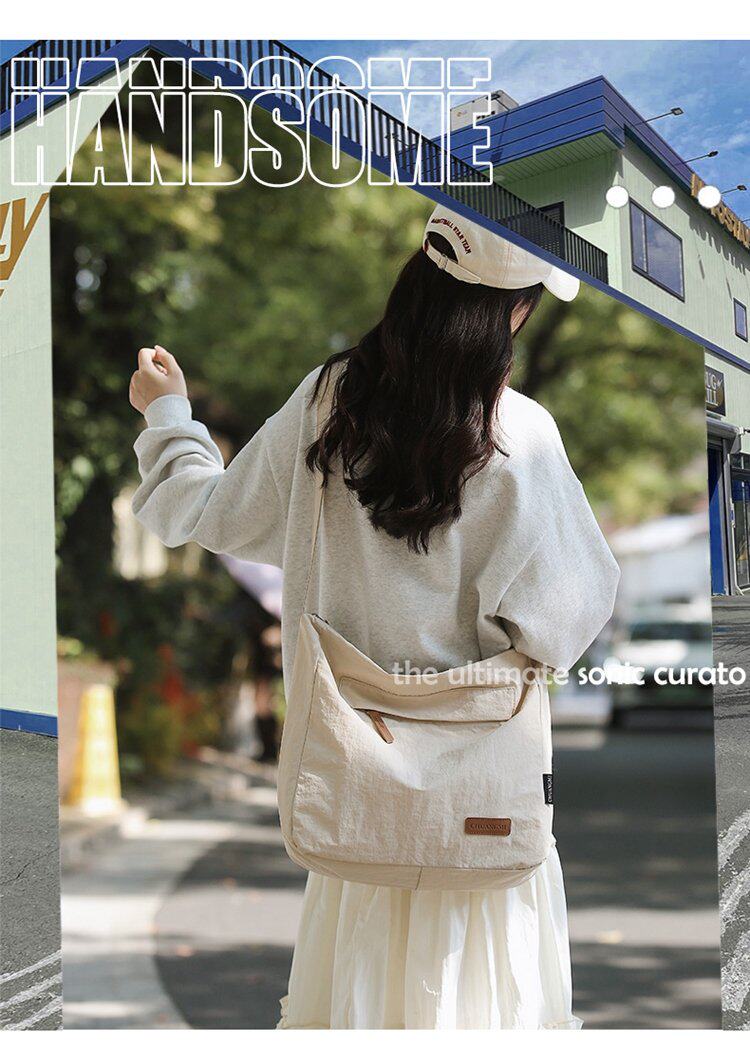 大容量日系斜後後背包防潑水尼龍布郵差包休閒大學生單肩包純色托特包