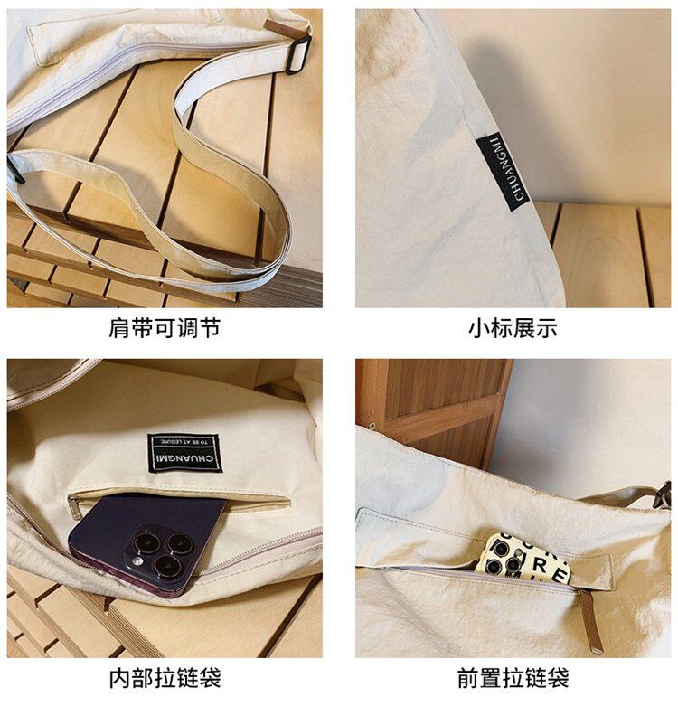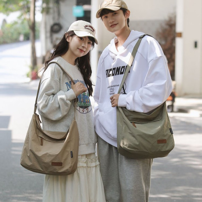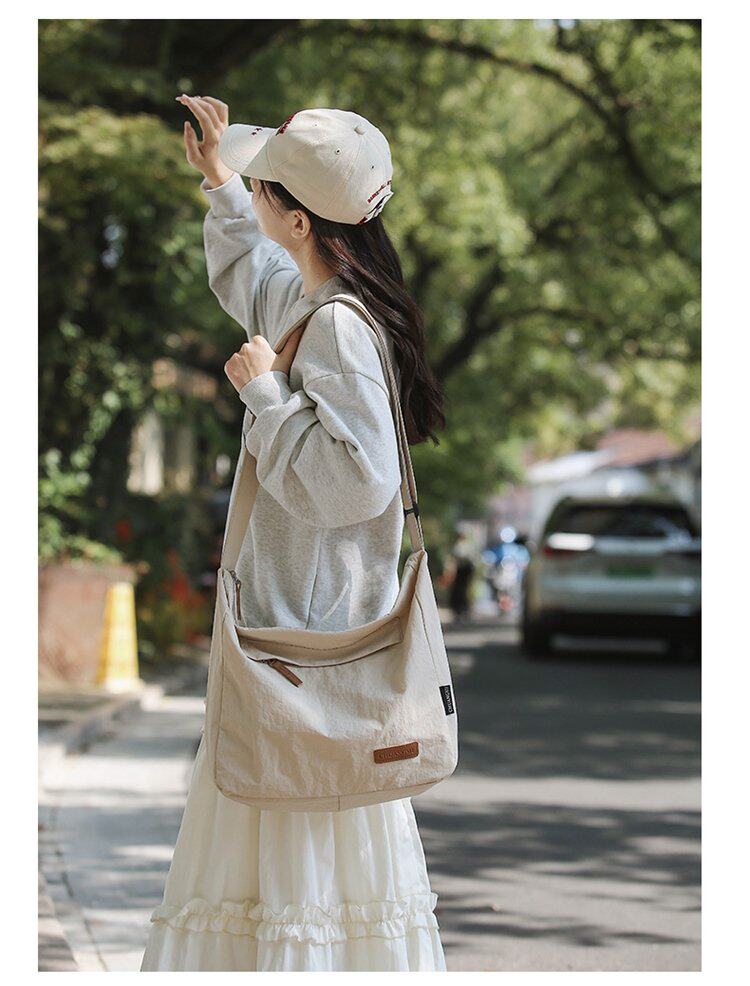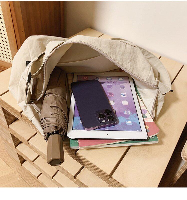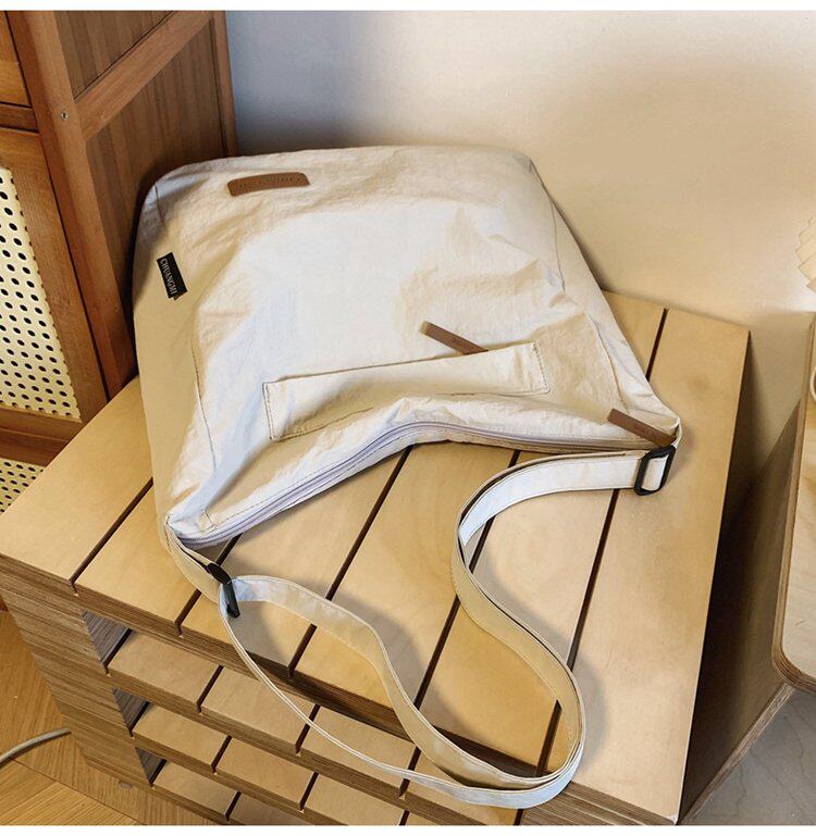大容量日系斜後後背包防潑水尼龍布郵差包休閒大學生單肩包純色托特包