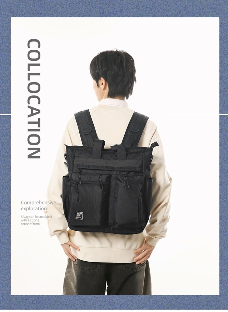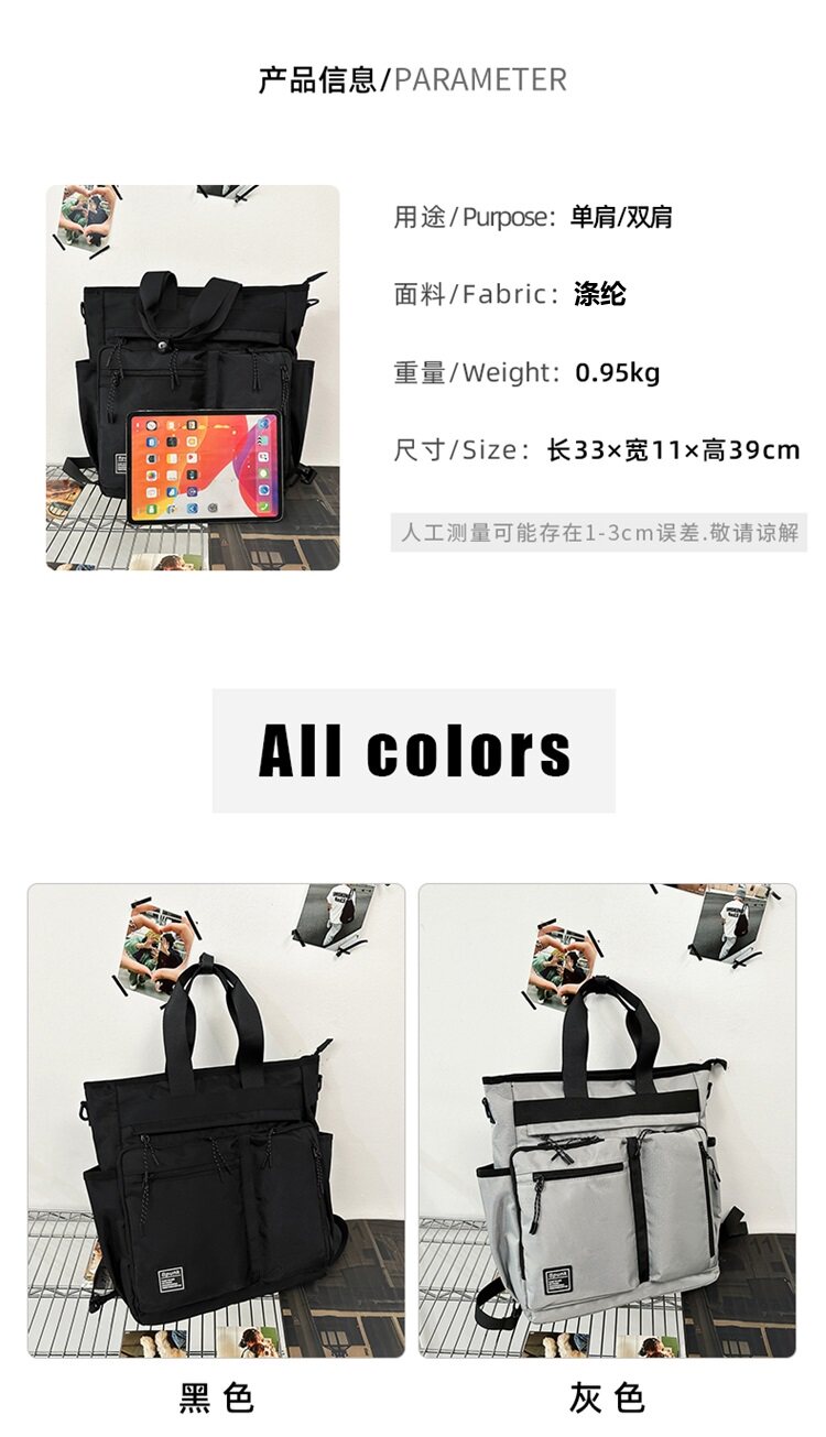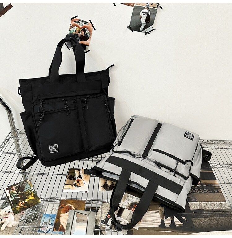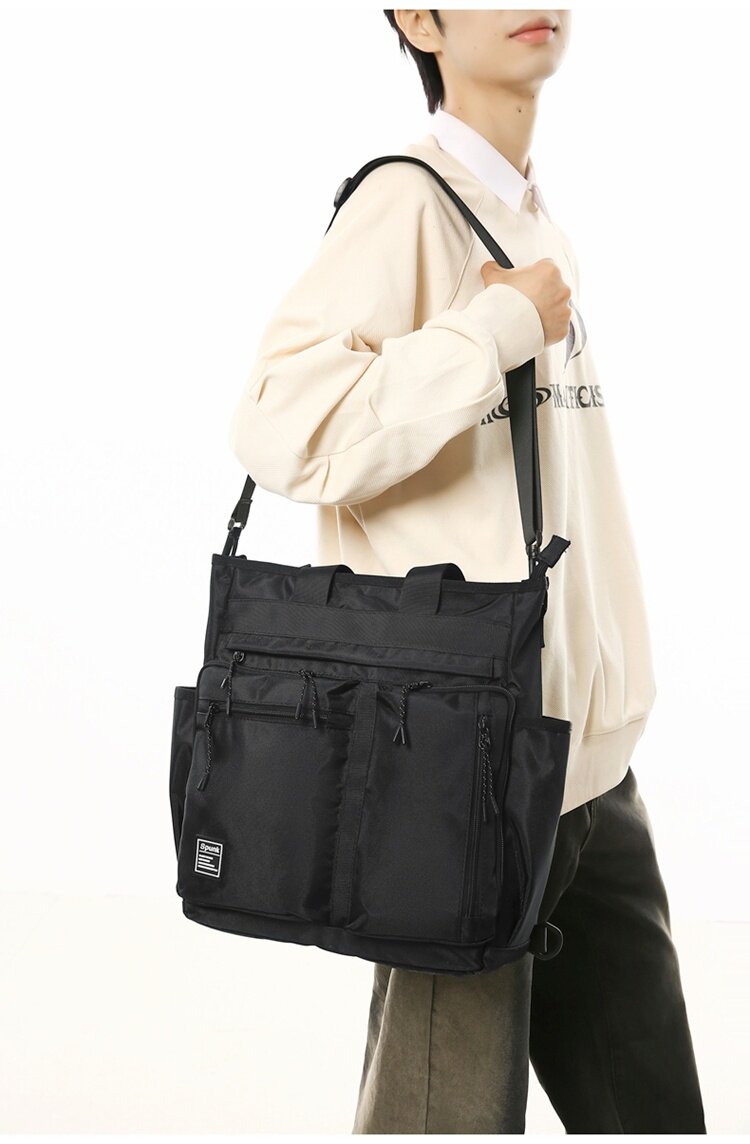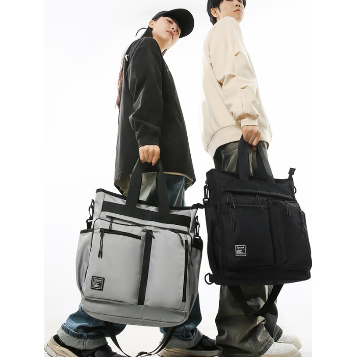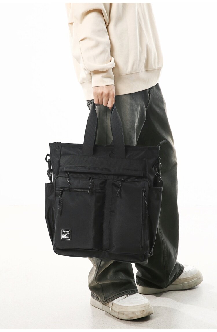 工裝潮牌手提包男生學生補課包手拎補習袋多用雙肩包大容量斜後後背包
