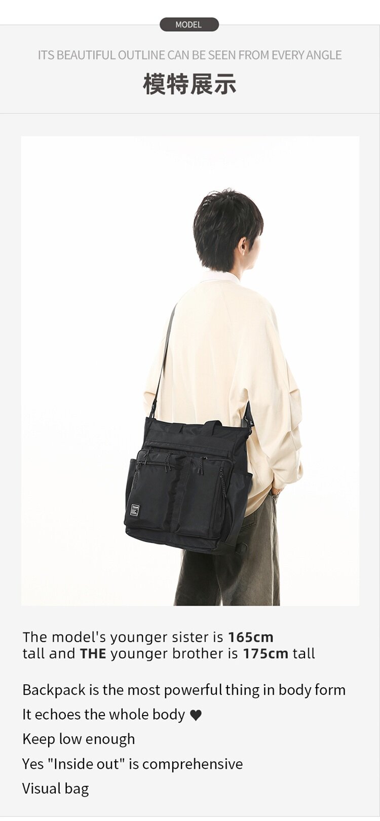 | 後後背包方式 | 單肩斜背雙肩 |