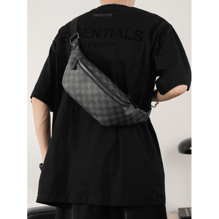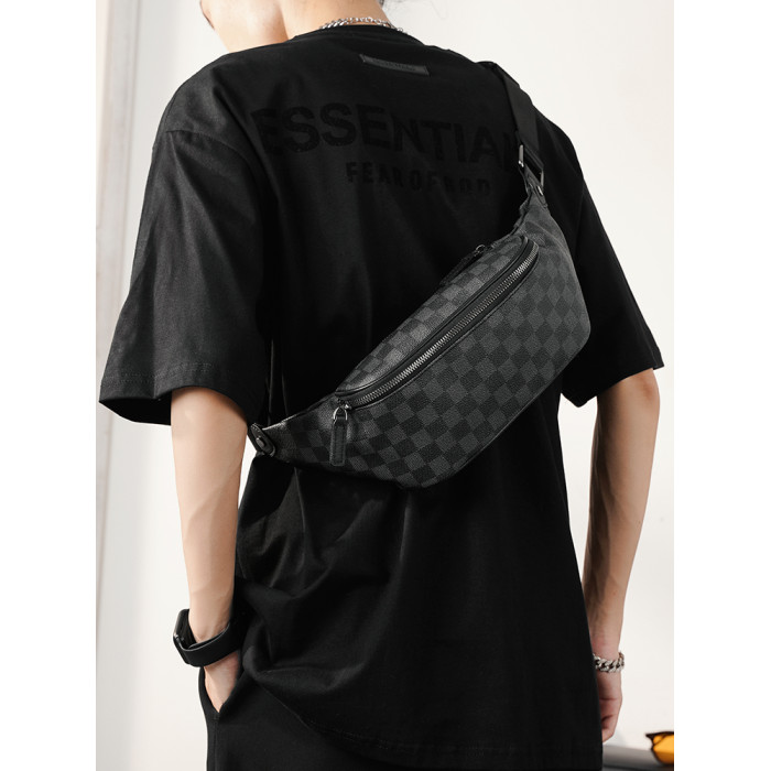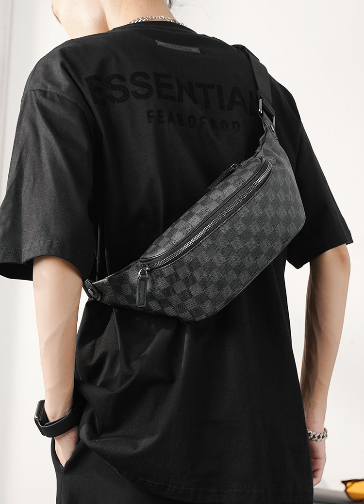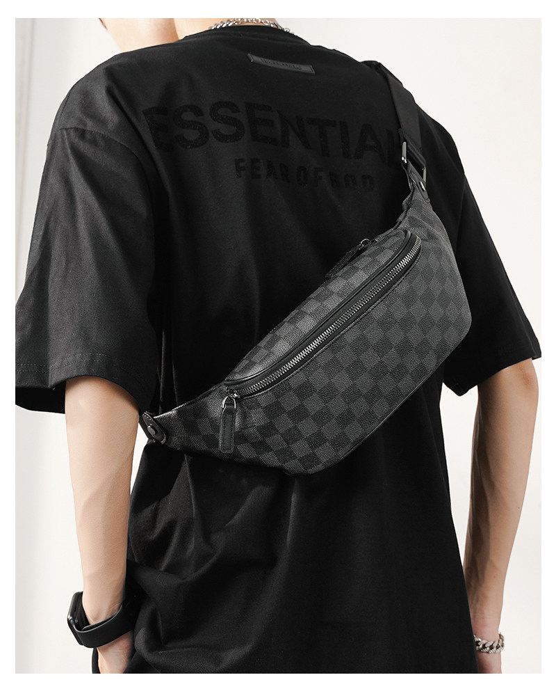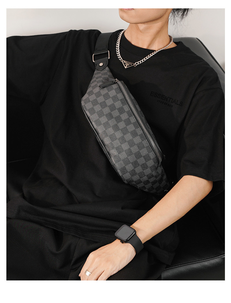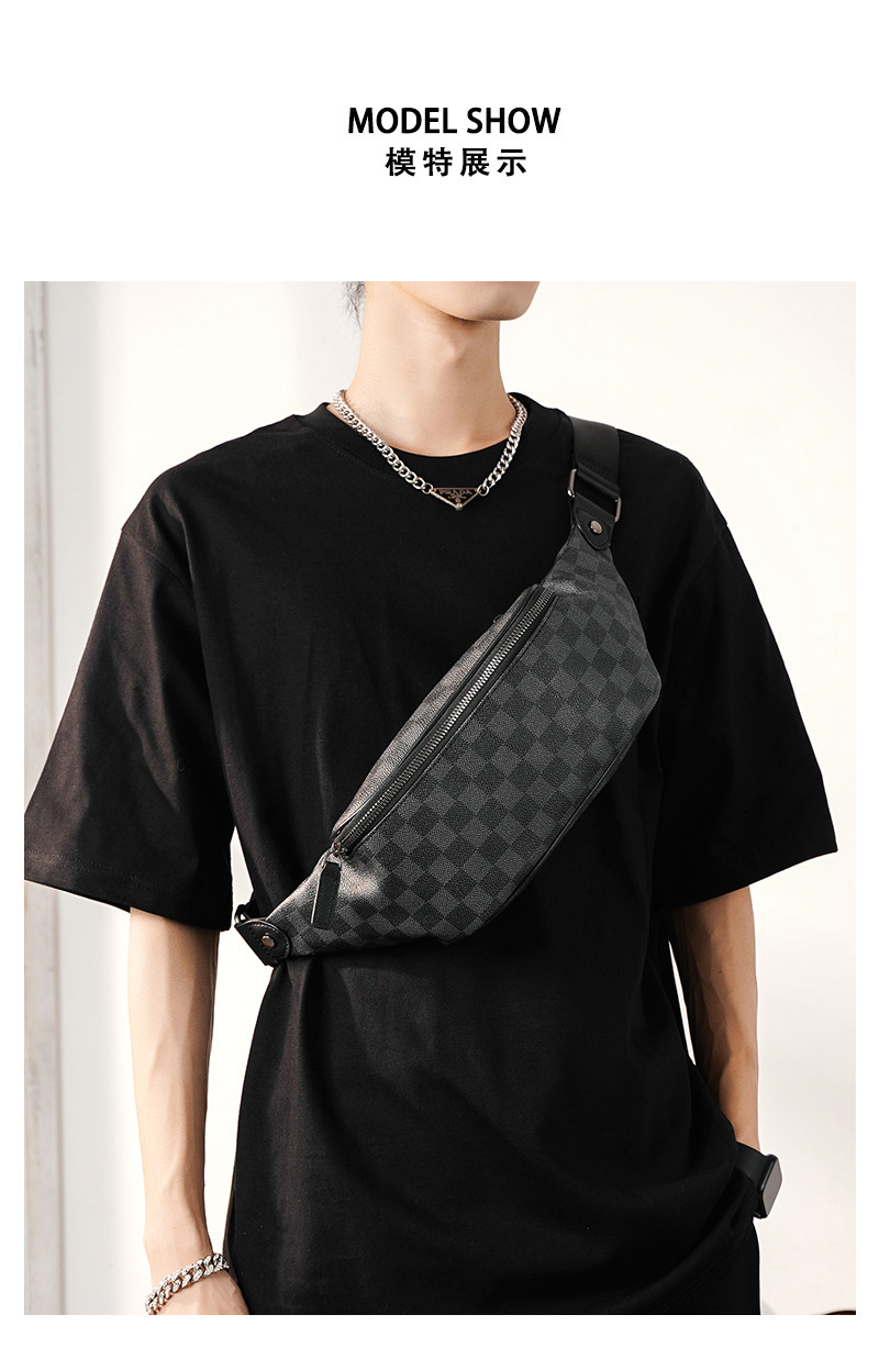 2026新款格子胸包腰包 潮流時尚單肩包斜背小包商務休閒小挎包潮