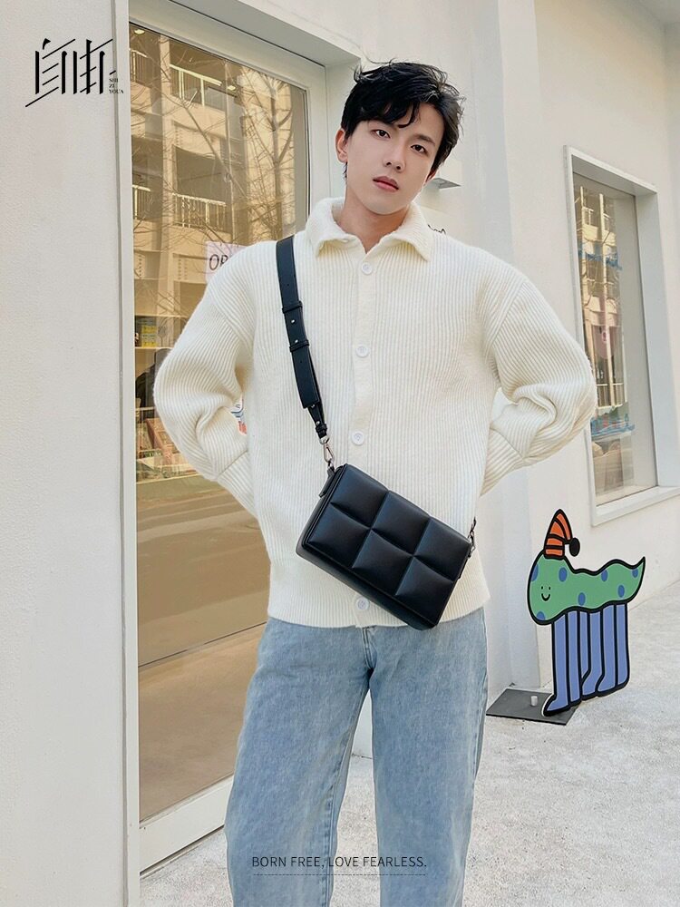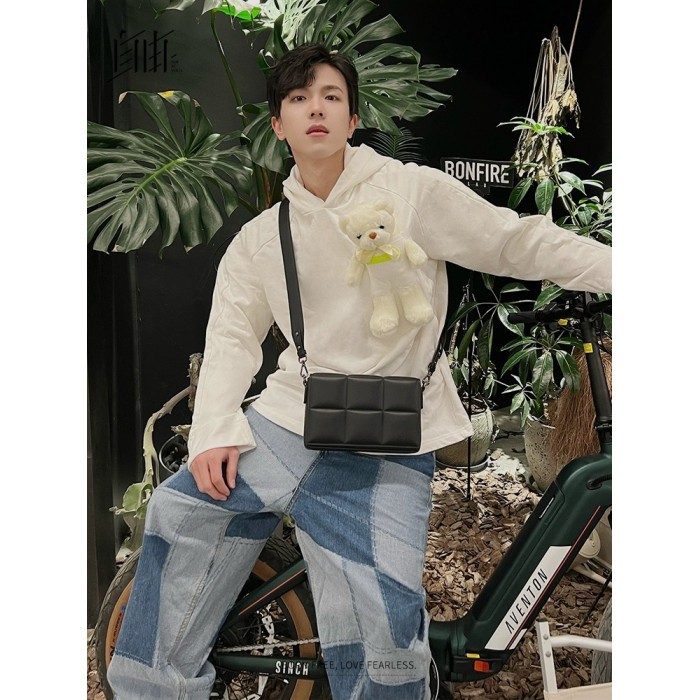 2025新款潮牌輕奢格子商務休閒男包單肩斜後後背包時尚巧克力盒子女包
