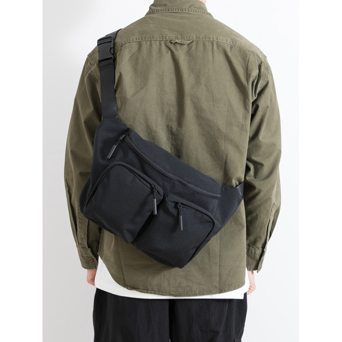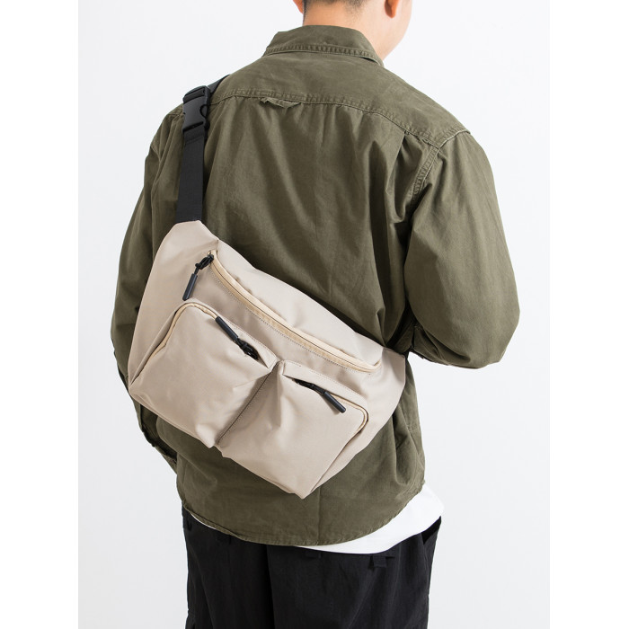 男士帆布斜後後背包運動時尚單肩包多功能工裝風大容量胸包簡約騎行包
