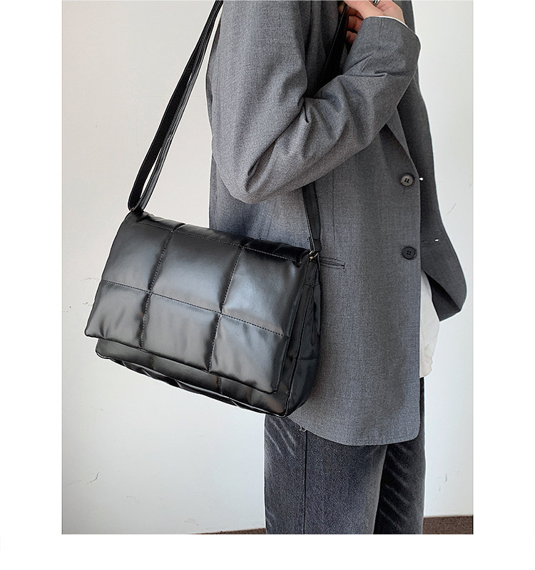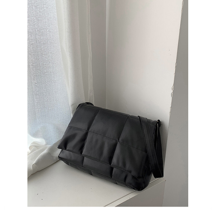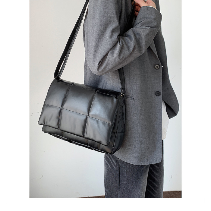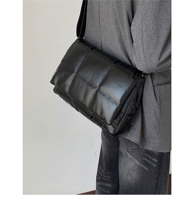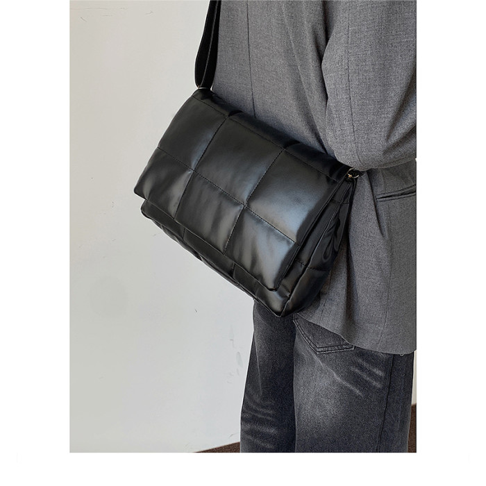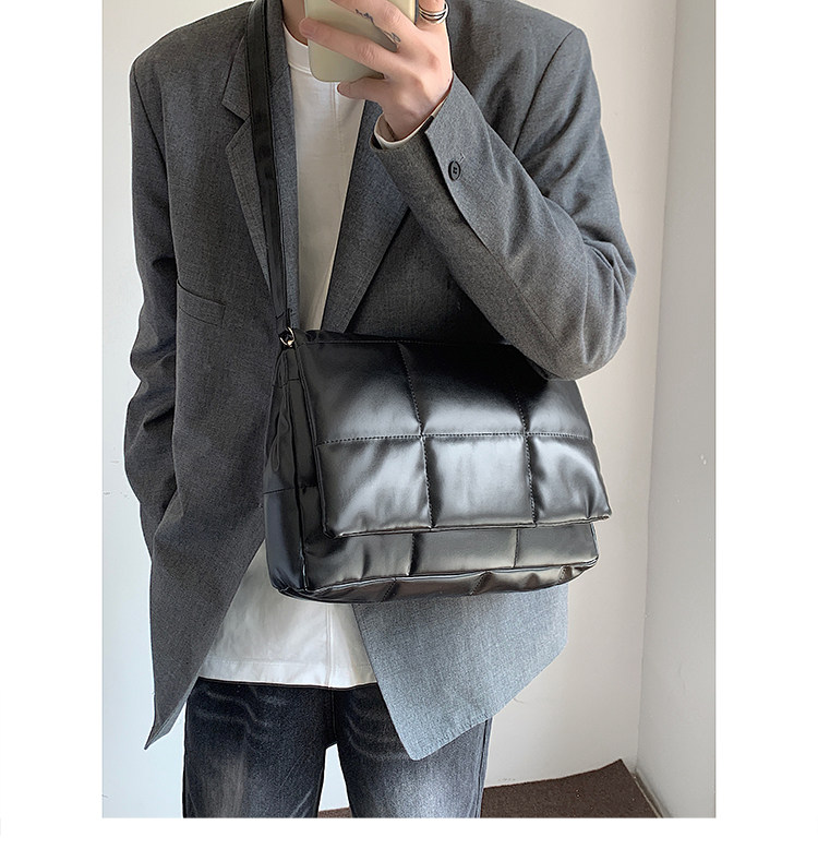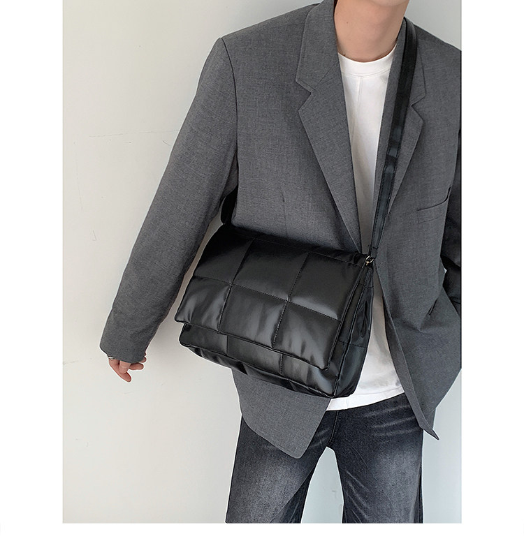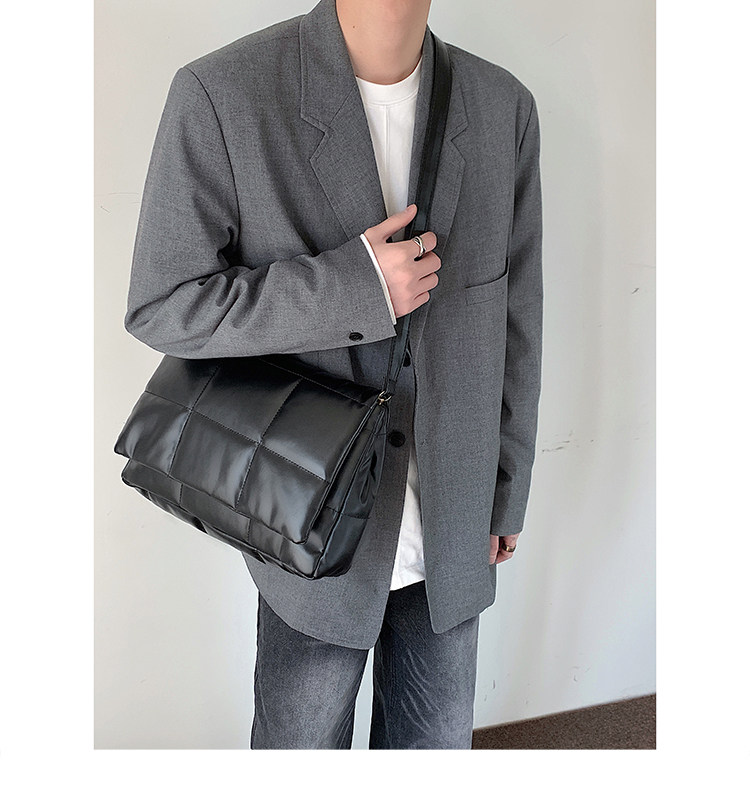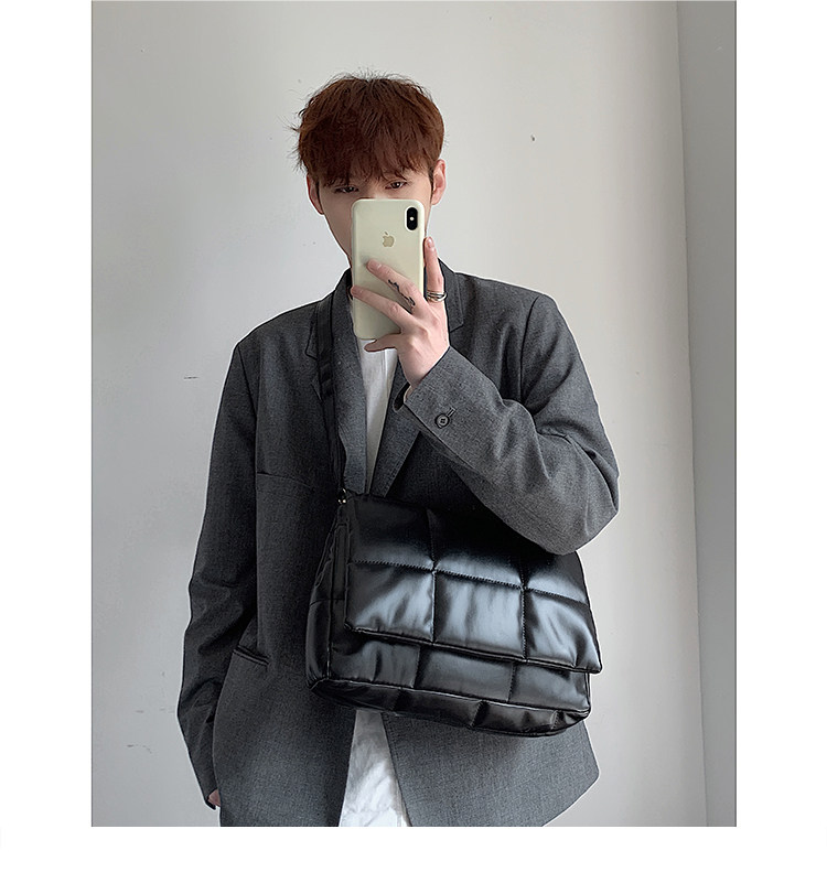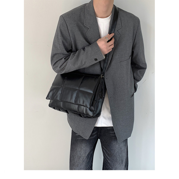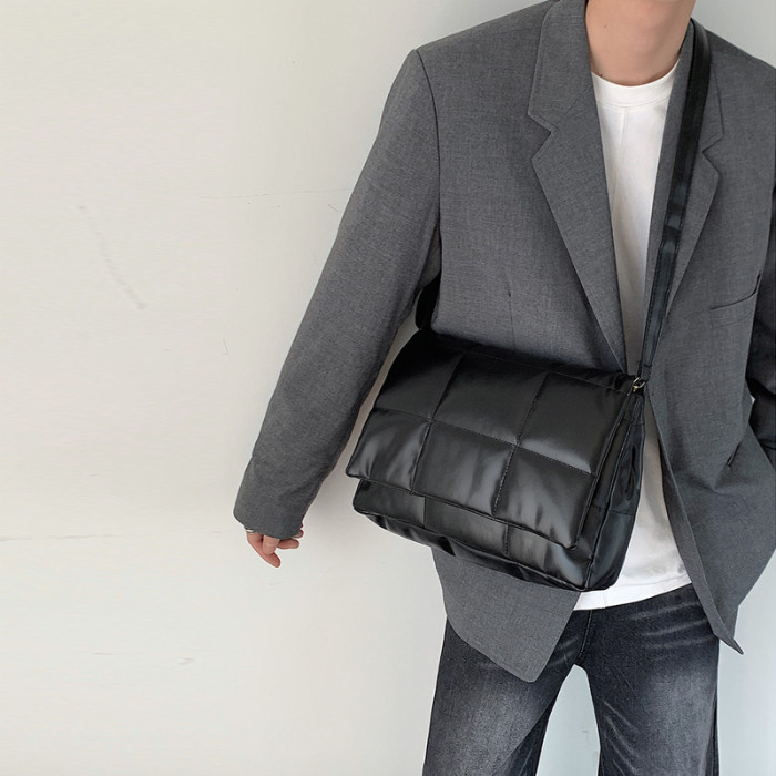 小衆風絲綿填充皮面斜後後背包ins風男潮流大容量郵差包韓版單肩潮包