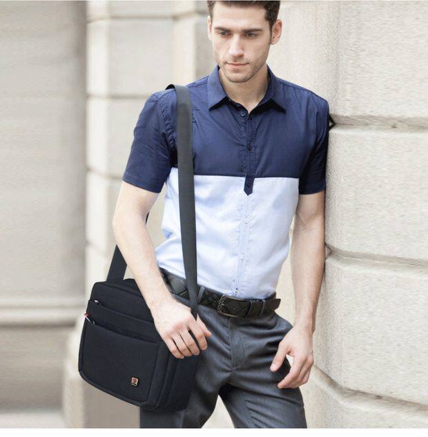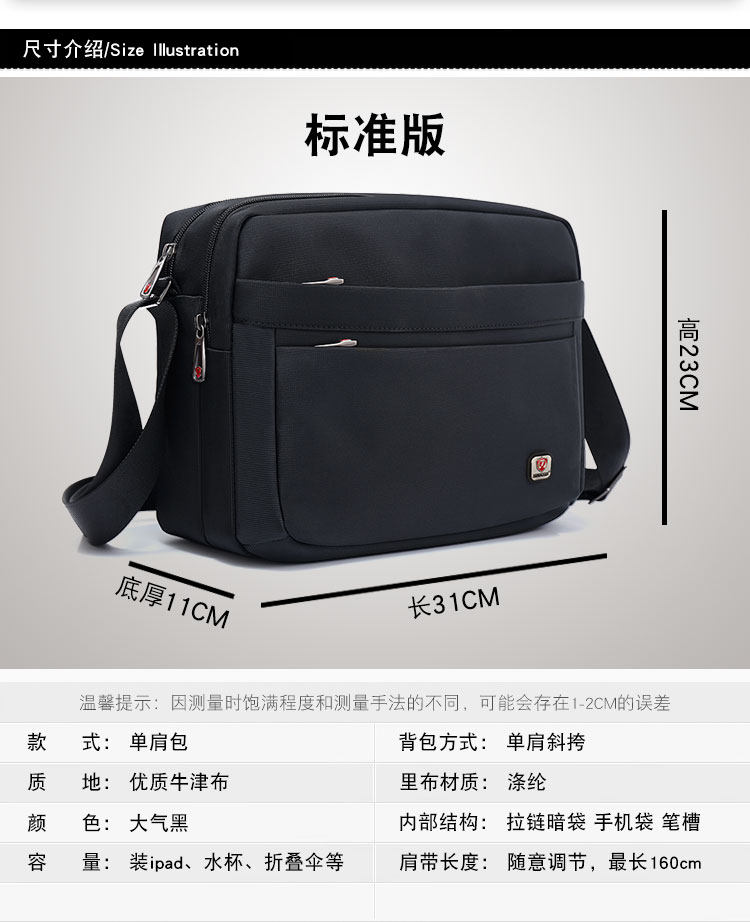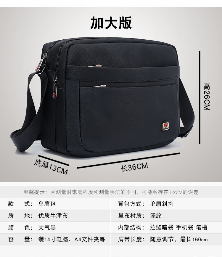 瑞士單肩包男包斜後後背包男士牛津紡書包休閒包防水商務公文包後後背包大