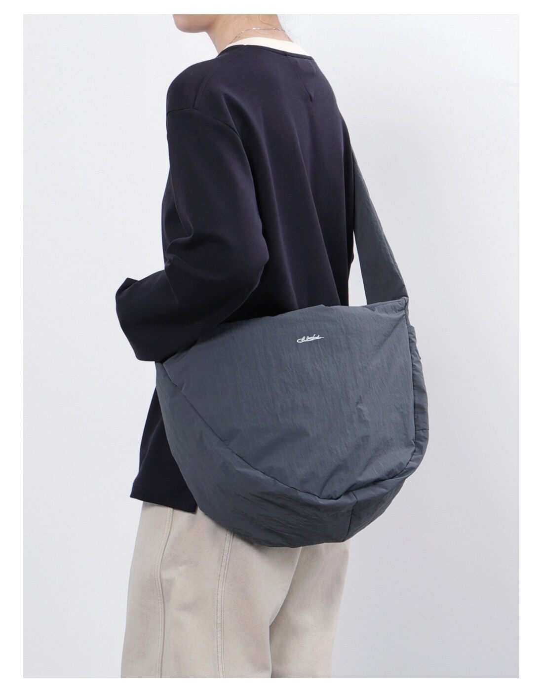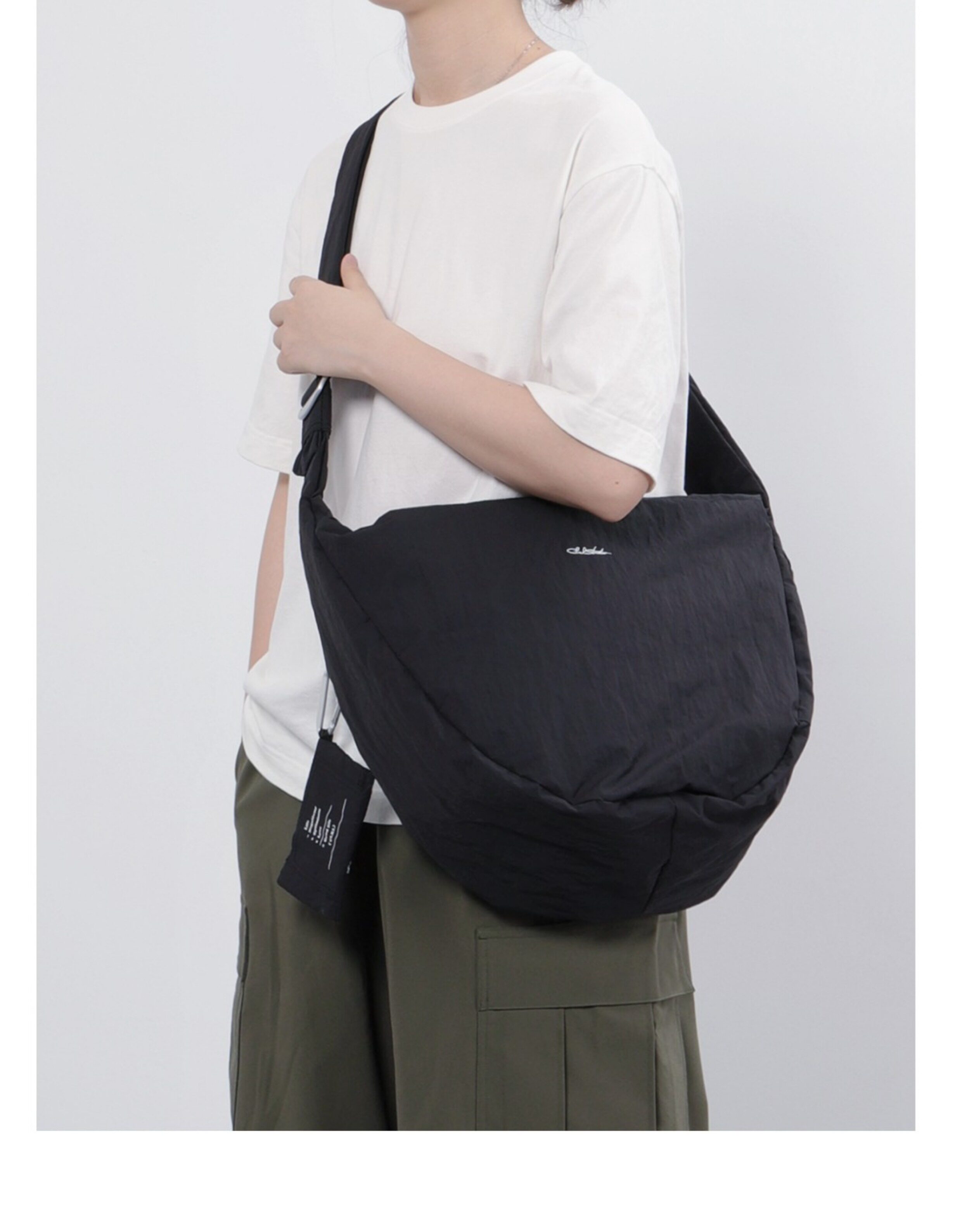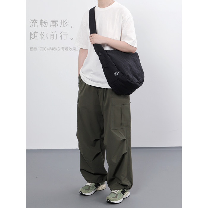 CLXL Studio斜背流浪包輕便防水通勤百搭皺感尼龍包餃子包大容量