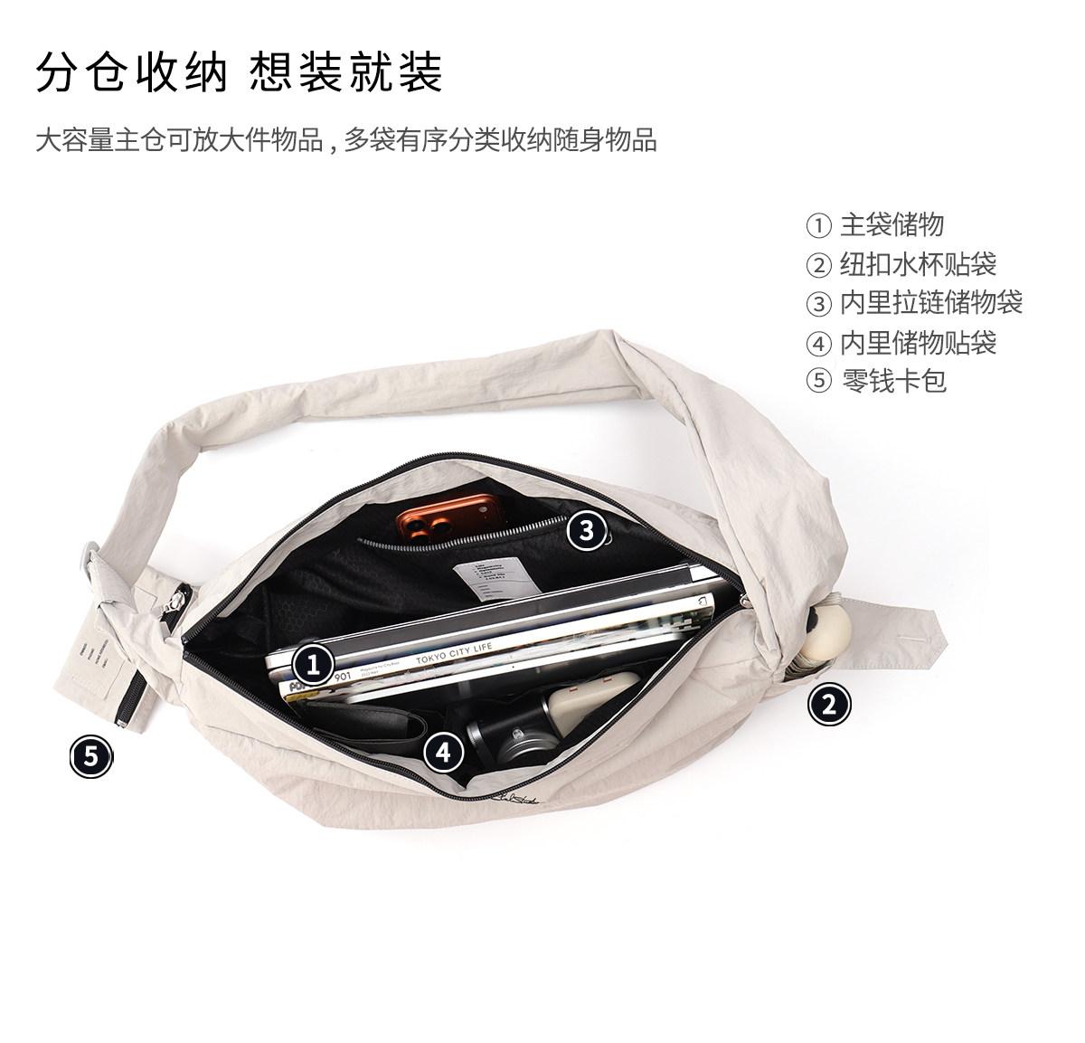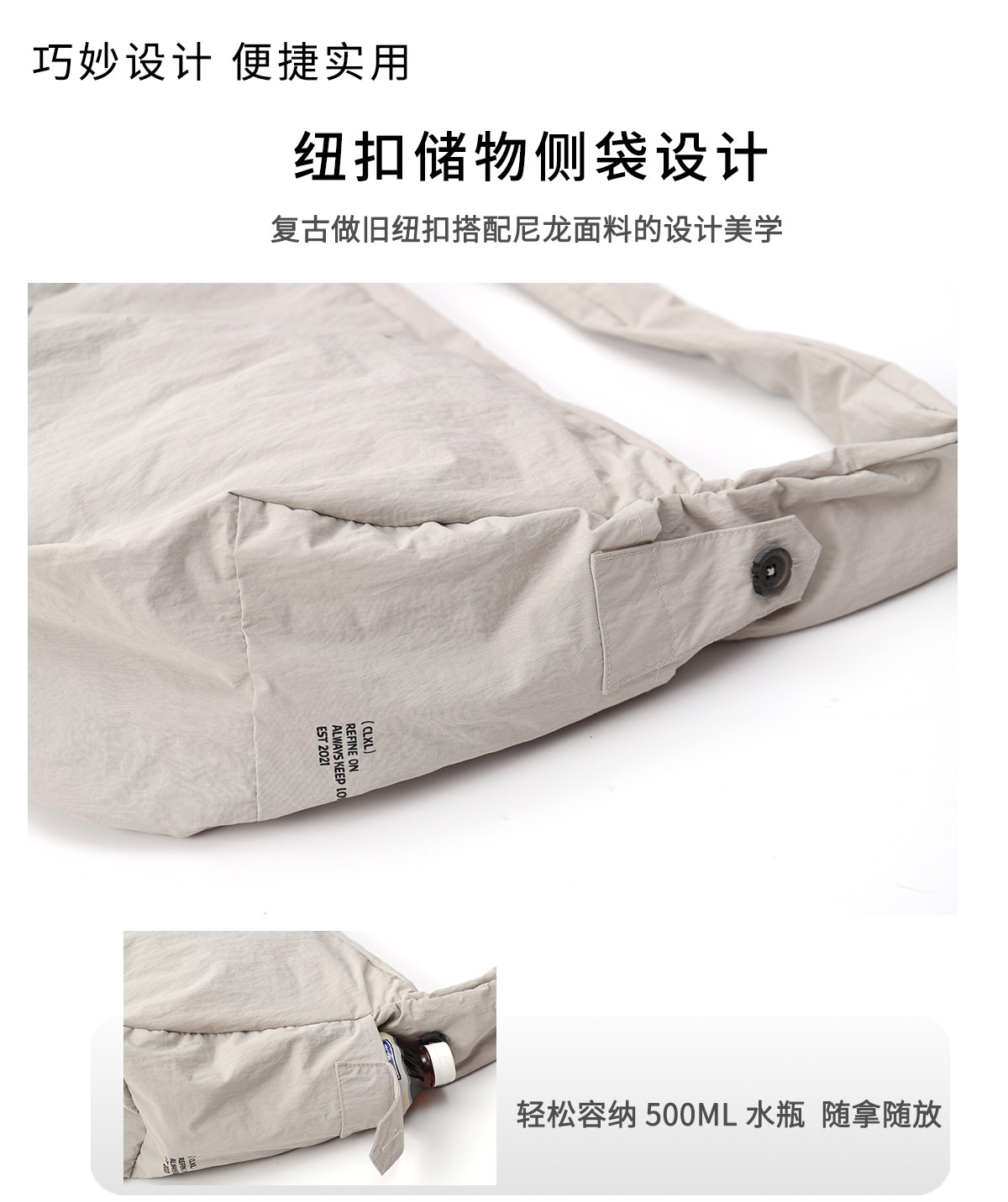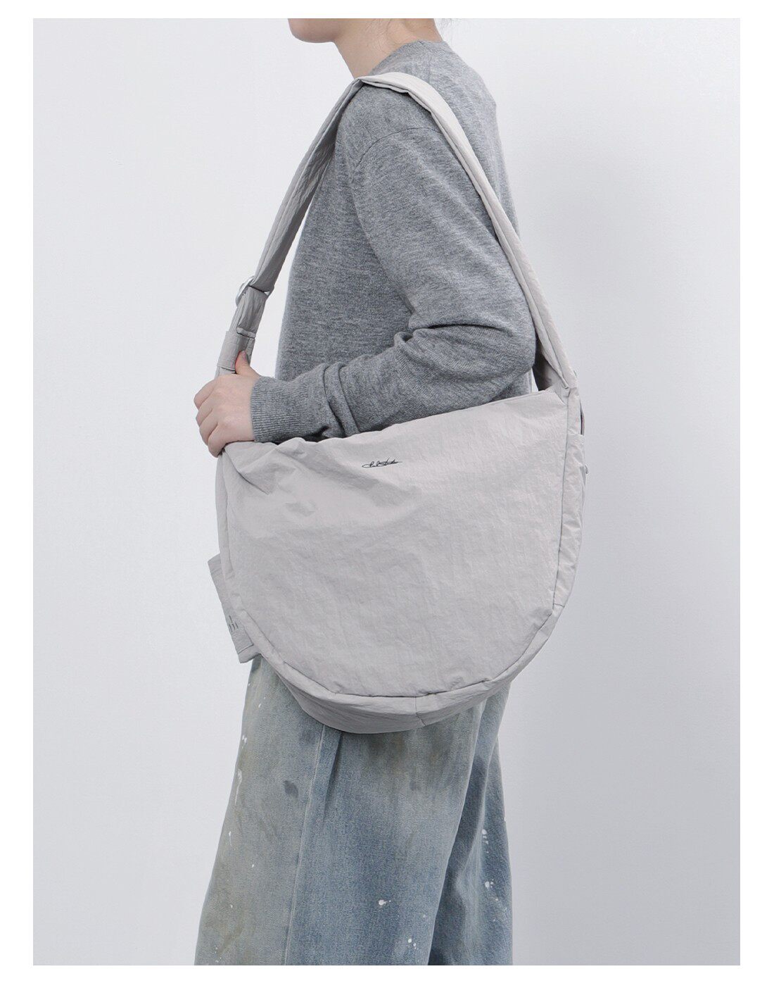 CLXL Studio斜背流浪包輕便防水通勤百搭皺感尼龍包餃子包大容量