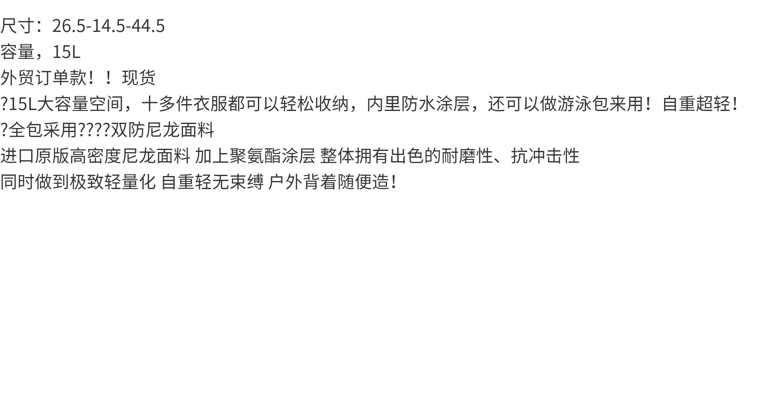 單美山戶外輕便防水雙肩包男女通用旅行登山包15升折曡包