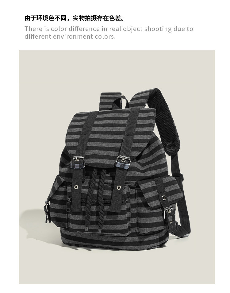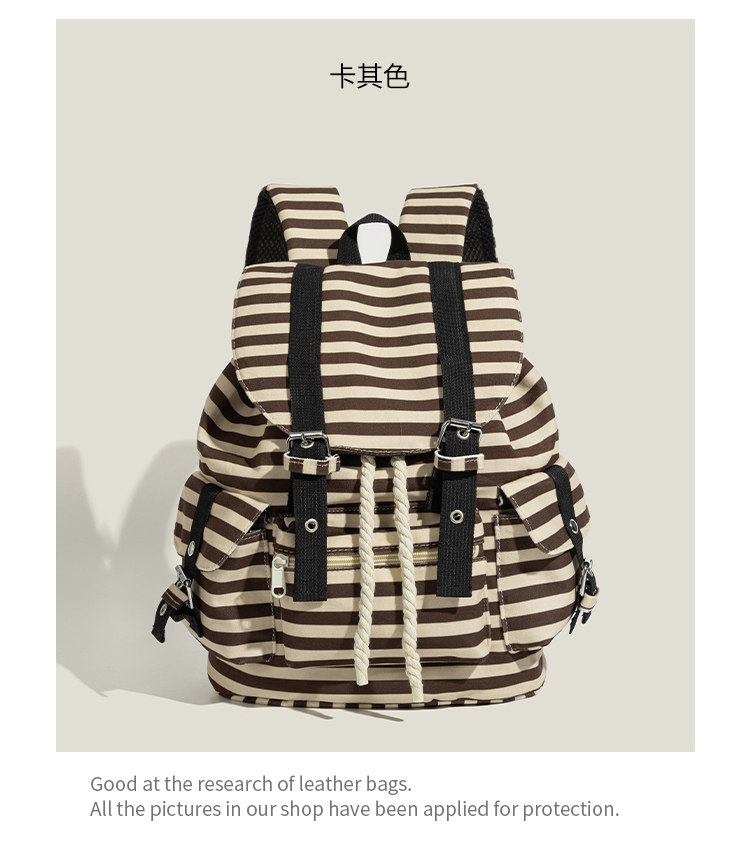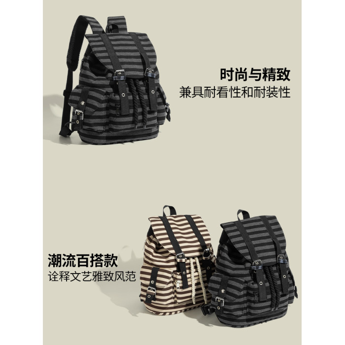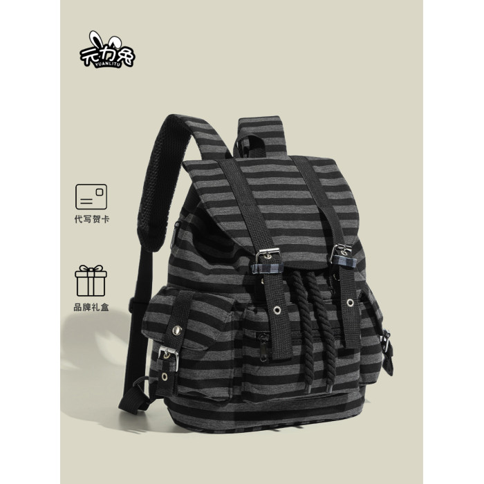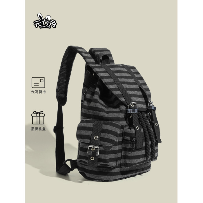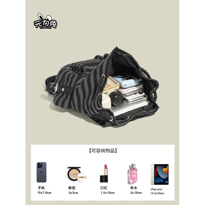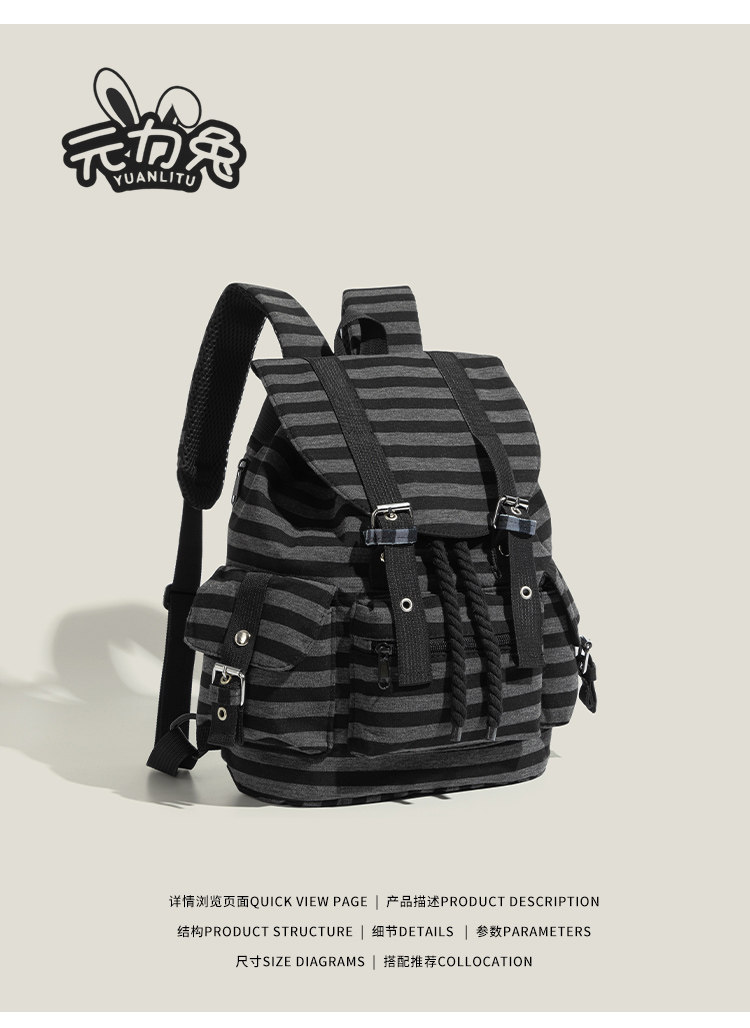 元力兔韓系條紋大容量雙肩包2026新款Newjeans同款抽繩登山包後後背包