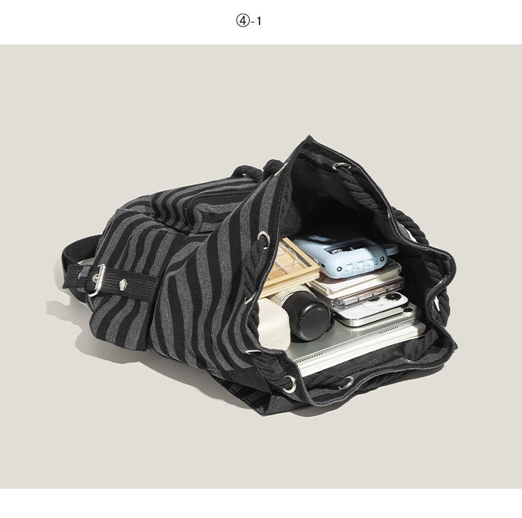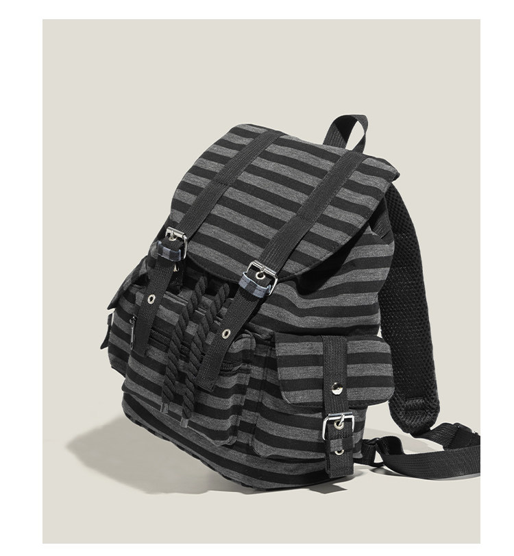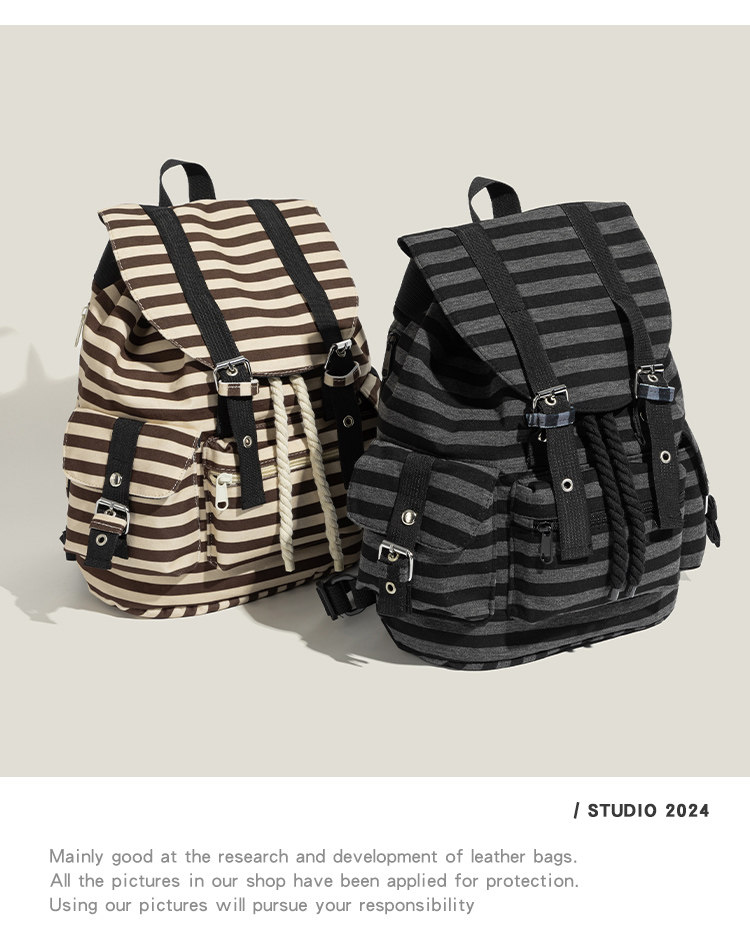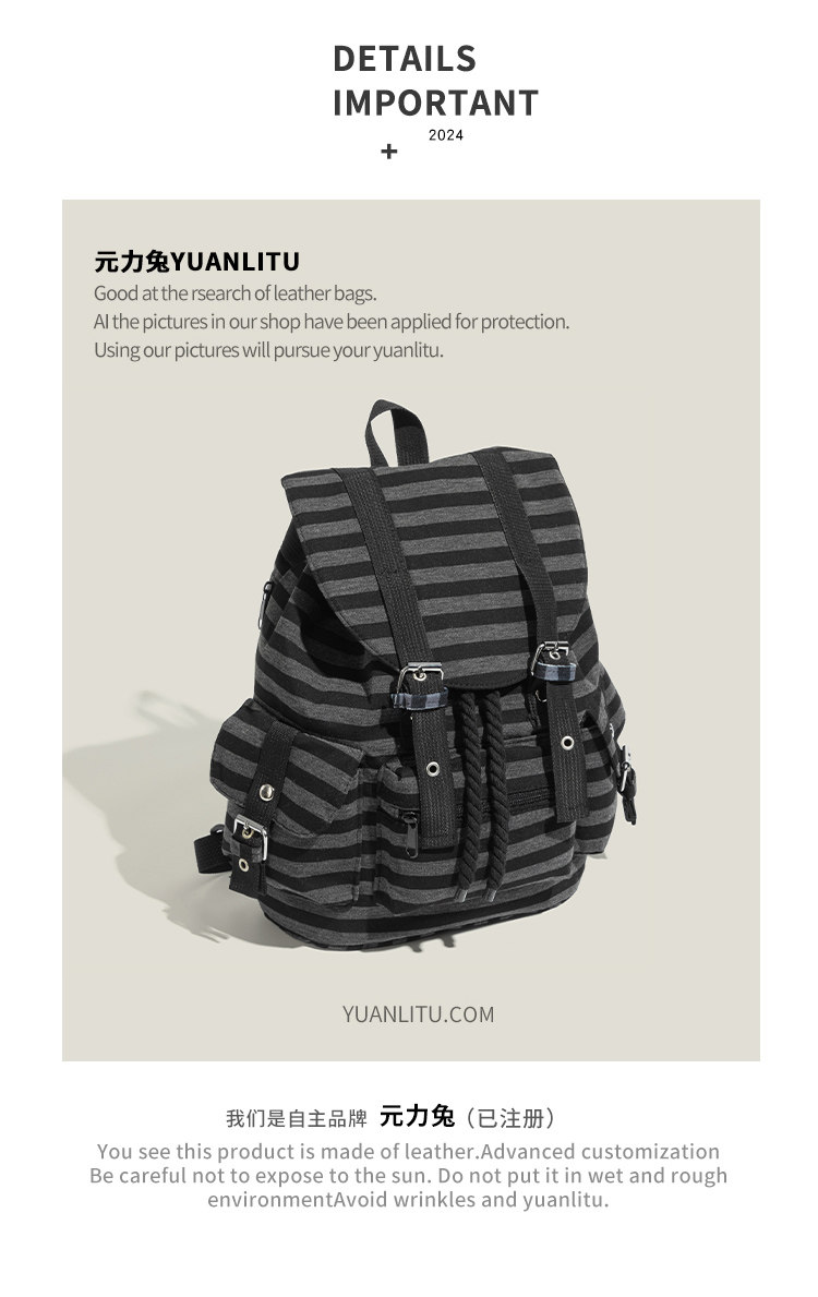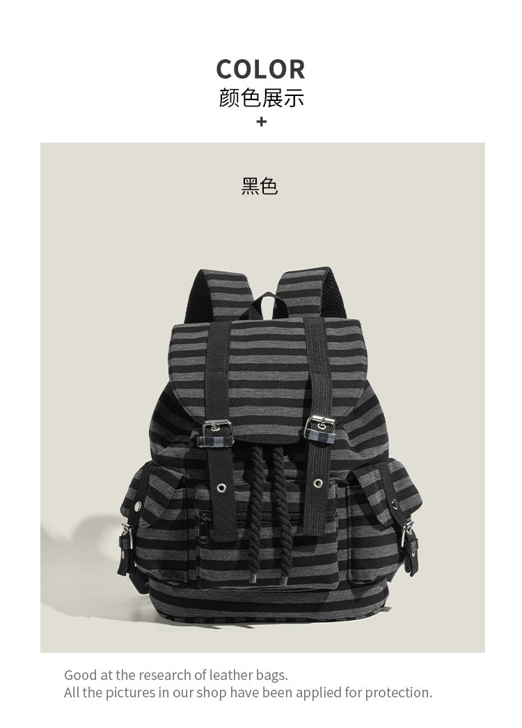 元力兔韓系條紋大容量雙肩包2026新款Newjeans同款抽繩登山包後後背包