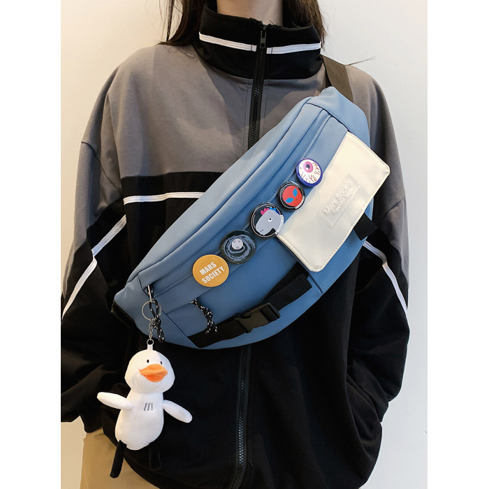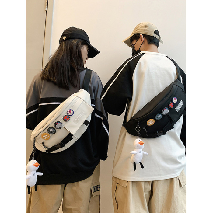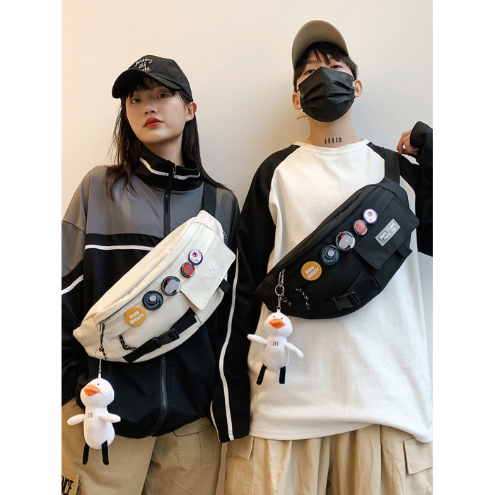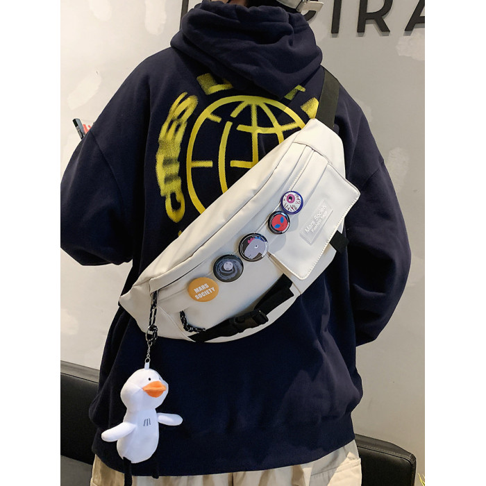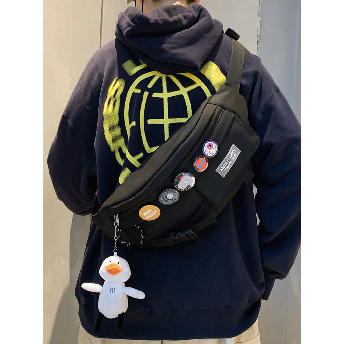 潮牌斜後後背包男士休閒日系小後後背包胸包斜背女單肩包男潮學生運動腰包