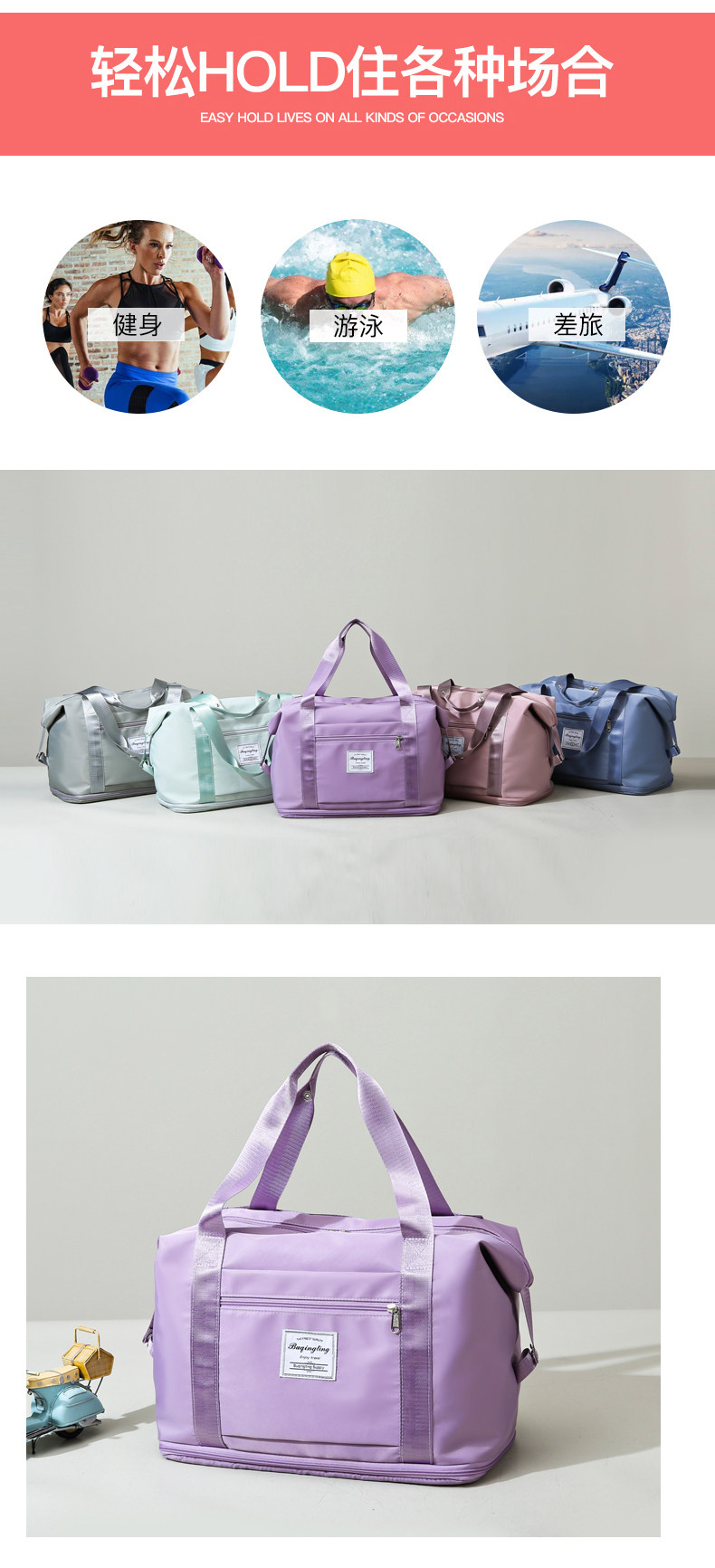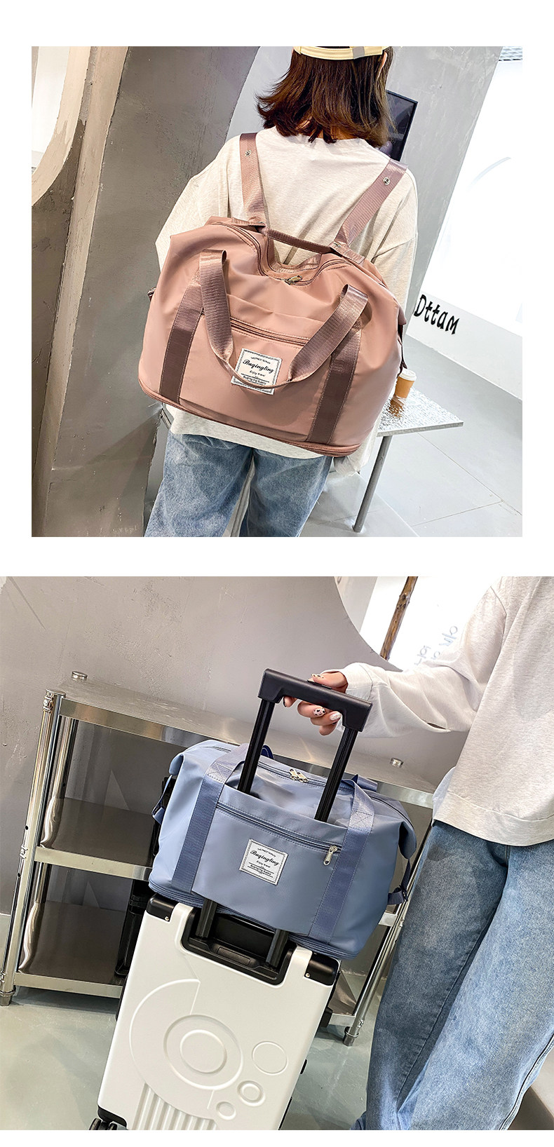 手提旅行包大容量女輕便待産包收納袋短途行李袋雙肩包可套拉桿箱