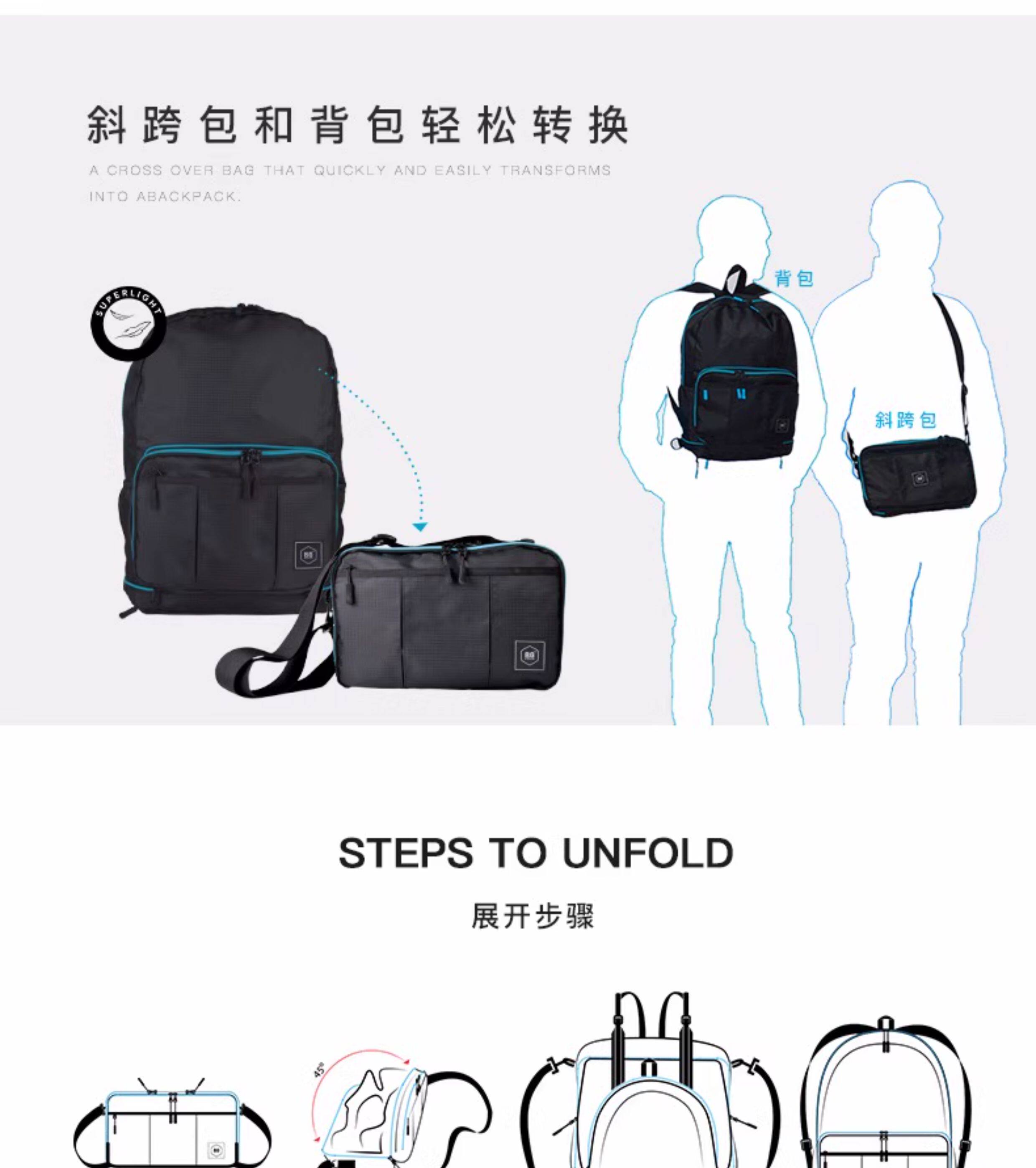 折曡兩用德國後後背包女斜背雙肩可攜式收納防水大容量輕便多功能旅行男