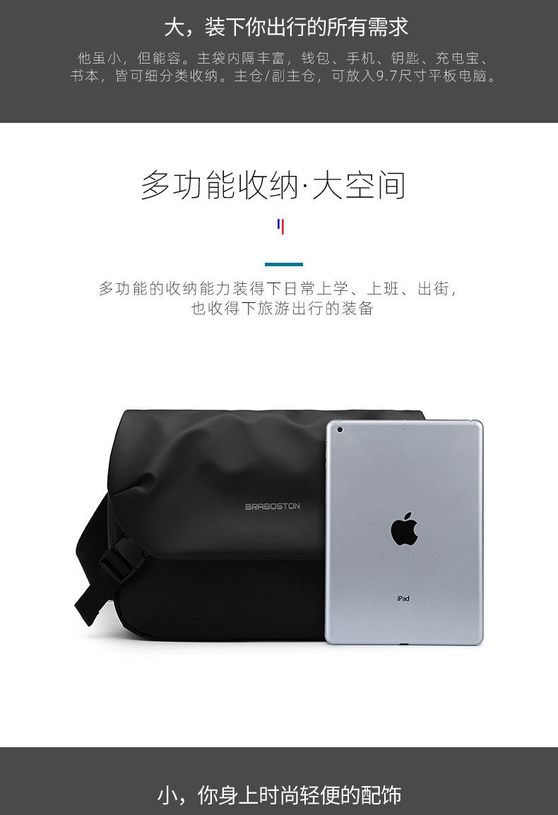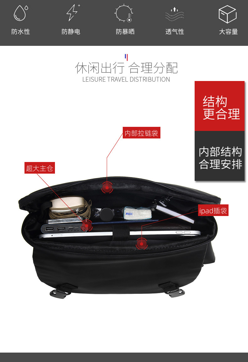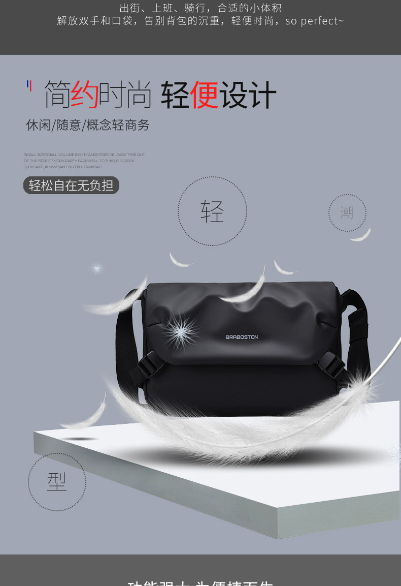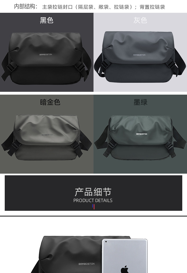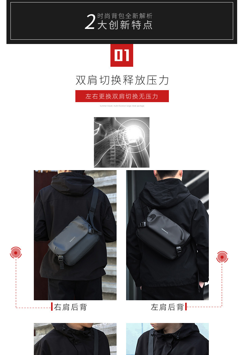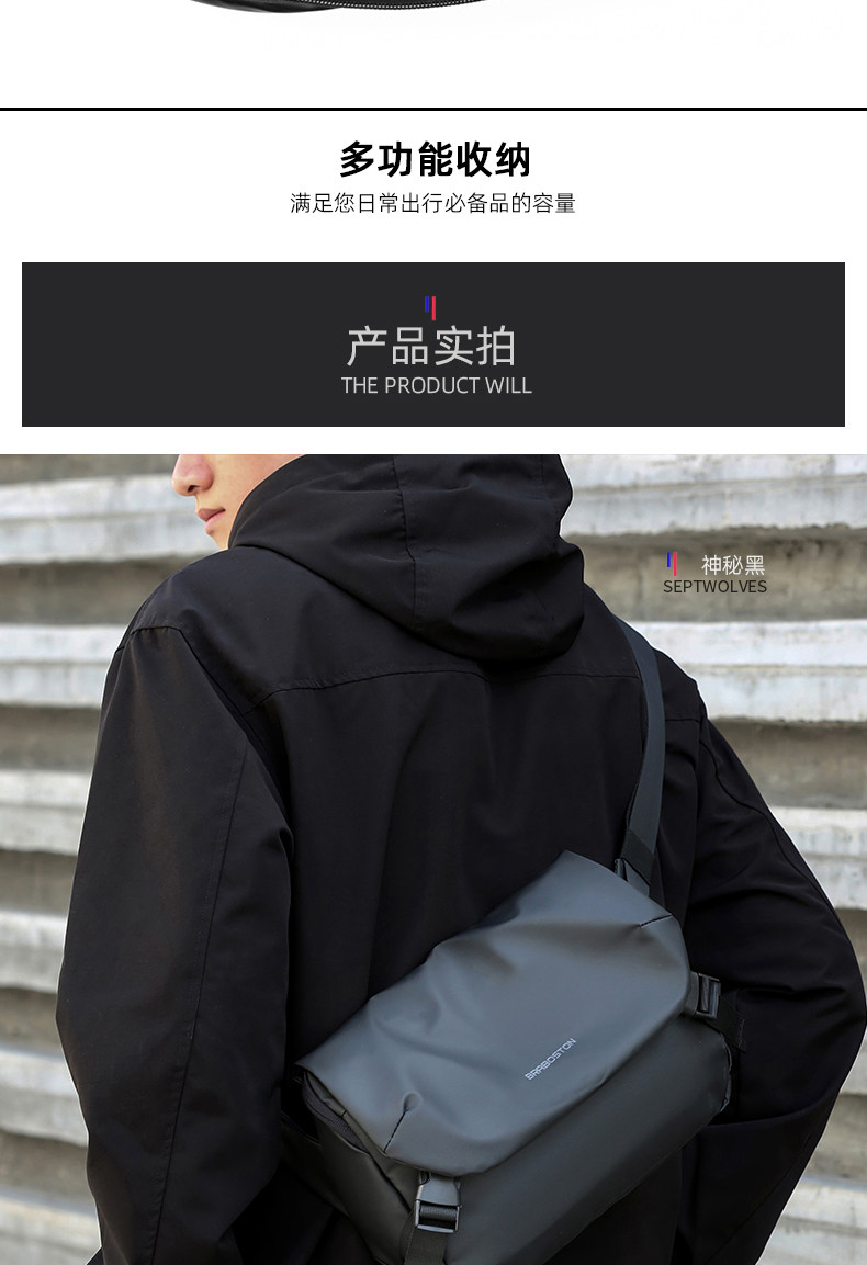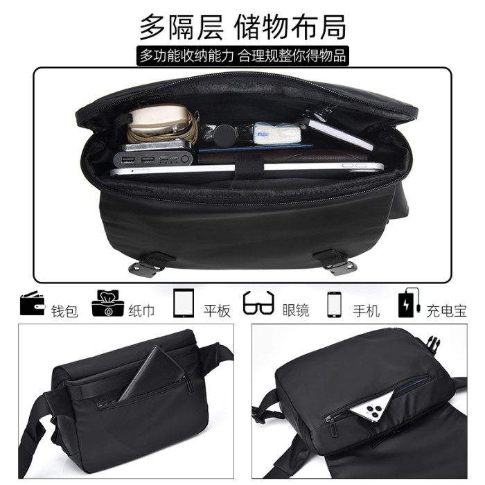 斜後後背包男休閒機能男士多功能斜後後背包潮牌單肩包騎行郵差挎包男後後背包
