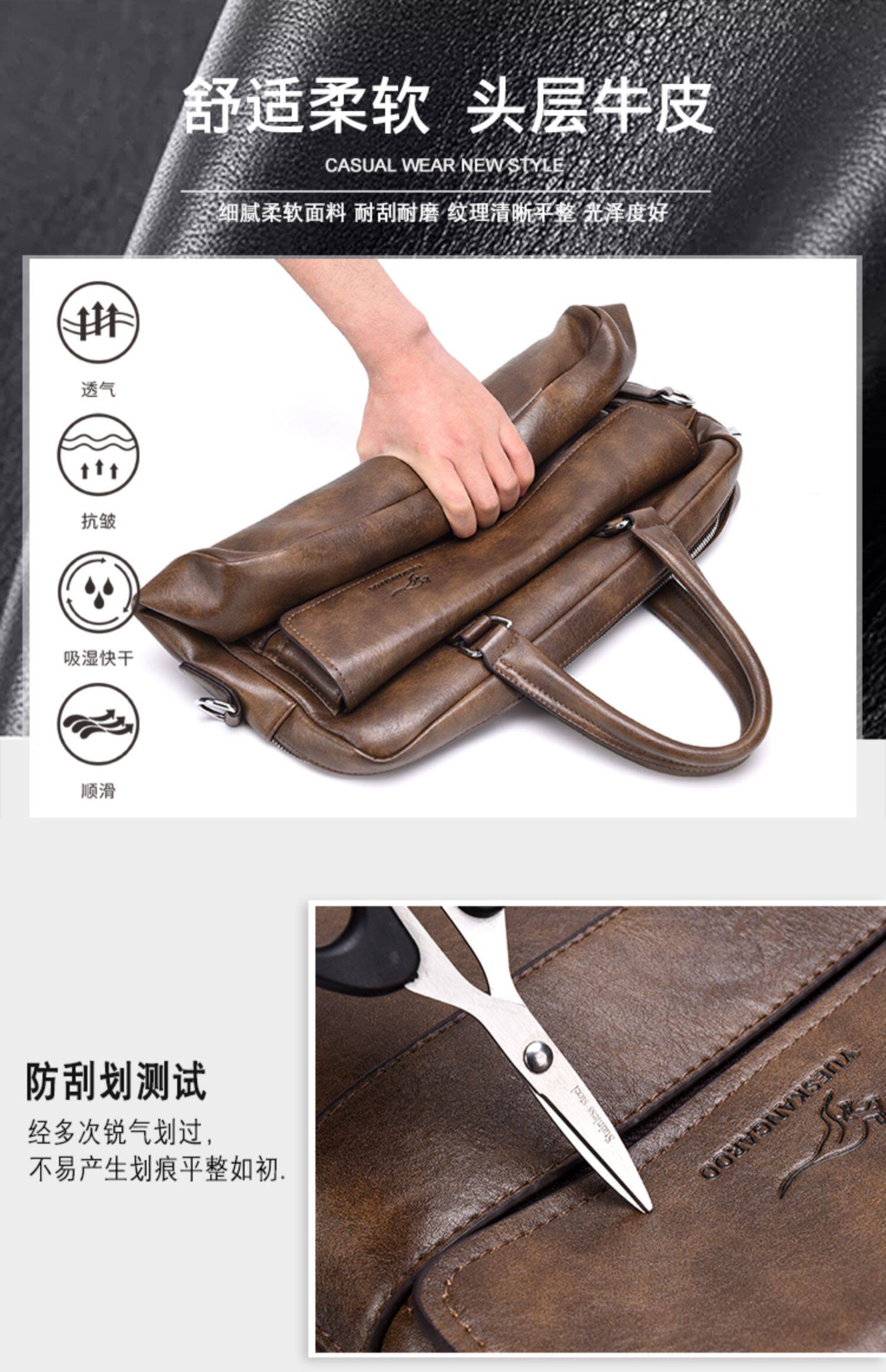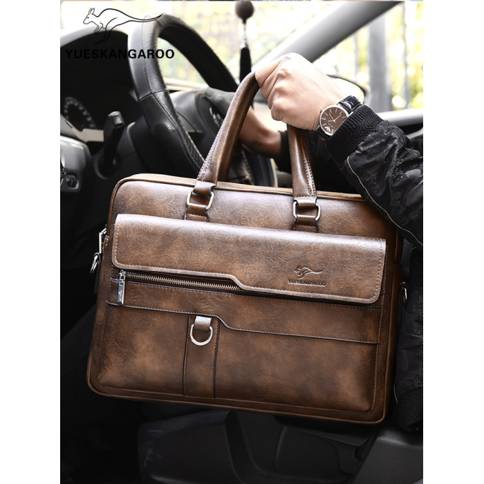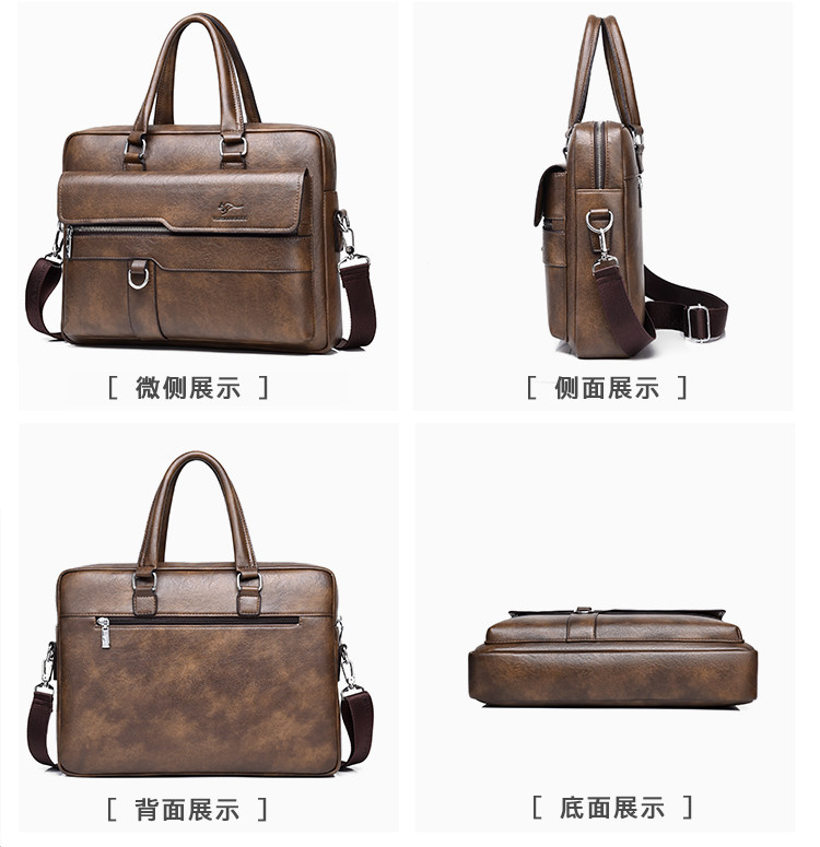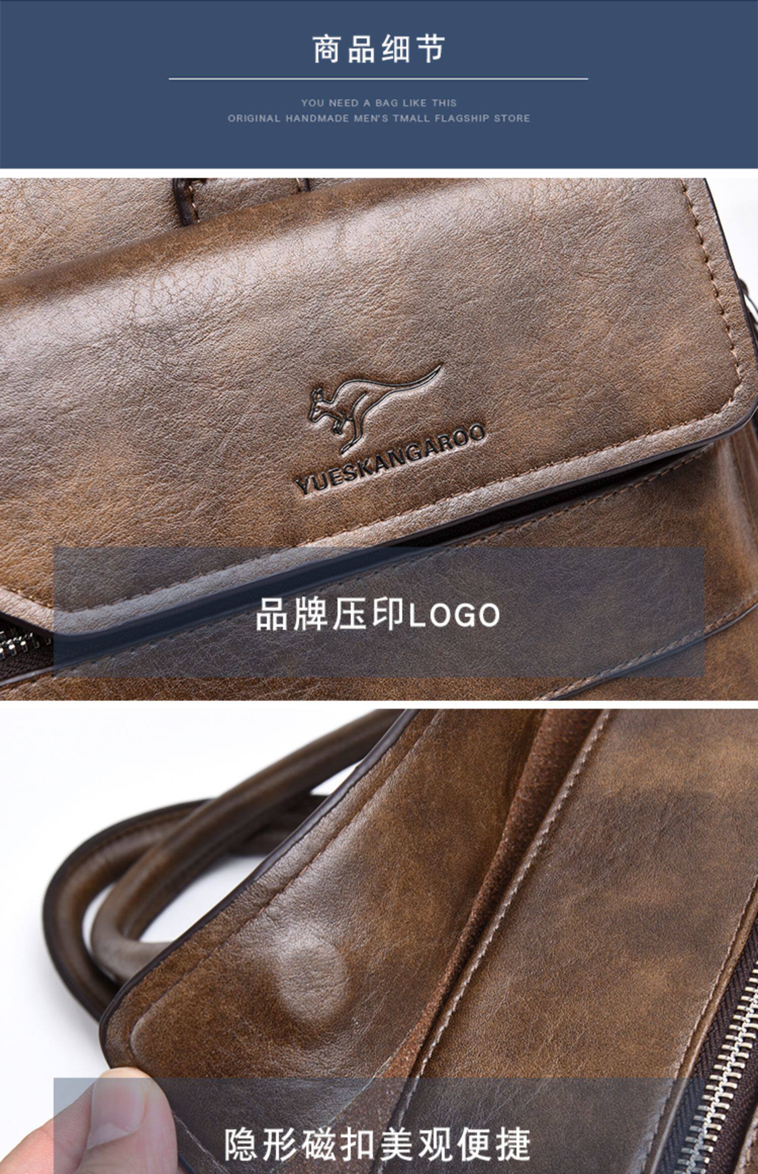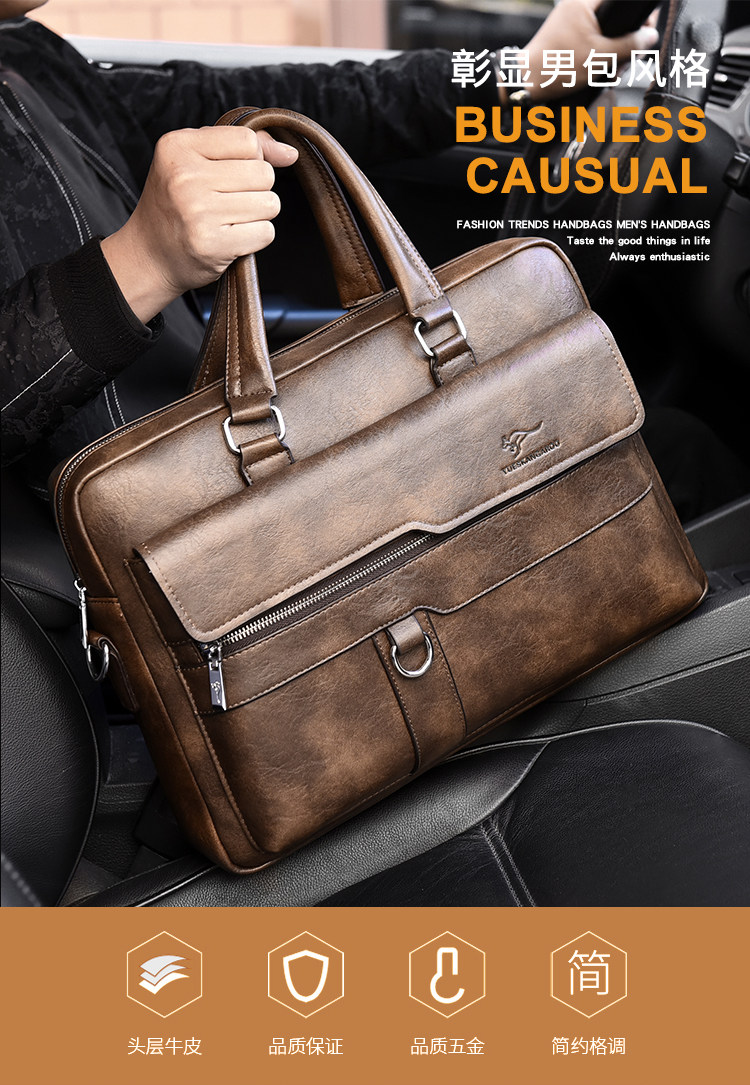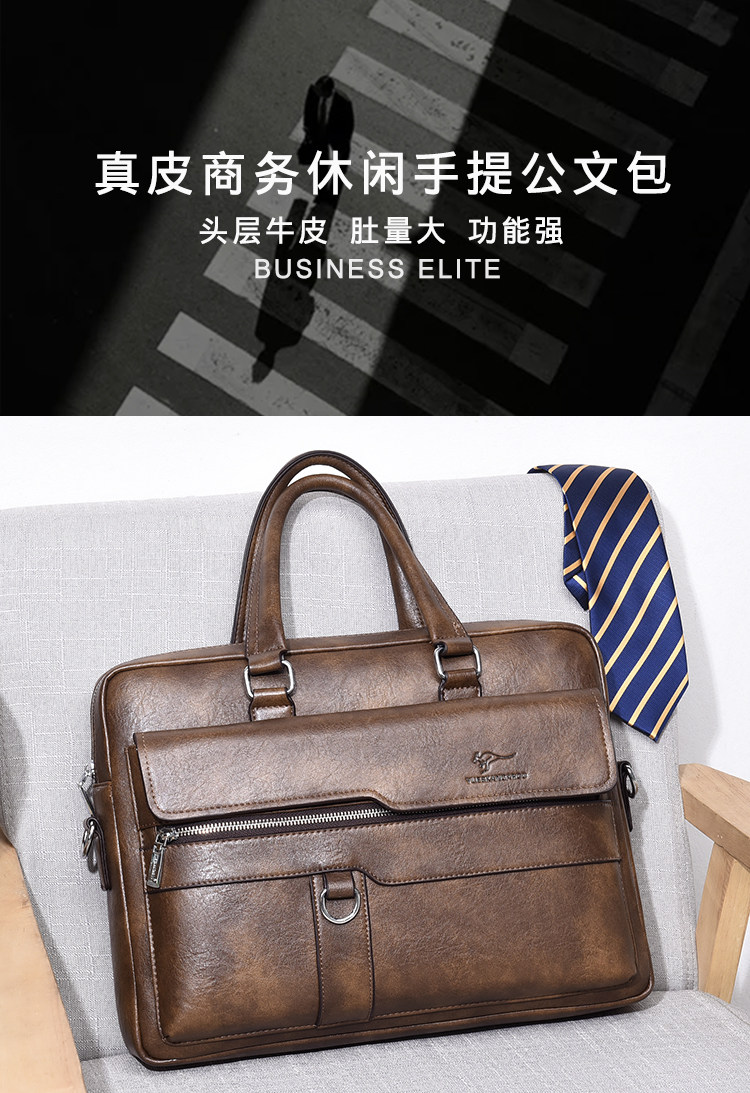 麥克袋鼠真皮手提包2026新款男士包商務單肩挎包時尚軟牛皮公文包
