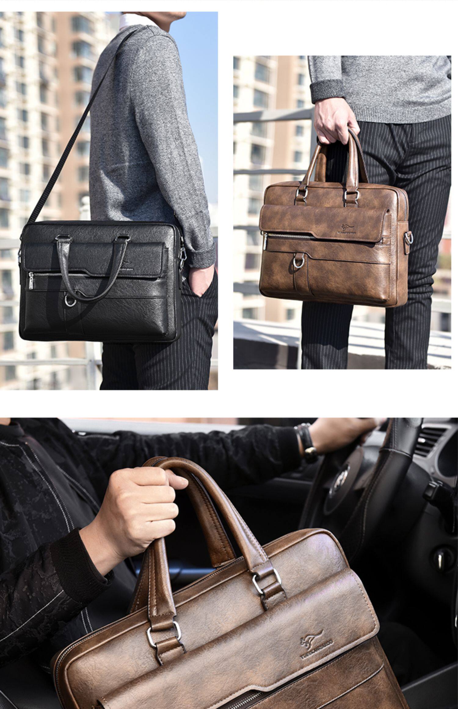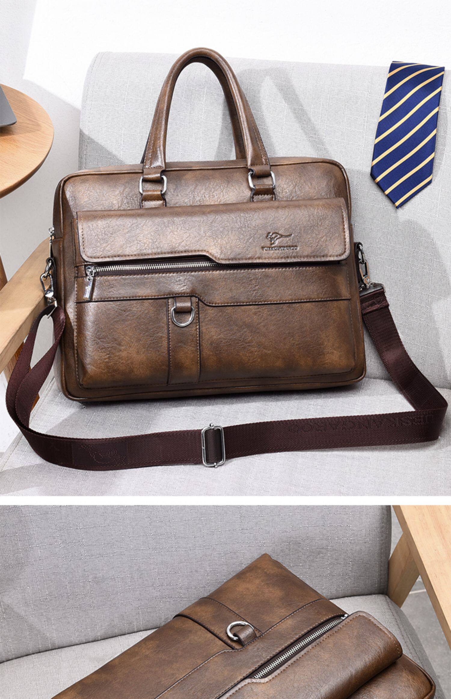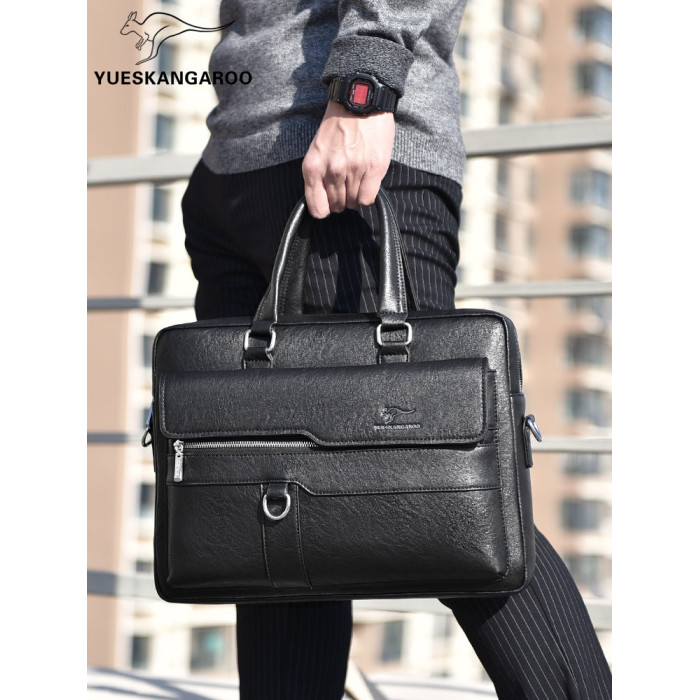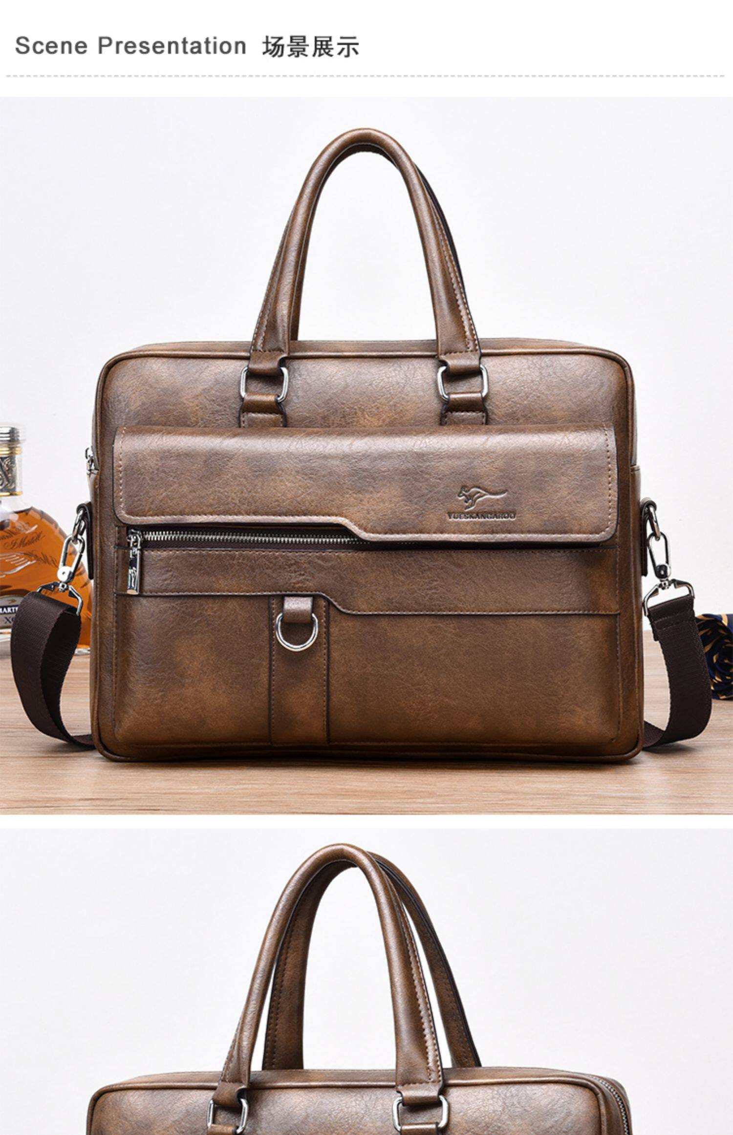 麥克袋鼠真皮手提包2026新款男士包商務單肩挎包時尚軟牛皮公文包