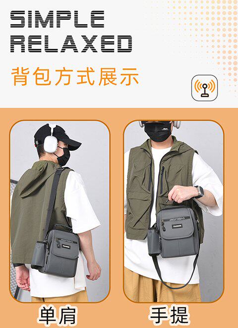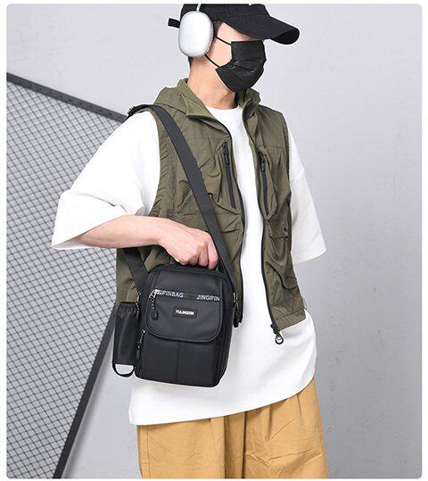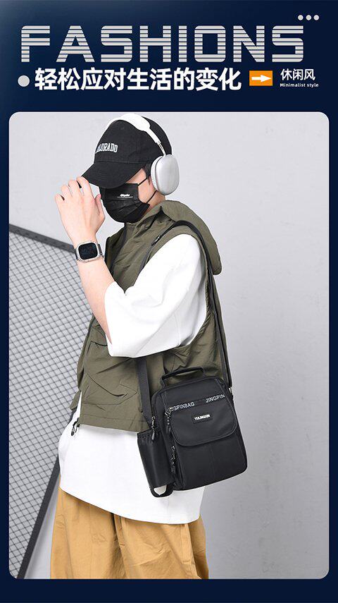 新款時尚男士潮流小包休閒商務單肩斜後後背包多功能收納防潑水可攜式包