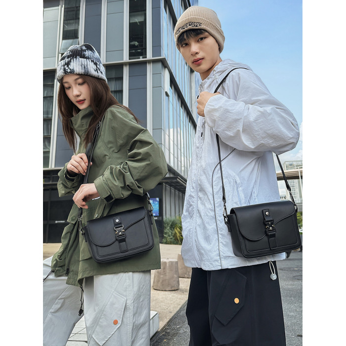 單肩包男生小衆高級感休閒斜後後背包時尚潮流質感小方包女通勤手機包