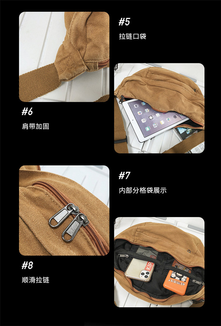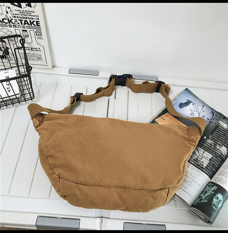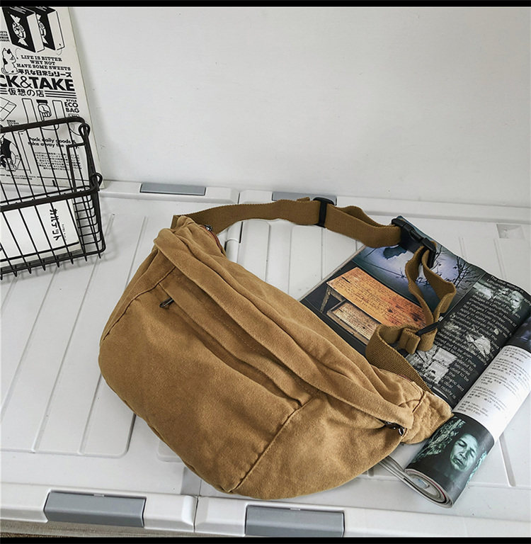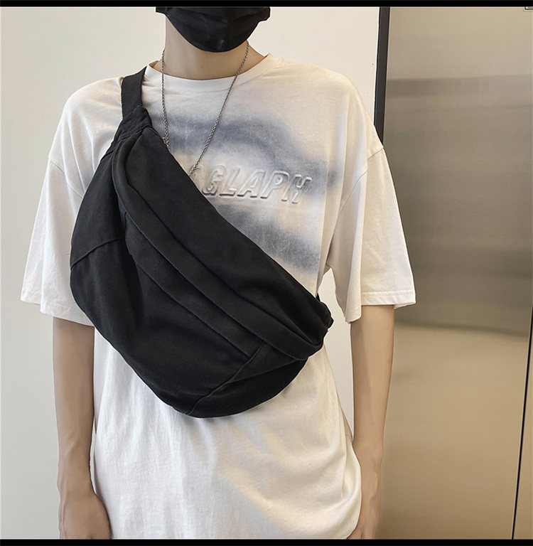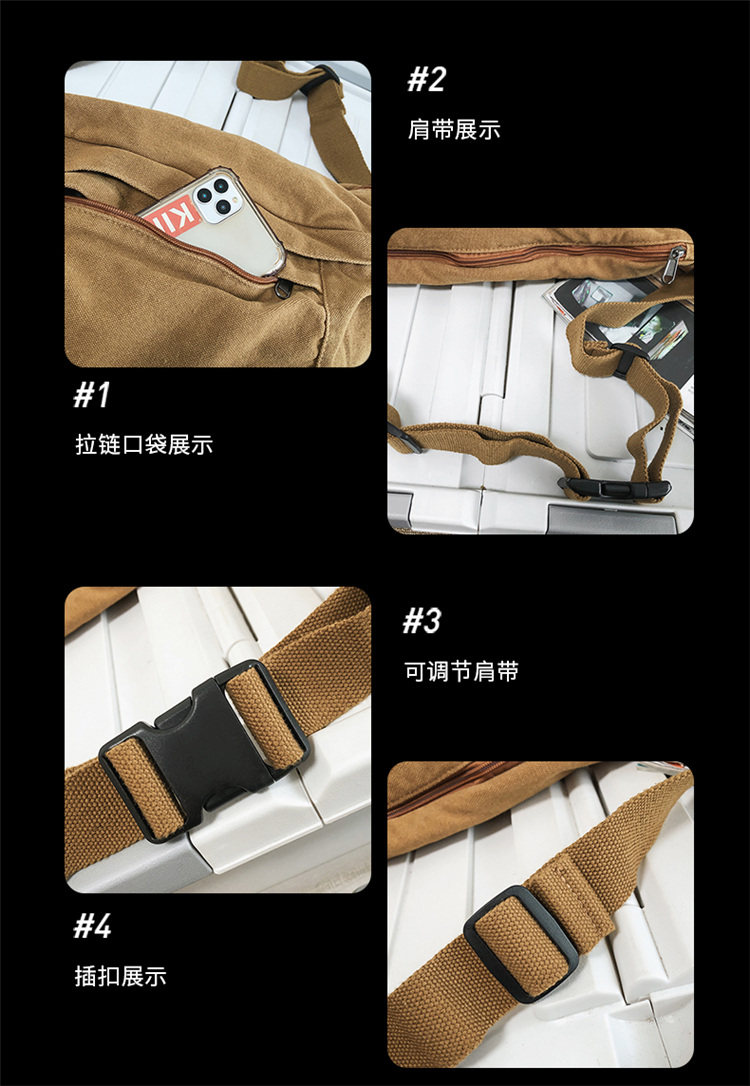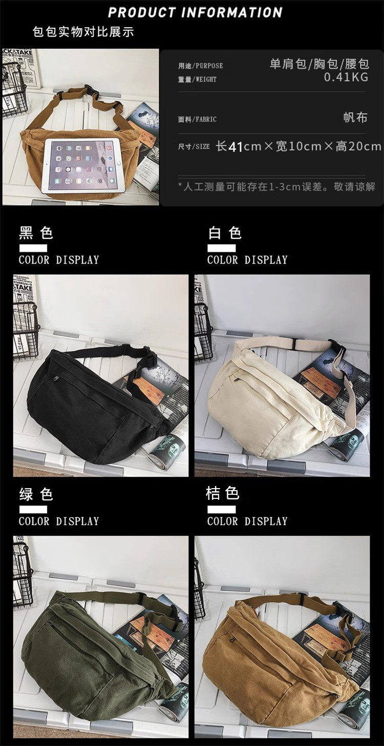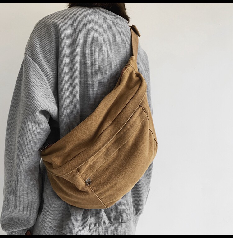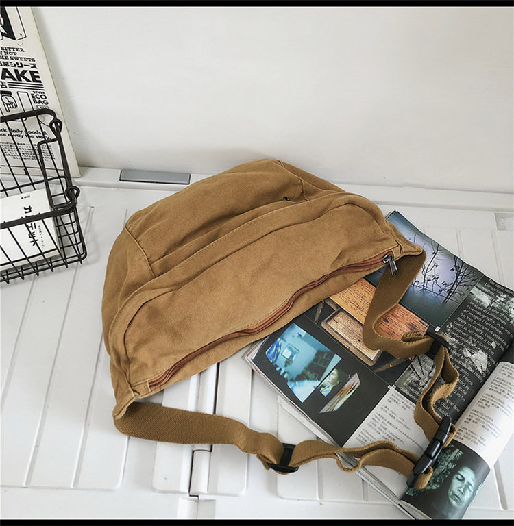 慵懶風帆布包男大容量斜後後背包潮牌胸包日系學生後後背包復古休閒單肩包