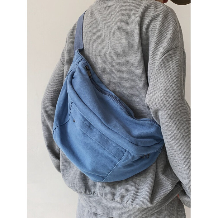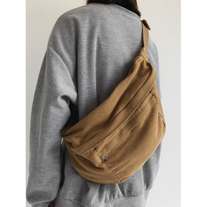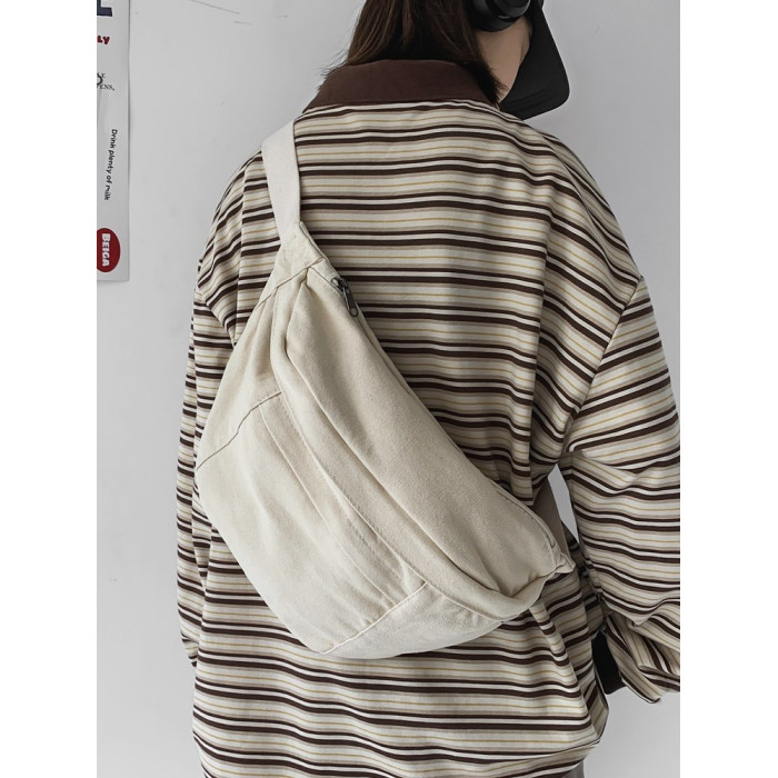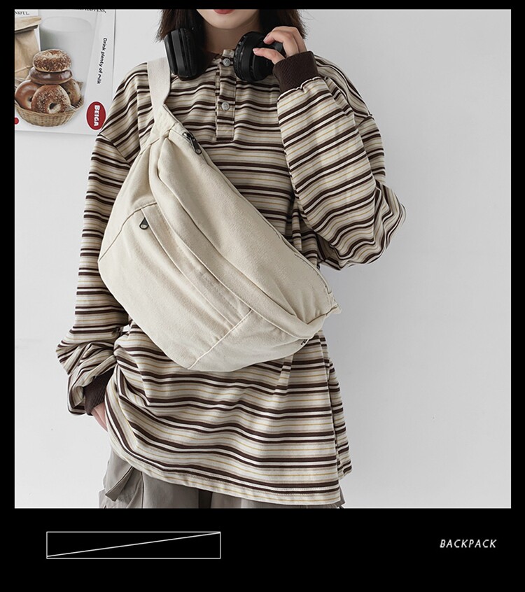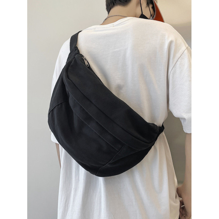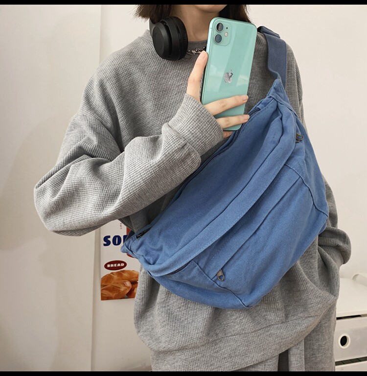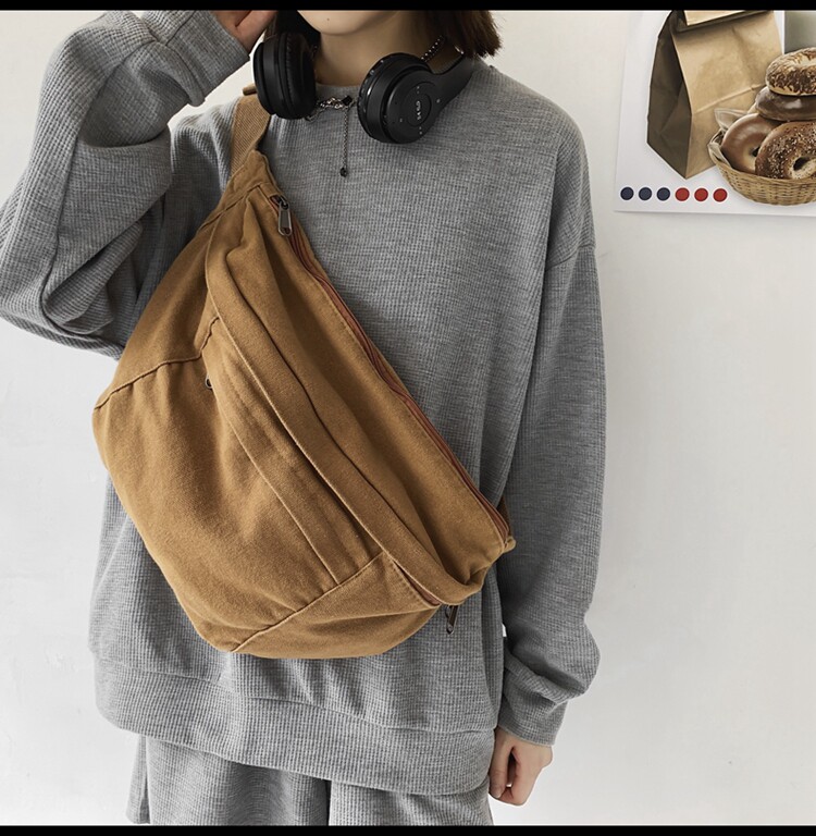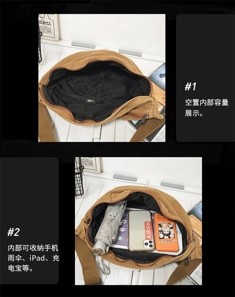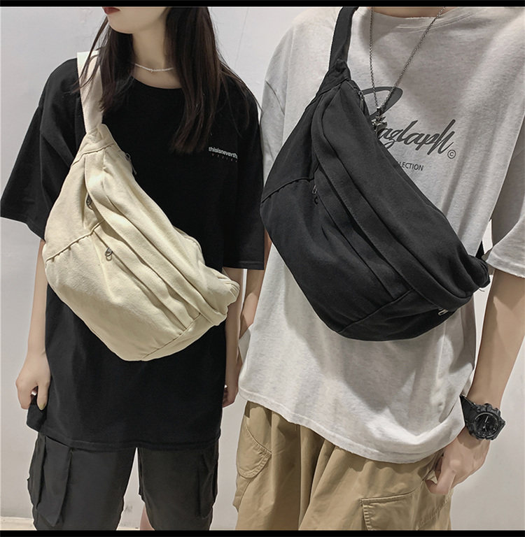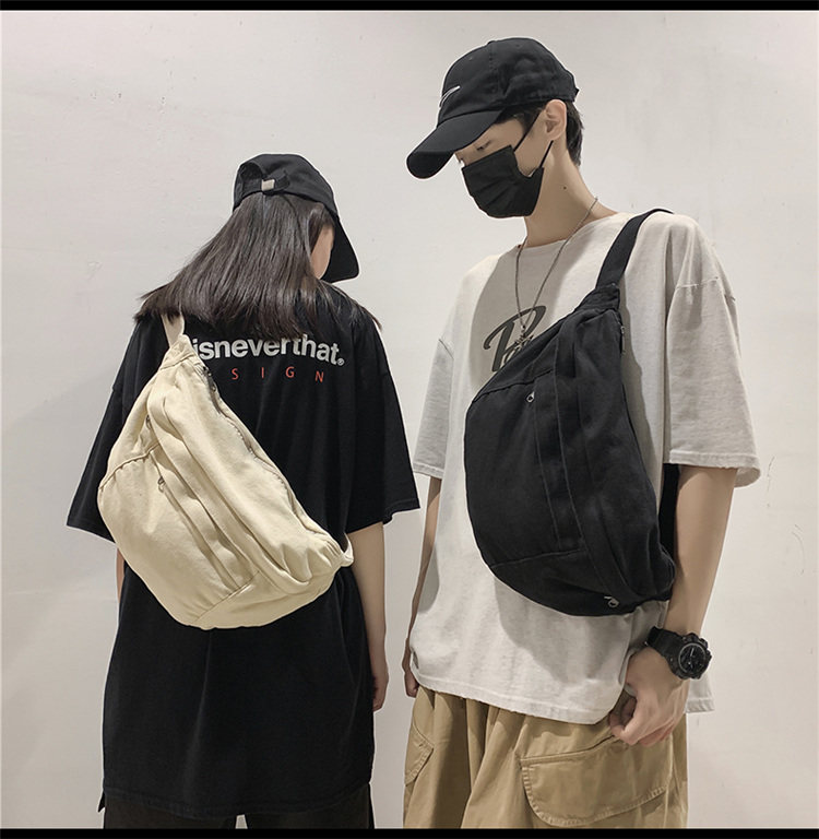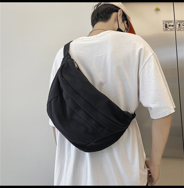 慵懶風帆布包男大容量斜後後背包潮牌胸包日系學生後後背包復古休閒單肩包