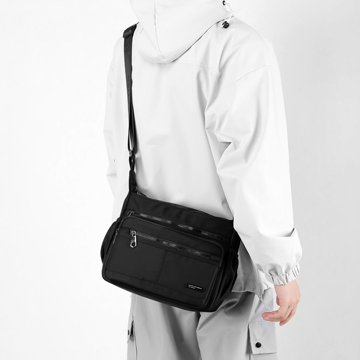 斜後後背包男新款牛津布商務單肩包簡約男士公文包休閒大容量通勤男包