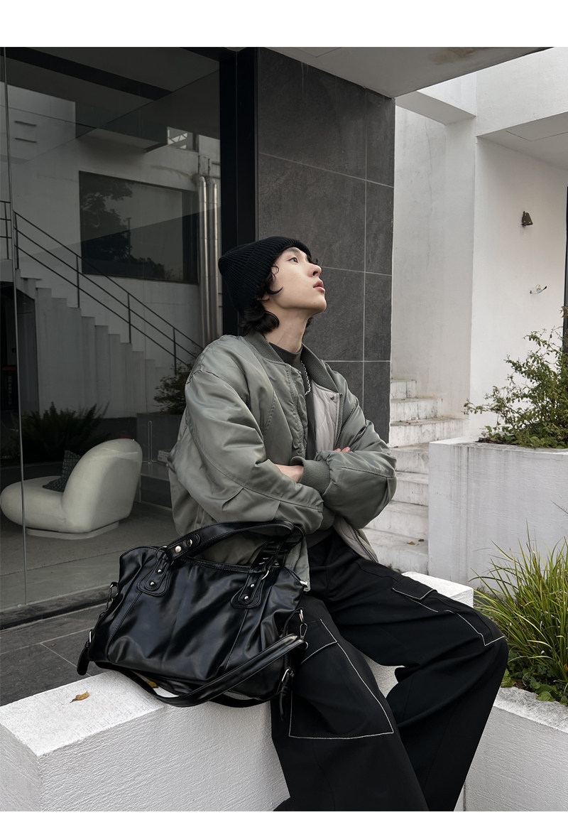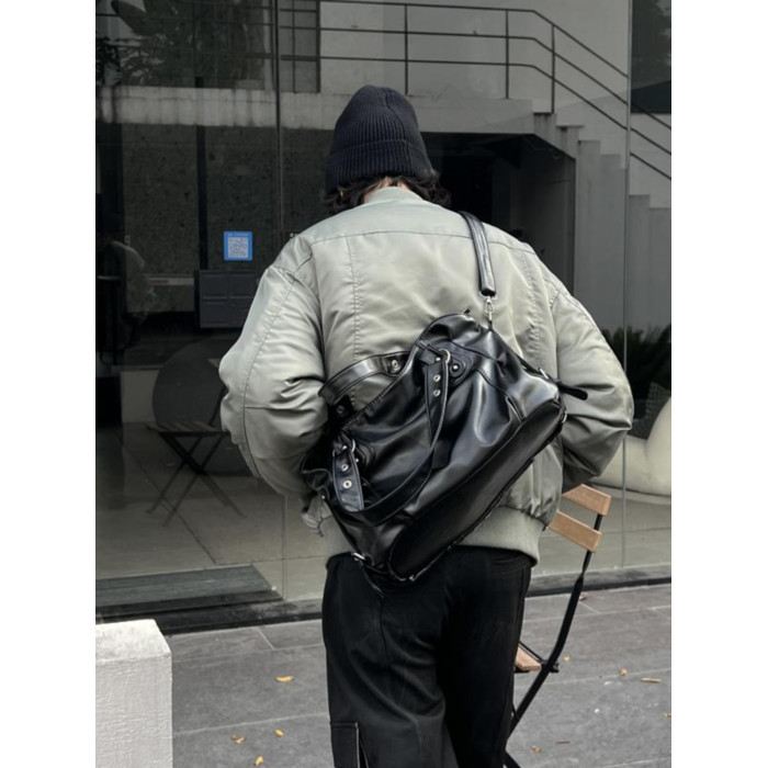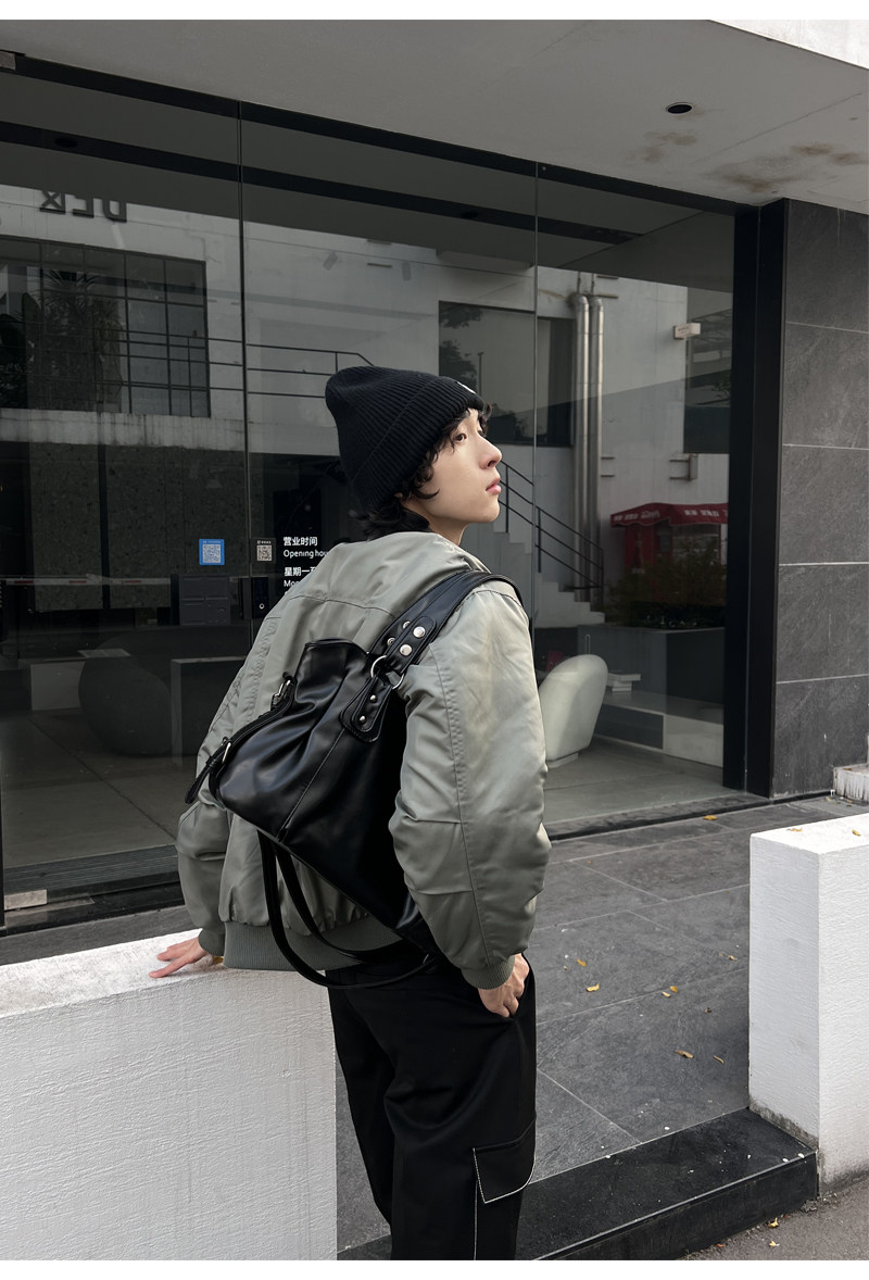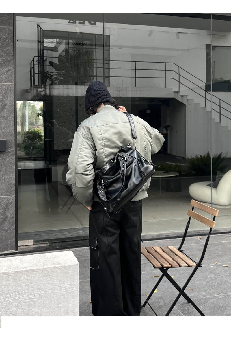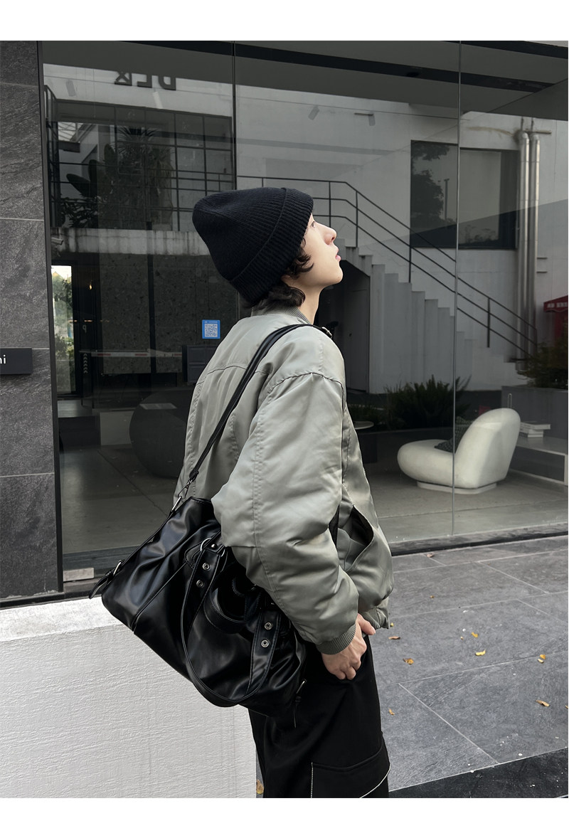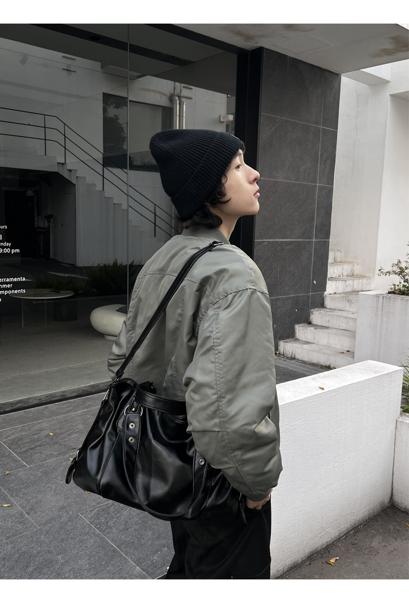 YUEN美式街頭暗黑系原宿單肩斜背大容量腋下手提挎包復古男女托特